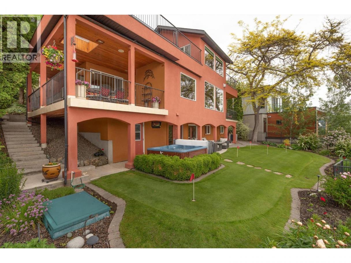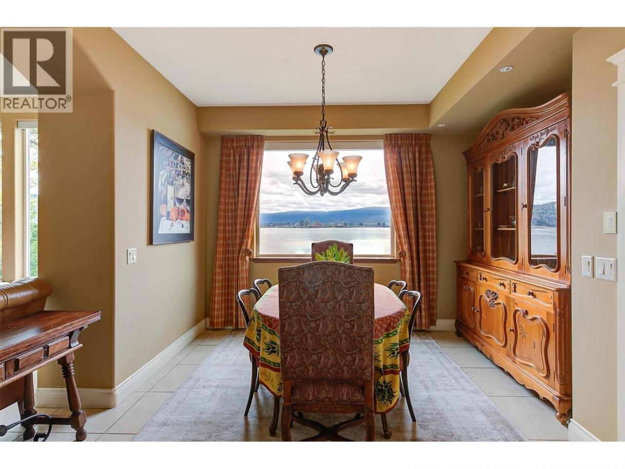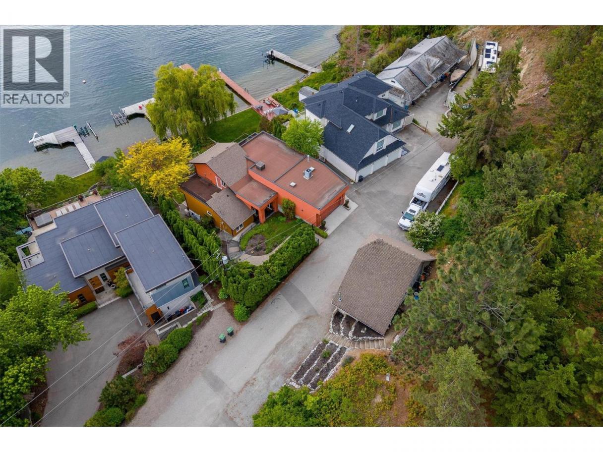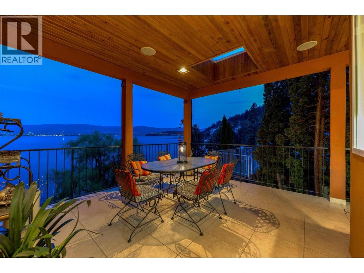 Positioned in one of the Okanagan's few vantage points with uninterrupted views to the illuminated skyline of downtown Kelowna, this lakeshore property delivers a visual experience that is both rare and unforgettable. Located just minutes north of the Kelowna Bridge, the home offers exceptional convenience while maintaining the privacy and tranquility of a quiet West Kelowna lakeshore setting; a balance that is increasingly difficult to find. Custom-built in a timeless French Country style, the residence feels warm, distinctive, and inviting. Oversized windows on all levels were intentionally designed to frame the lake and city views, ensuring the water remains a constant backdrop throughout the home. With approximately 3,800 square feet, 6 bedrooms, and 5 bathrooms, the layout is ideally suited for hosting family and guests, including multiple ensuite bedrooms and a private lower-level suite that walks out to a hot tub and putting green. The open-concept kitchen anchors the main living area beneath 10-foot ceilings and a statement fireplace, featuring a large pantry, dual ovens, gas range, and custom maple cabinetry. A flat grassy lakeside area with approximately 70 feet of direct waterfront, a beach house, and a substantial dock deliver true, usable lakefront living. Exceptional parking and storage round out the offering with a double garage, four-car carport, RV parking, workshop, and ample storage — features seldom found together on the lake. (id:6769)