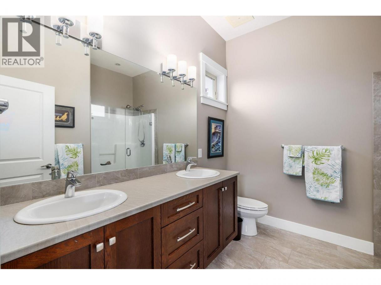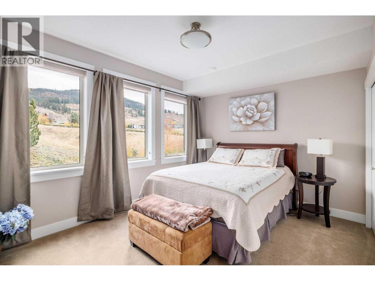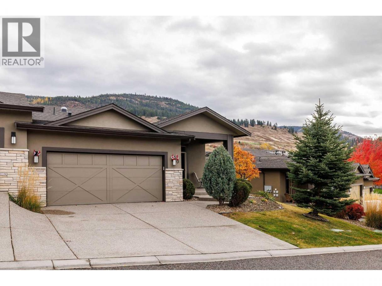 Visit REALTOR website for additional information. 4-bedroom, 3-bathroom golf course home in Kelowna, positioned on the 18th green at Tower Ranch Golf Course, recognized by SCORE Golf among Canada’s top public courses. Unit 40 at North Pointe on Eighteen offers eastern exposure across the course and semi-desert hillside with no direct rear rooftops—a positioning advantage not common within this complex. The main floor features 10' ceilings, Tuscany hand-scraped maple engineered hardwood flooring, an open-concept dining and living area with electric fireplace and access to a covered deck with glass railings and natural gas BBQ hookup. The kitchen includes Azul Aran granite countertops, large island, stainless steel appliances (refrigerator updated), and a pantry with optional main-floor laundry. The primary bedroom captures the same eastern golf course exposure and includes a walk-in closet and 4-piece ensuite with heated tile floors, dual sinks, and walk-in shower. A second bedroom connects to a full bathroom via Jack-and-Jill access. The lower level features 9' ceilings, large recreation room with wet bar and fireplace, walkout covered patio, two additional bedrooms, full bathroom, utility room, and storage. Approximately 2,600 sq ft total living space. Bare land strata include exterior maintenance, including golf ball glass breakage, plus access to clubhouse gym and meeting room. Minutes to Kelowna airport, UBCO, and amenities. (id:6769)