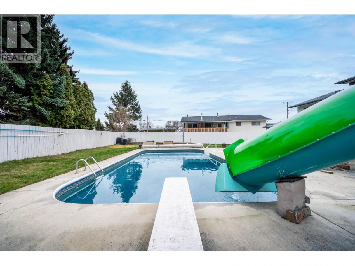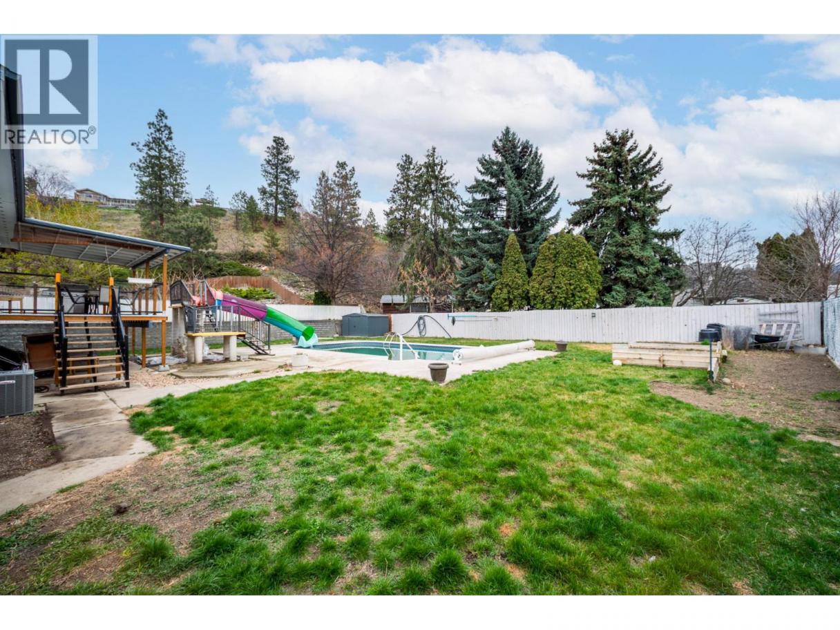 Welcome to this great family home with INGROUND POOL & WATERSLIDE nestled on a quiet street, just steps from schools, shopping & local amenities. This property boasts a private, south-facing backyard oasis, featuring a 18x36 pool with a new pump (2025) & a custom-built waterslide for endless summer fun. Outdoor living is elevated by the large yard, a covered deck w/Duradek & sleek glass railings, fiberglass stairs & a new shed, fence & gate. Inside, discover a bright kitchen w/newer appliances & a spacious living/dining room designed for seamless family time. Conveniently located on the main floor are two good sized bedrooms & a full bath. The basement, with three bedrooms, laundry room & full bath, has been thoughtfully enhanced w/double-layer drywall soundproofing & insulation, ensuring a serene environment. Additional features include a brand new HWT, new waterproof vinyl plank flooring in laundry area/hallway, 2019 roof & an oversized 12x27 single garage equipped w/220V workshop, automatic overhead door & a unique rear lift door for backyard access. With ample parking PLUS dedicated RV/Boat parking, this is a rare opportunity to own a spacious home w/pool in a fantastic family-friendly neighbourhood. Within walking distance to Quigley Elementary, Mission Creek & Belgo Parks & Transit. Close to Springvalley Elementary/Middle Schools & Rutland Elementary, Middle & High Schools! (id:6769)