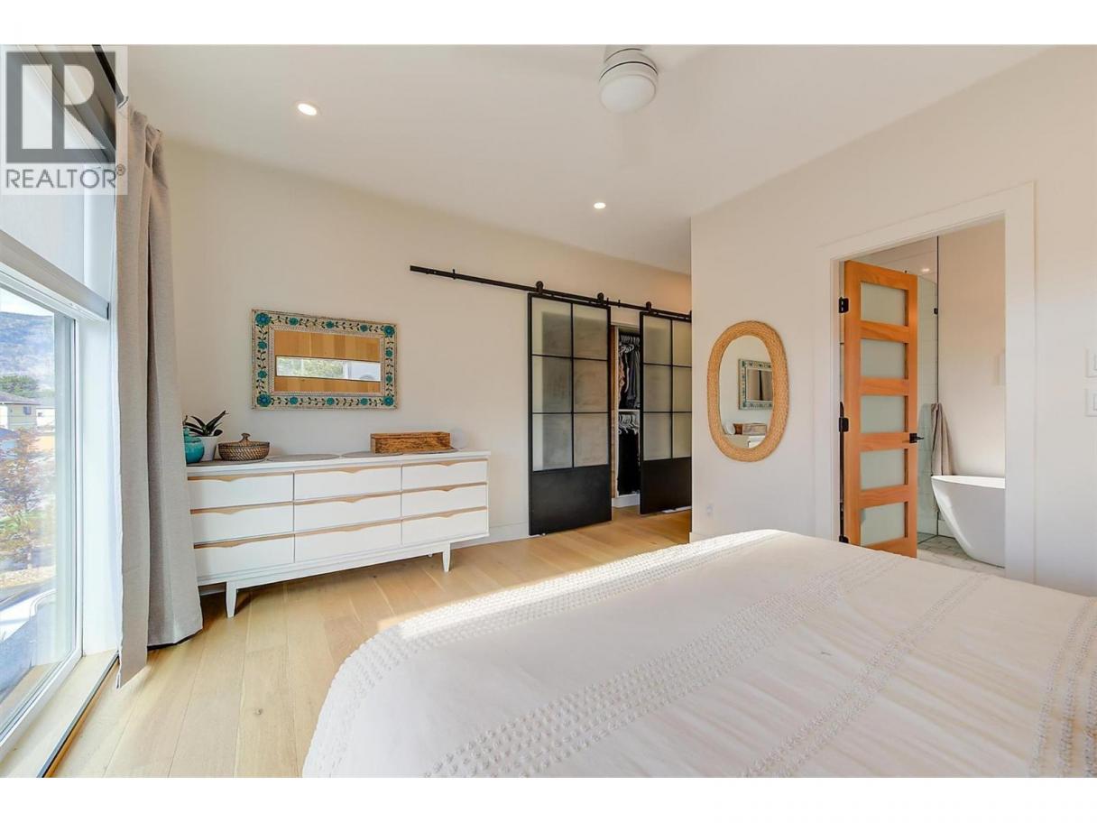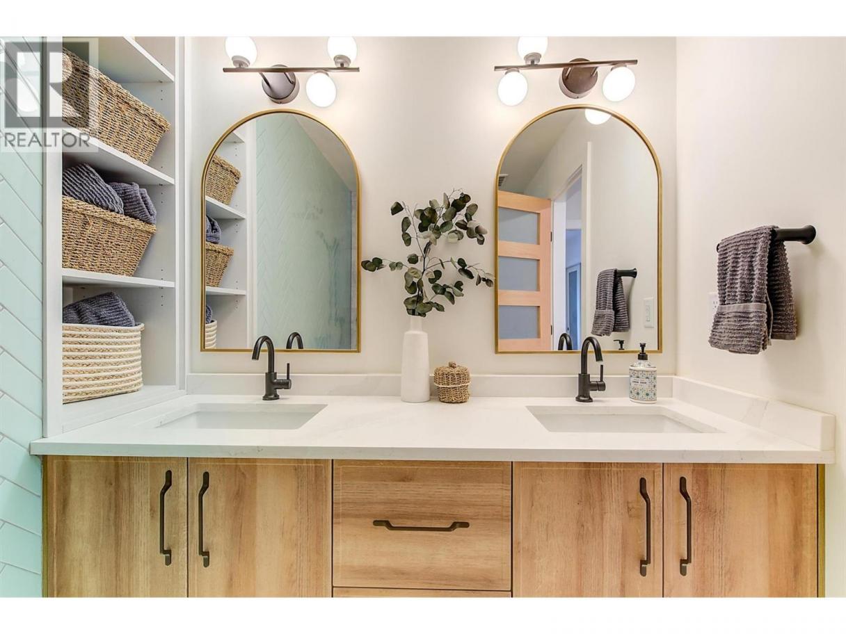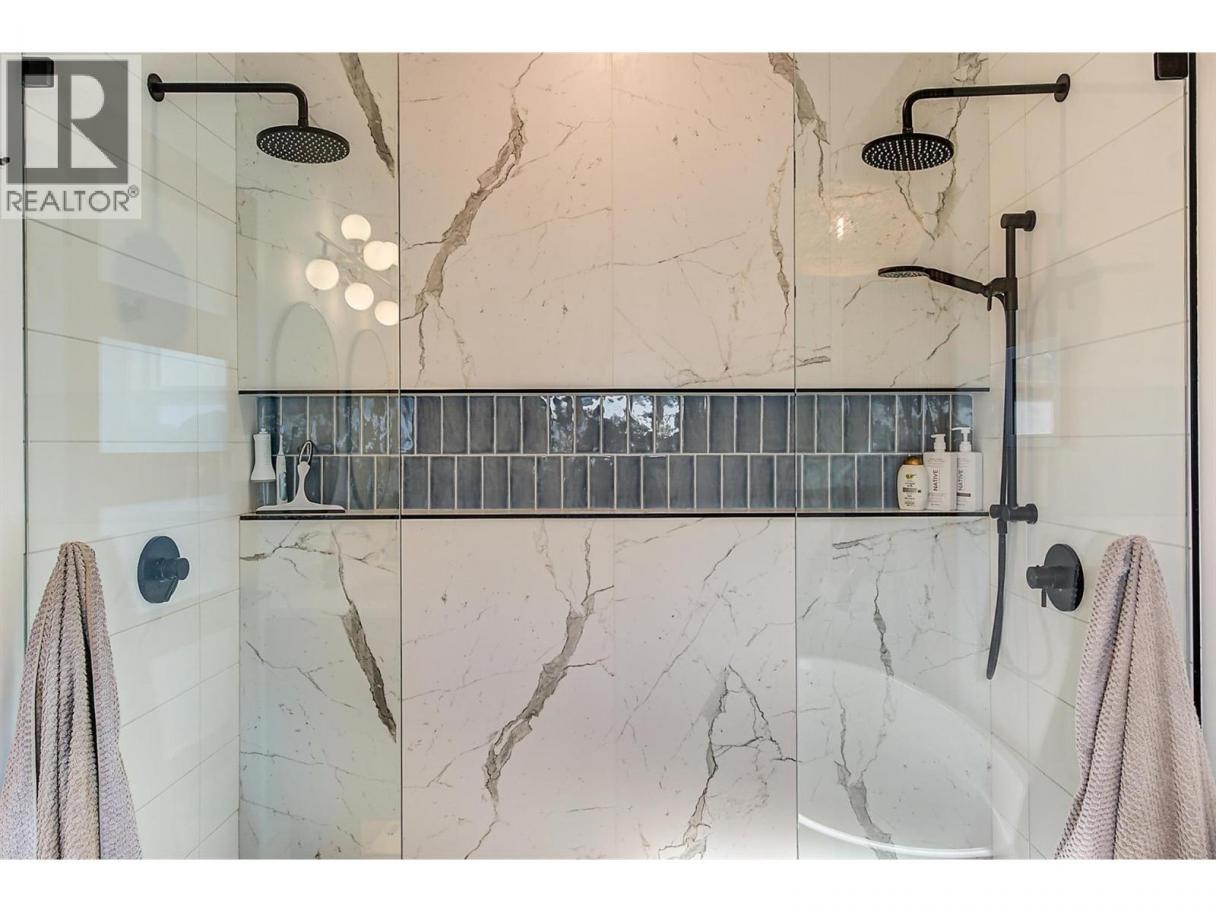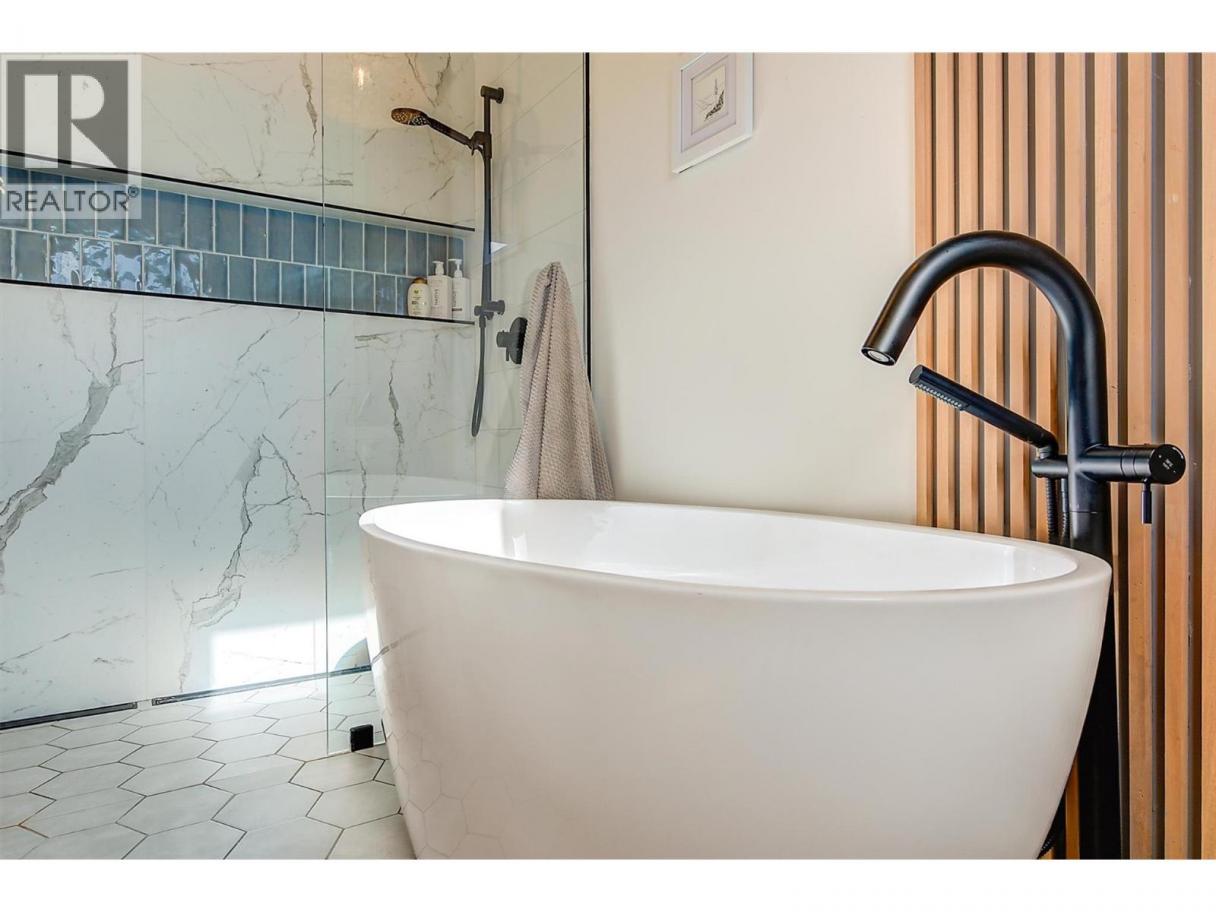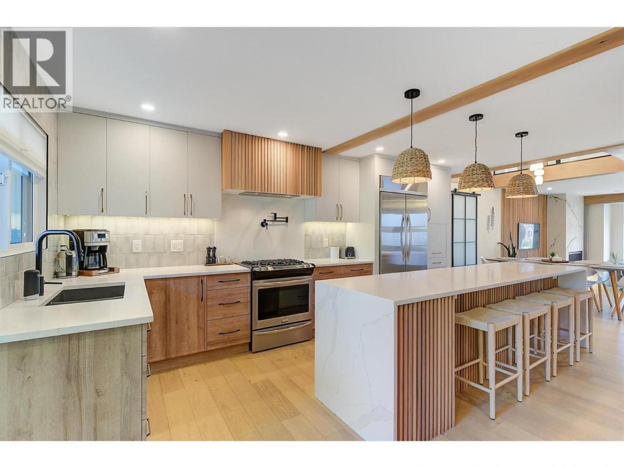 3-Bedroom + Flex Space, 3-Bathroom main home with a legal 2-Bedroom, 2-Bathroom suite. Completely redesigned in 2023, this executive home delivers elevated space, modern finishes, and a prime location. Directly across from the lake, this is refined living in one of the city’s most coveted pockets. Modern design meets warmth with wood accents, custom cabinetry, and built-ins in the living room and under the stairs. The main living space is anchored by a two-tone kitchen with a gas stove, statement beams, and a layout designed for living and entertaining. Upstairs, the primary suite stands out with oversized windows, a wood panel accent wall, and well-appointed ensuite. Two additional bedrooms, a flex space, and a full bathroom complete the upper level. The rooftop patio takes it to another level with synthetic lawn, a hot tub, gas and water hookups, and lake views. The main home includes a large fully fenced yard, and a garage with EV charging. A fully self-contained legal suite features 2 bedrooms, 2 bathrooms, separate laundry and its own large fenced yard. Manhattan Drive, located near waterfront Park in Downtown Kelowna, is one of the city’s most coveted pockets. Beaches, the lake, parks, boardwalks, shops and restaurants are all a short stroll away. With future city plans and development underway, this area continues to evolve and retain its desirability. Future zoning allows for redevelopment potential up to 6 storeys for this property and neighbours. (id:6769)