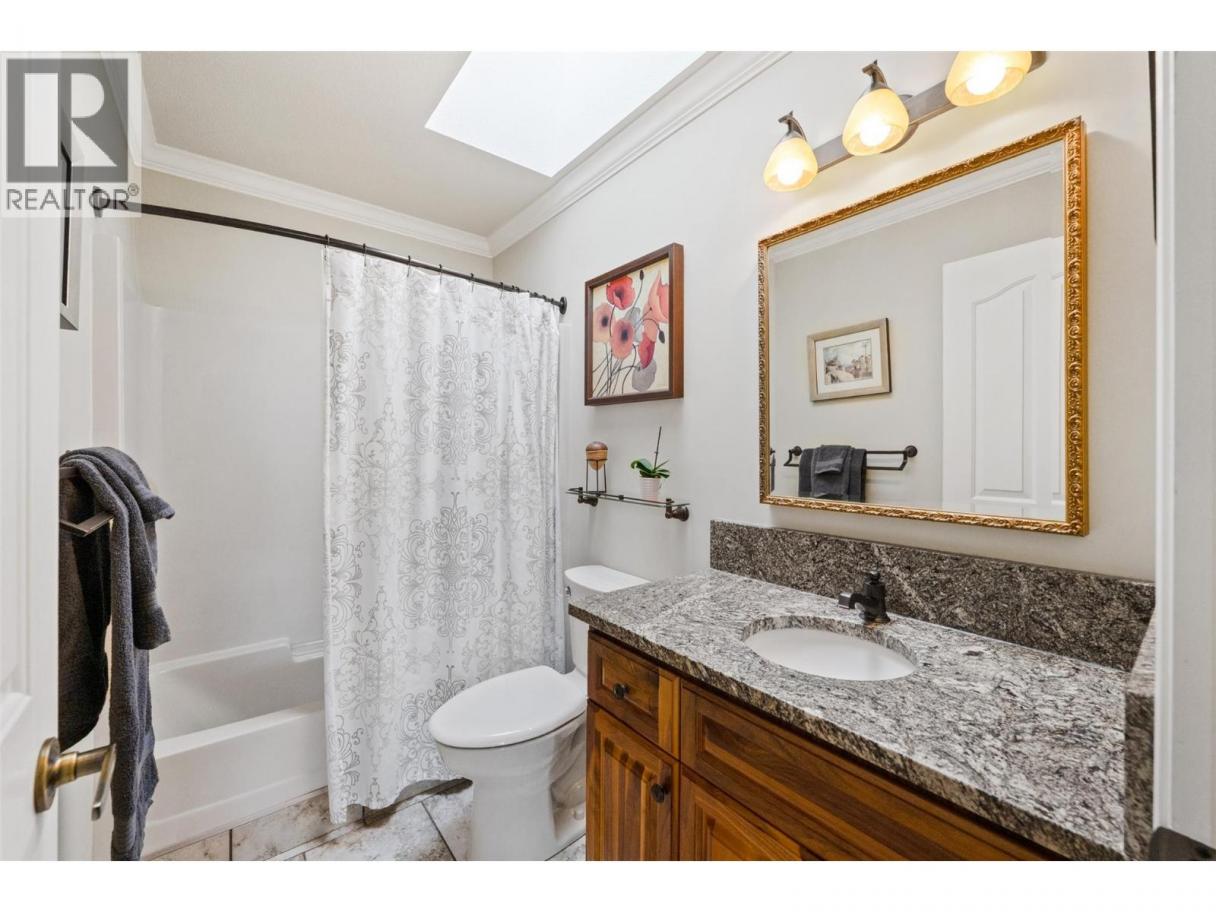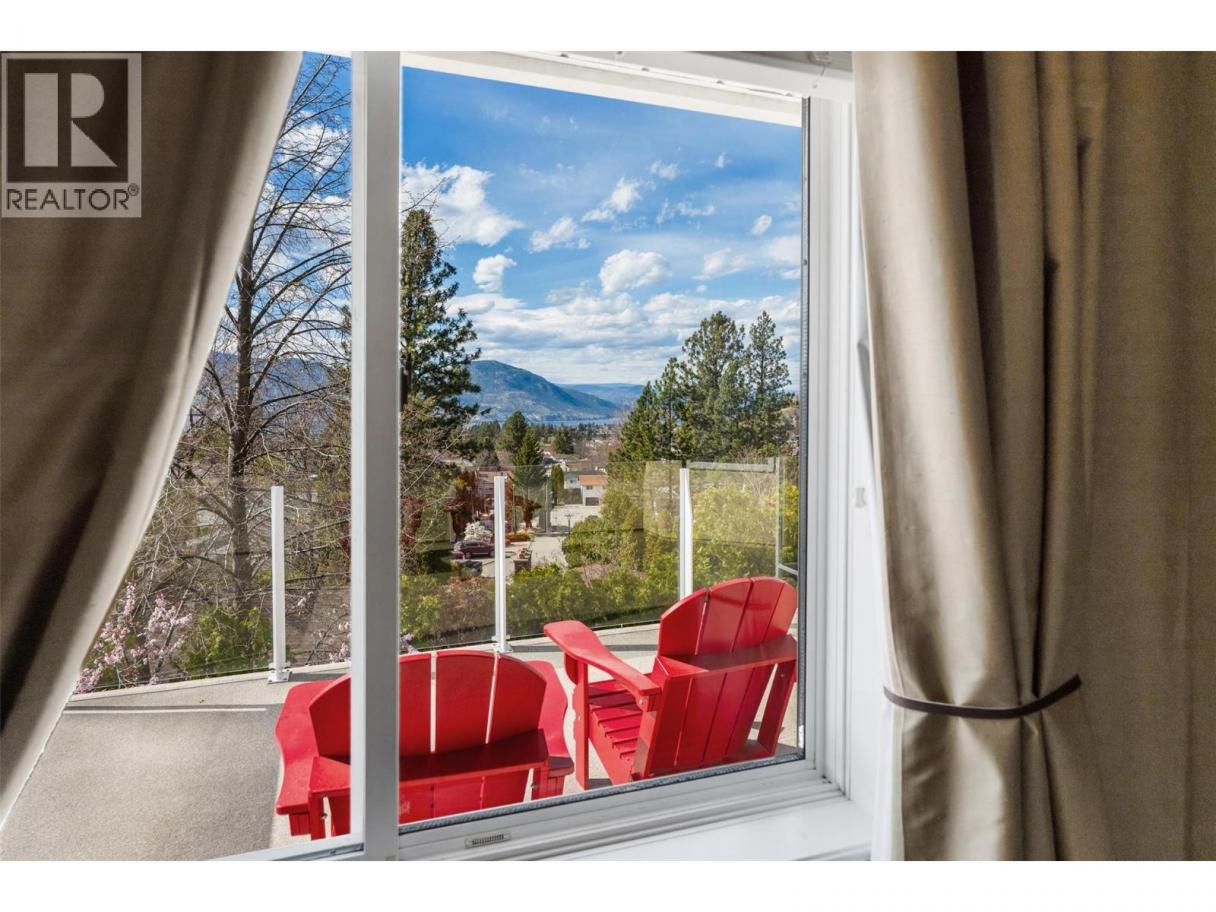 Welcome to this beautifully maintained one-owner home, proudly cared for since 1993, with thoughtful updates throughout including a new furnace and heat pump for year-round comfort. Offering over 2,700 sq.ft. with 3 bedrooms and 2 bathrooms, the home features a functional, comfortable layout with spacious living areas and abundant natural light. The bright lower level includes a separate walkout entry, roughed-in bathroom, and offers excellent potential to add one or two additional bedrooms, a suite, or a home office. Set on a private lot with city, lake, and mountain views, mature cedar trees provide exceptional privacy, while the low-maintenance yard makes for easy living. A wonderful opportunity offering great value in a desirable location, close to amenities and ready for its next owner. (id:6769)