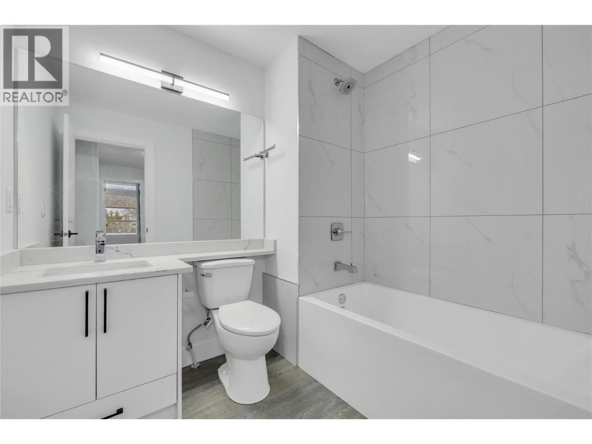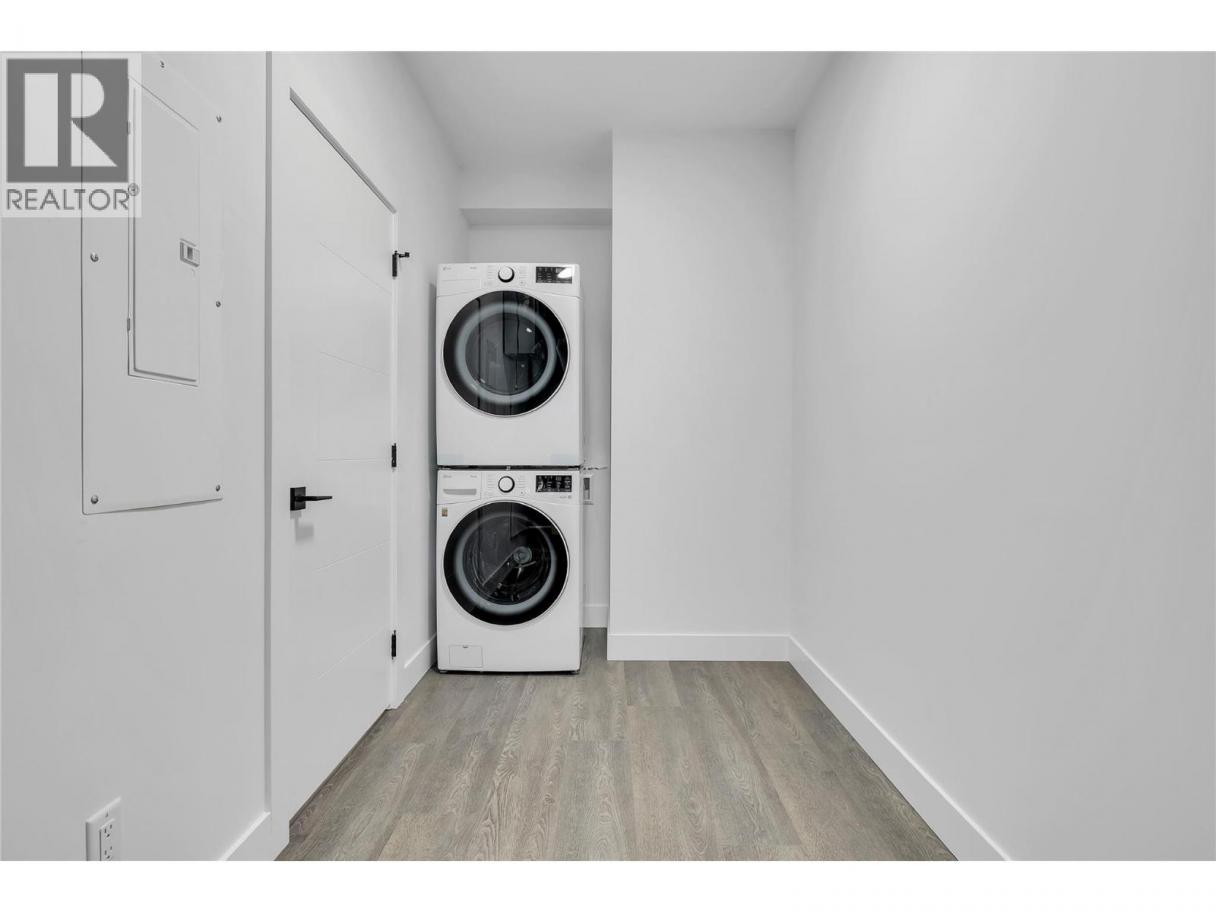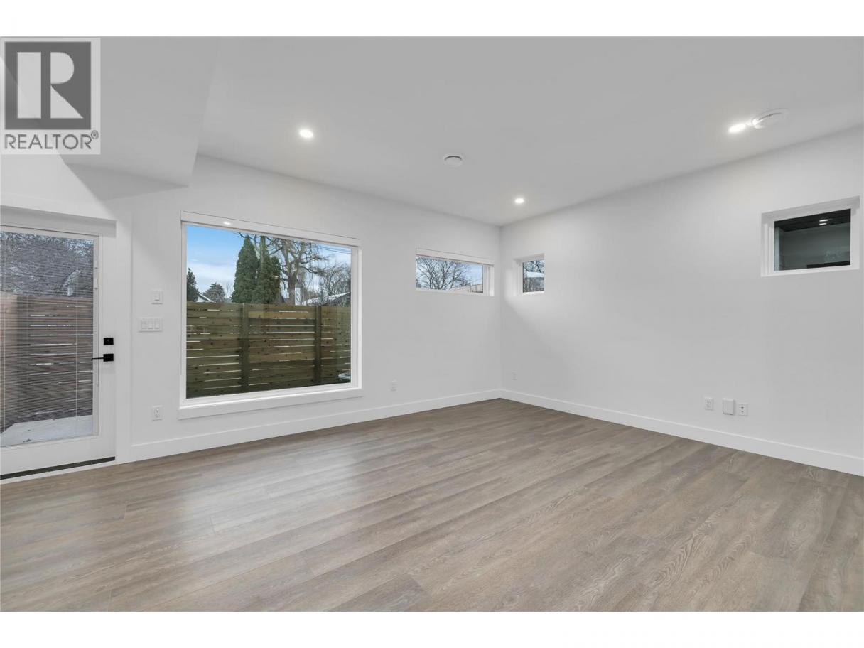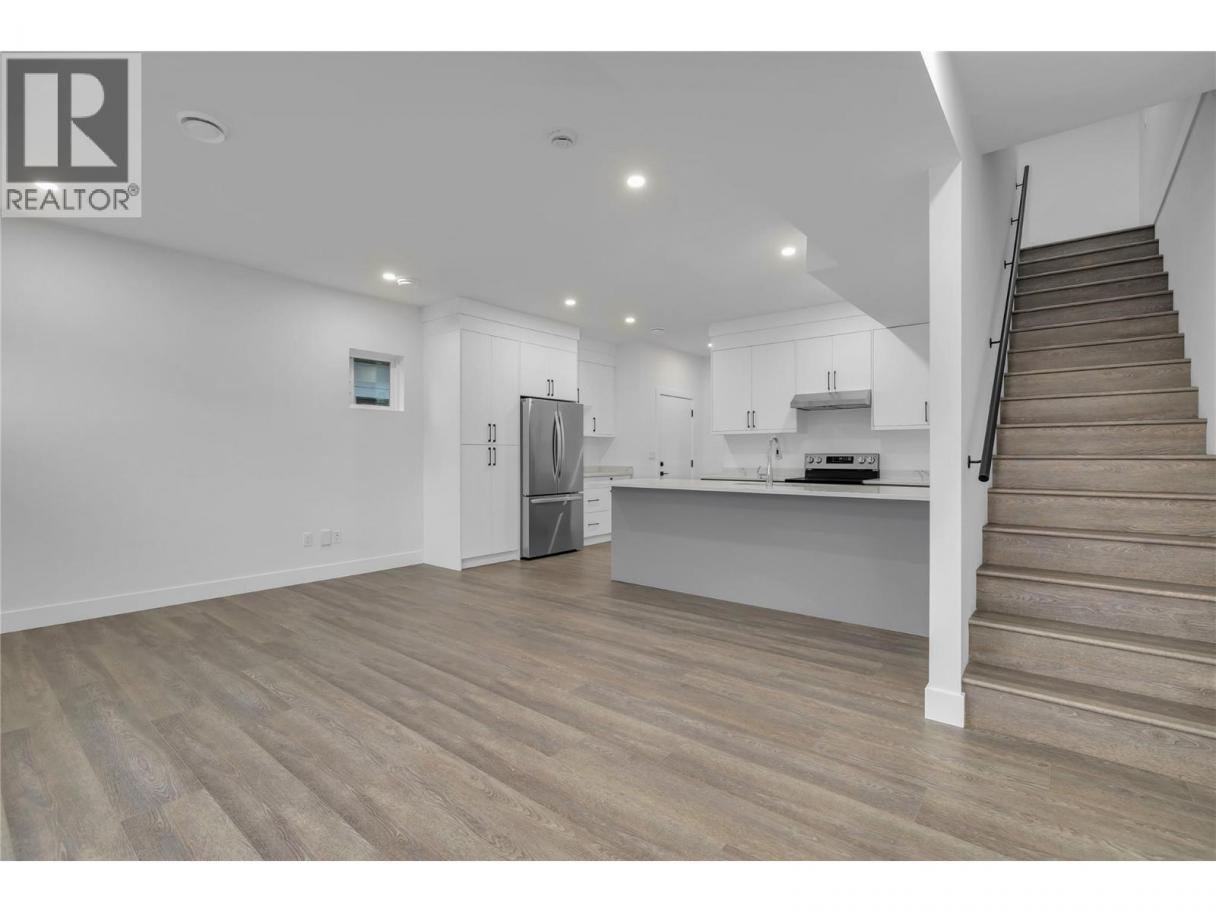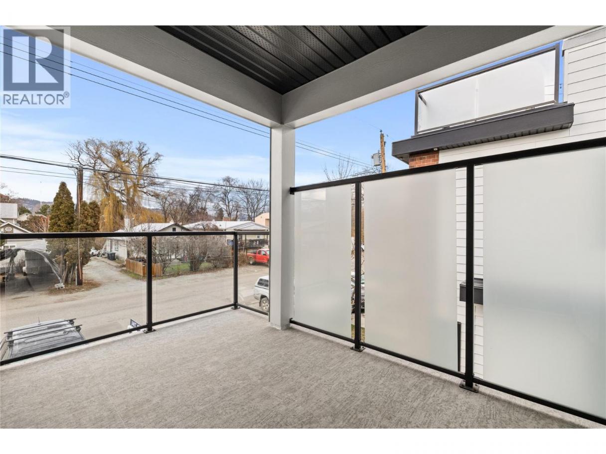 Welcome to this stunning brand-new 3-bedroom townhouse, ideally located just minutes from the hospital, offering both convenience and modern living at its finest. Fantastic parking situation with 1 large dedicated space from the lane, plus plenty of street parking including 4 open spaces at the front of the complex. This beautifully designed home features an open-concept floor plan with bright, airy living spaces, making it perfect for entertaining or relaxing with family. The stylish kitchen boasts sleek quartz countertops, two tone cabinets with black hardware, stainless steel appliances, ample cabinet space plus additional storage under the stairs. The large island offers lots of room for stools and the massive laundry/utility room provides a great flex space for fitness equipment, a desk or storage for bikes and other sporting gear. A door off the living room provides access to the private, fenced patio area perfect for outdoor dining or simply enjoying the fresh air. Each of the three generously sized bedrooms offers plenty of natural light, with the primary suite featuring a great closet with built in storage and an ensuite bathroom with large shower and double sinks for added comfort and privacy. The primary also features an incredible covered balcony. This central location is fantastic for easy access to public transportation and the wonderful shopping and dining of the Pandosy area. Don't miss the opportunity to call this beautiful new townhouse your home! (id:6769)