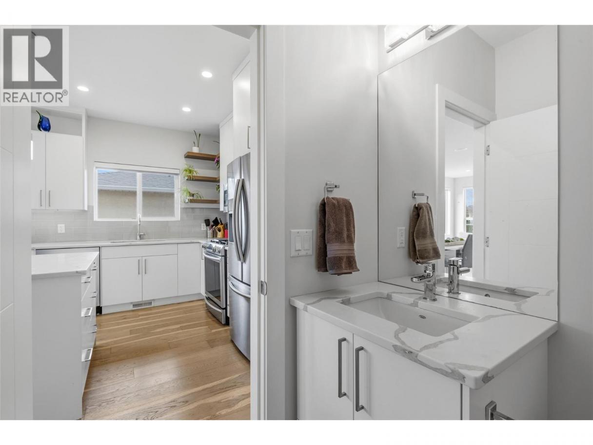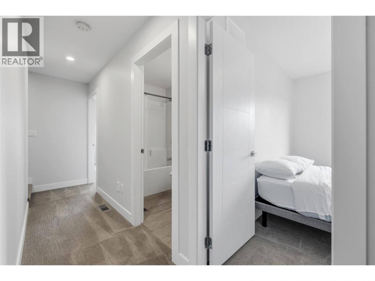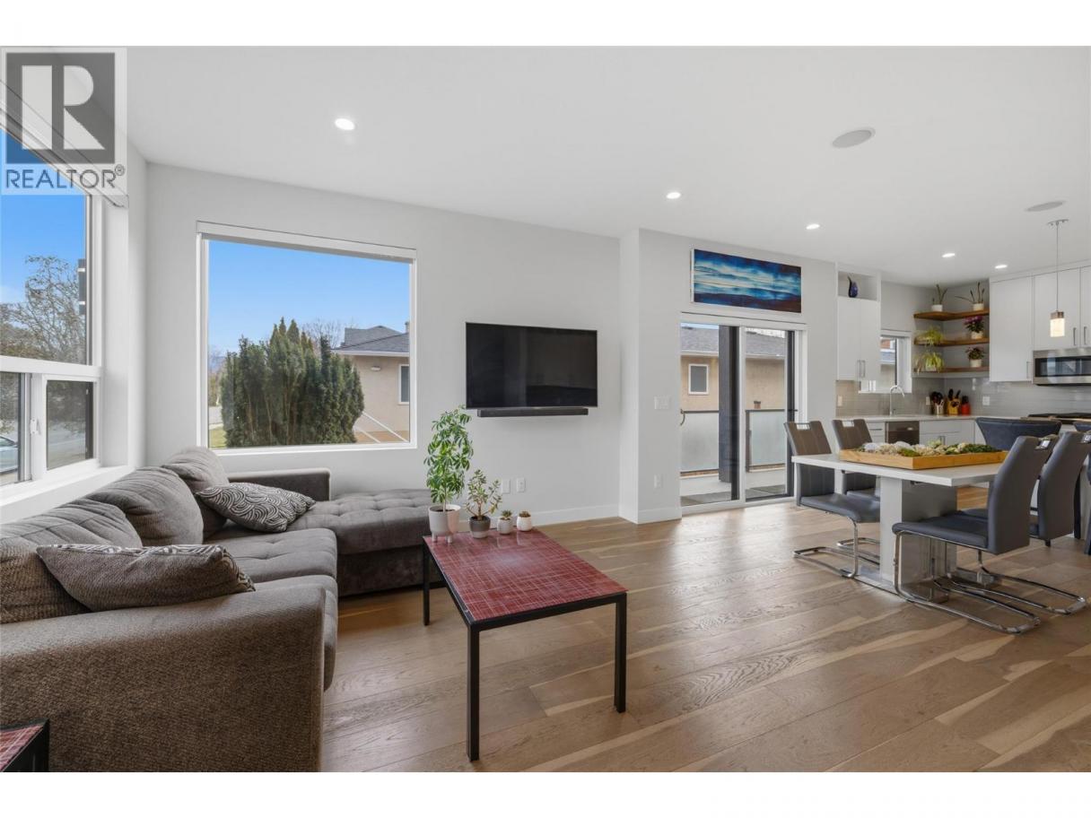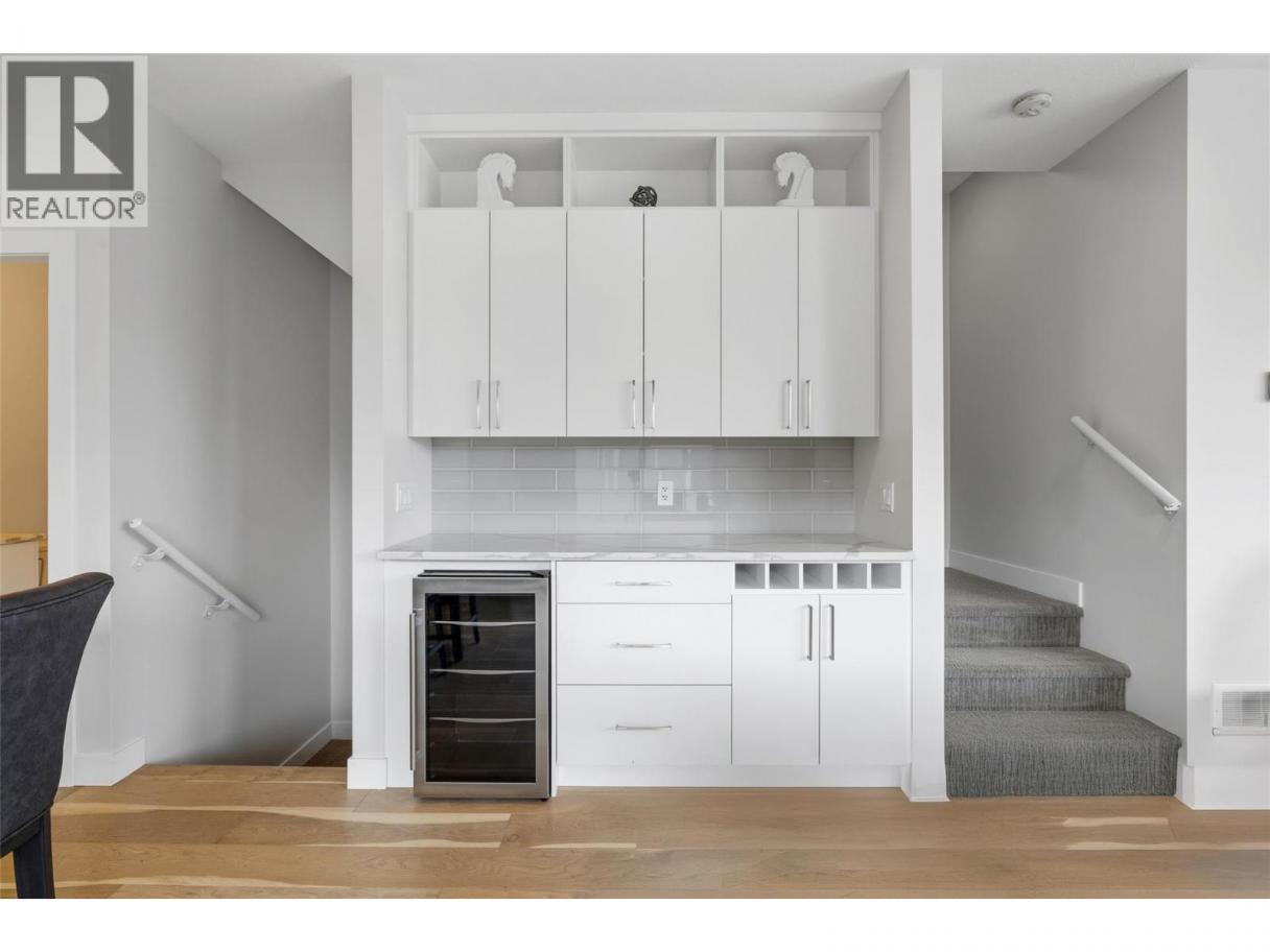 Situated in sought after KELOWNA SOUTH, close to the amenity rich SOUTH PANDOSY (""SOPA"") neighbourhood, you'll love the convenience of this INCREDIBLE LOCATION and the brilliance of this PERFECT HOME. This home ""checks all the boxes"" as it includes a PRIVATE ROOFTOP DECK (with hot-tub), a SECURE GARAGE, an AMENITY RICH LOCATION and a PERFECT FLOOR PLAN. Inside you'll love the open concept design, modern paint colors (freshly painted) and high end finishings. The kitchen is stunning; offering lots of cabinet & counter space (quartz counter-tops), stainless steel appliances, plus beautiful hardware and backsplash. A built-in dining room bar (with wine fridge) and an oversize living room provide an ideal space for entertaining. Easily accessed from the kitchen is an oversize deck, ideal for BBQing or a morning coffee. The second floor offers 2 bedrooms and 2 bathrooms, plus laundry. The primary bedroom retreat includes a walk in closet and a gorgeous ensuite. Go up a few stairs and you're sure to be impressed by the private rooftop deck. The rooftop deck provides great views, is plumbed with gas (for bbq), includes a hot-tub, and offers room for most any patio furniture set. Downstairs, the lower level provides a FULL WASHROOM plus a huge and open space offering lots of options (media room, games room, or perhaps you add a 3rd bedroom). Extras include brand new paint, tankless hot water heater, quartz counters throughout, no pet restrictions and a low monthly $100 strata fee. (id:6769)