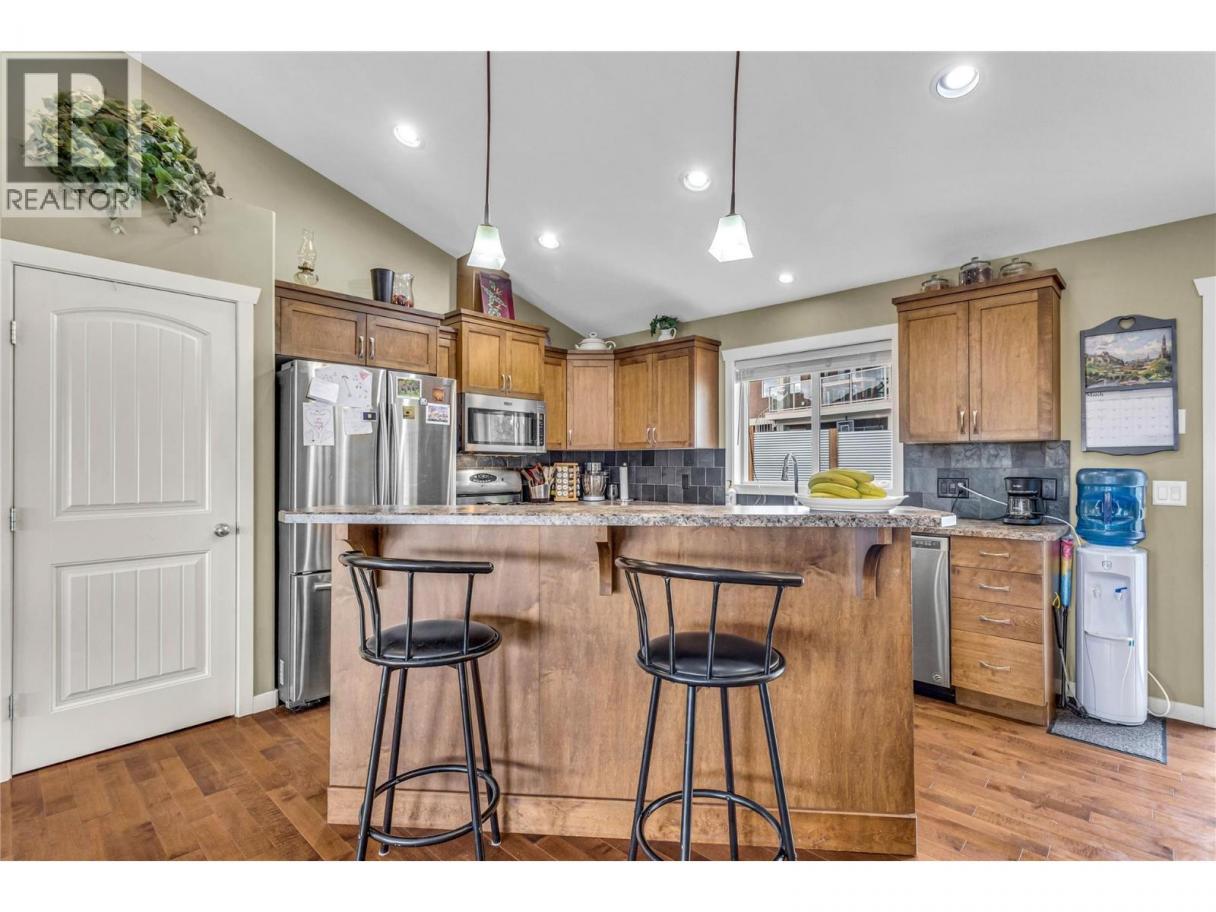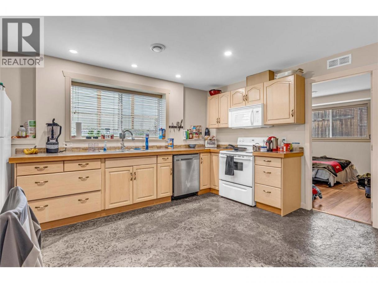 This 4 bed plus den, 3 full bath Upper Mission home is well kept and features some really nice upgrades that are tough to find in this price range! The biggest feature is the fully seperate grade level entry one bedroom suite! The space is bright and inviting thanks to the huge windows. It has stamped concrete floors, a full bathroom, generous 730sqft layout and its own laundry room! Suite would be ideal for people with mobility issues since it has no steps at all. The main part of the home is a 3 bed plus den configuration. The grade level entry has the den/office with the same stamped concrete floors. On the second floor are the three other bedrooms. The master suite has a good sized ensuite, tub and shower with frosted glass window for natural light. The second floor living space has hardwood floors, vaulted ceilings, gas fireplace and direct access to both the front deck with pleasant views and the back deck with stairs to the yard. The back yard is well laid out with a level lawn surface for family activities. It has forced air heating with AC for those hot summer Kelowna days! The driveway is all stamped concrete and has parking for several vehicles, even an RV would fit. Cultured stone exterior details and a nice porch area make the curb appeal of this home a little nicer than most others. Overall a great package, check out the virtual tours in the media tab! (id:6769)