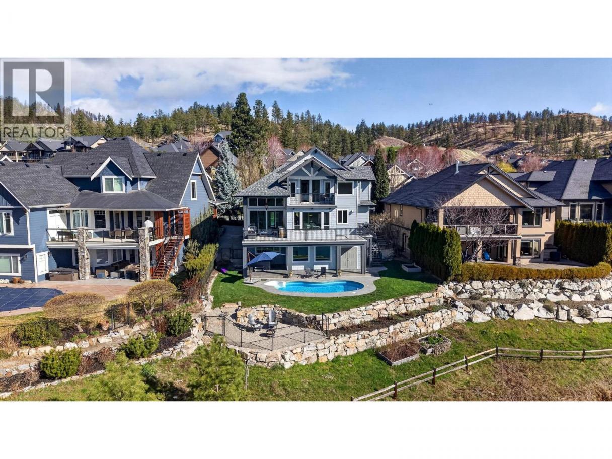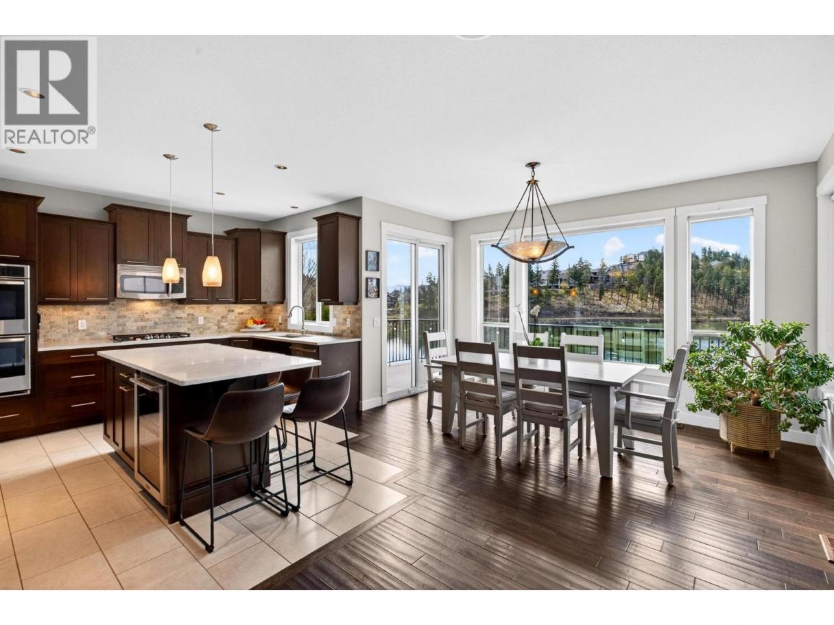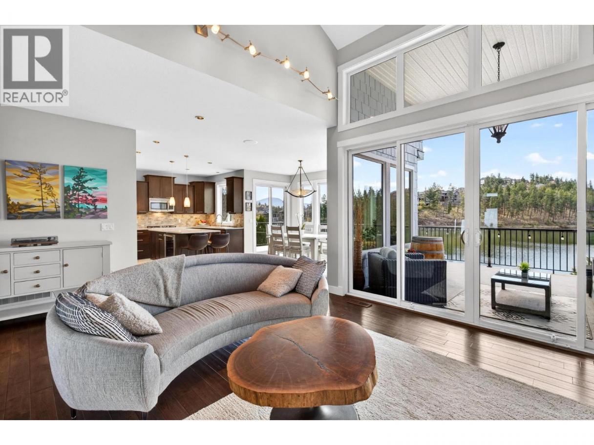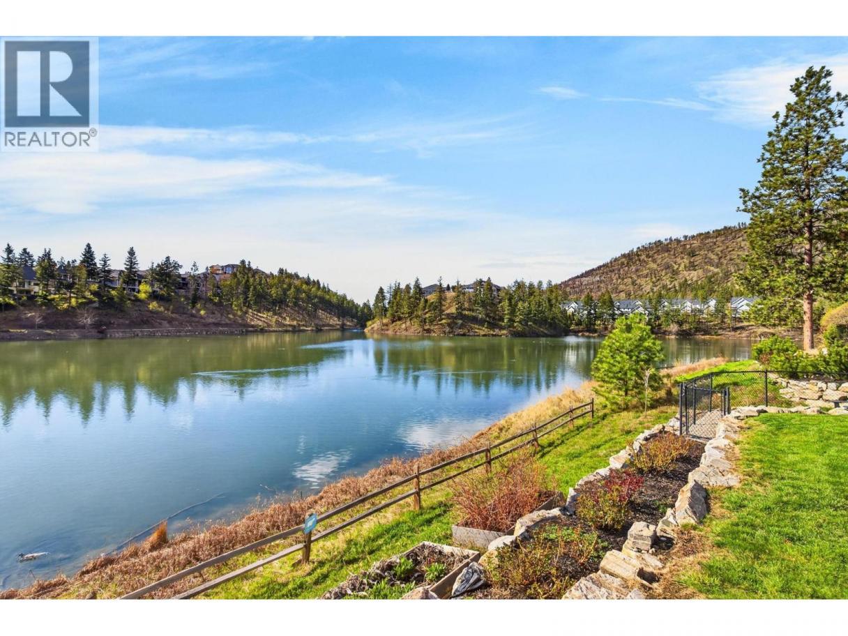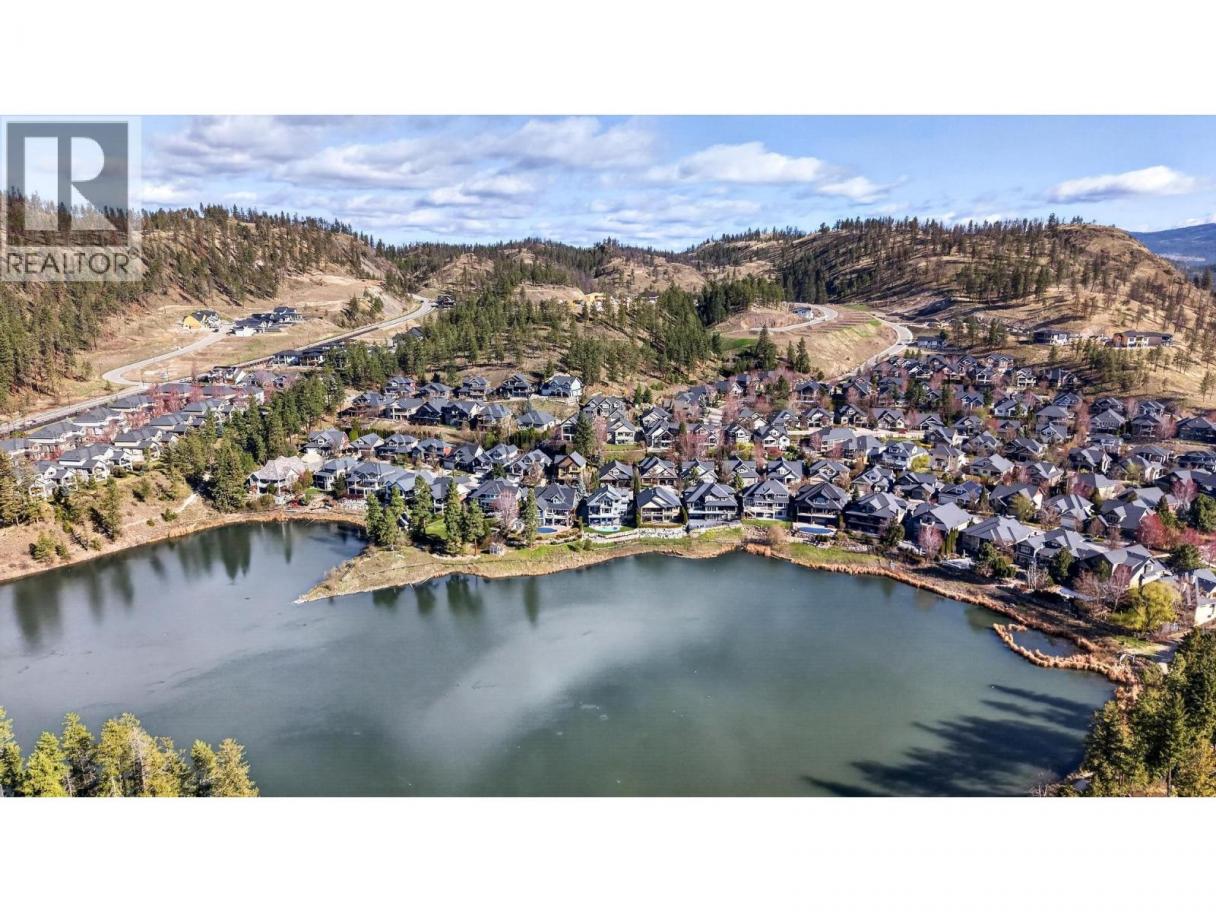 Set on a quiet cul-de-sac in Wilden, this rare two-storey lakefront home is one of a limited collection of properties backing directly onto Walroy Lake (Hidden Lake), offering a peaceful, nature-oriented setting just minutes from city amenities. Positioned on the shoreline, the south-facing backyard captures stunning lake and mountain views, creating a private backdrop seldom found in Kelowna. The 3,522 sq ft home features a bright, open-concept main floor with vaulted ceilings and large windows oriented to the water. The kitchen includes new quartz countertops and tile backsplash, gas cooktop and built-in double ovens, and a central island with seating, opening to dining and living areas. A den, laundry, and powder room complete this level. Upstairs, the primary bedroom offers a lake-view balcony, vaulted ceiling, and a spacious 5-piece ensuite, plus two additional bedrooms and a full bathroom. The walk-out basement includes a large recreation room, bedroom, a second den, and full bathroom, with potential for additional bedroom or suite. Extremely well maintained and move-in ready, with new interior/exterior paint, fireplace surround, and roof. Geothermal heating and cooling. Oversized double attached garage equipped with EV charger. The backyard features a saltwater pool, hot tub, patio, and direct shoreline access with a fire pit at the water’s edge. The non-motorized lake supports a quieter outdoor setting and offers a rare waterfront lifestyle. (id:6769)