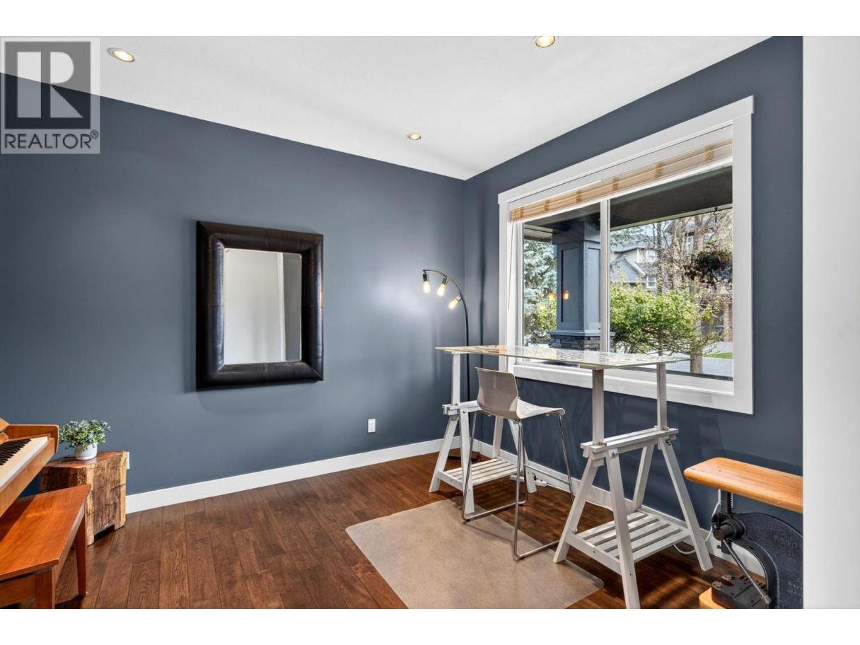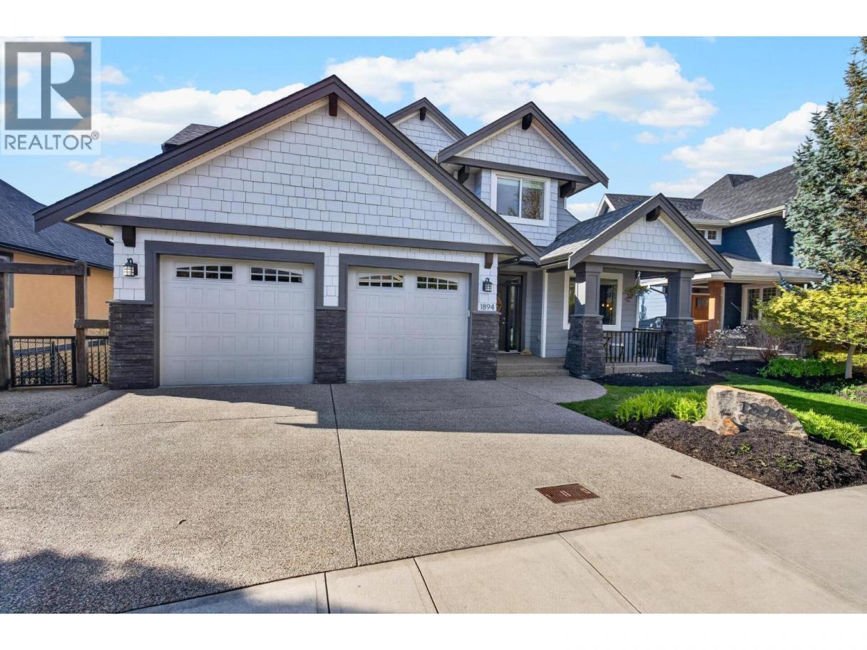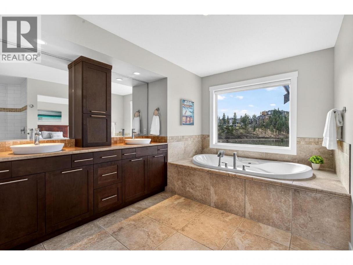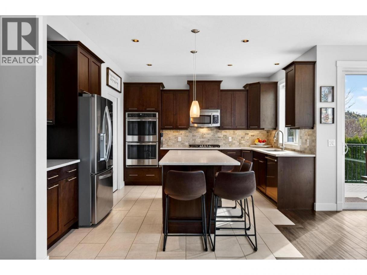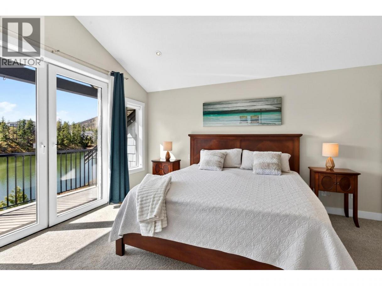 Set on a quiet cul-de-sac in Wilden, this rare two-storey lakefront home is one of a limited collection of properties backing directly onto Walroy Lake (Hidden Lake), offering a peaceful, nature-oriented setting just minutes from city amenities. Positioned on the shoreline, the south-facing backyard captures stunning lake and mountain views, creating a private backdrop seldom found in Kelowna. The 3,522 sq ft home features a bright, open-concept main floor with vaulted ceilings and large windows oriented to the water. The kitchen includes new quartz countertops and tile backsplash, gas cooktop and built-in double ovens, and a central island with seating, opening to dining and living areas. A den, laundry, and powder room complete this level. Upstairs, the primary bedroom offers a lake-view balcony, vaulted ceiling, and a spacious 5-piece ensuite, plus two additional bedrooms and a full bathroom. The walk-out basement includes a large recreation room, bedroom, a second den, and full bathroom, with potential for additional bedroom or suite. Extremely well maintained and move-in ready, with new interior/exterior paint, fireplace surround, and roof. Geothermal heating and cooling. Oversized double attached garage equipped with EV charger. The backyard features a saltwater pool, hot tub, patio, and direct shoreline access with a fire pit at the water’s edge. The non-motorized lake supports a quieter outdoor setting and offers a rare waterfront lifestyle. (id:6769)