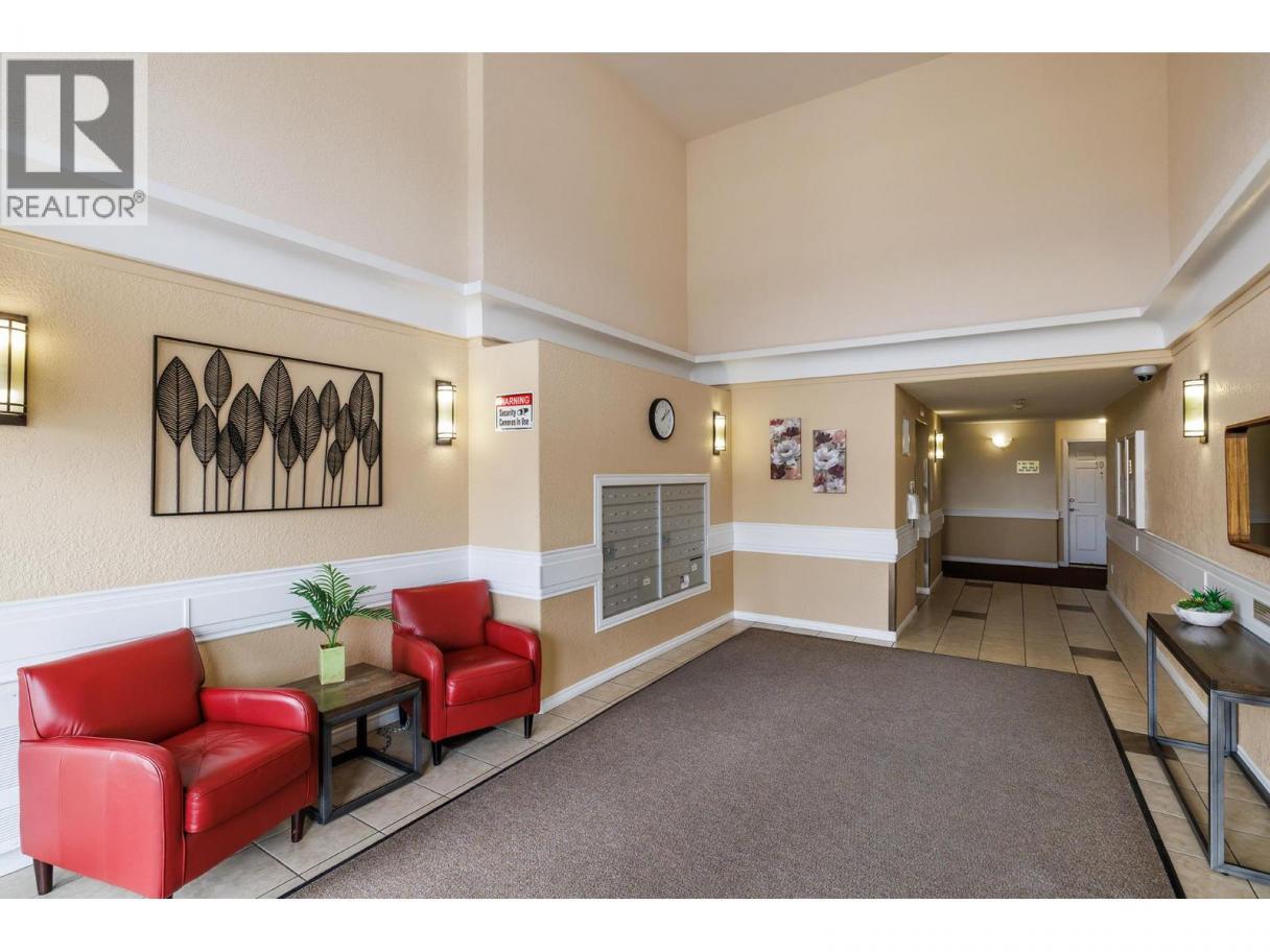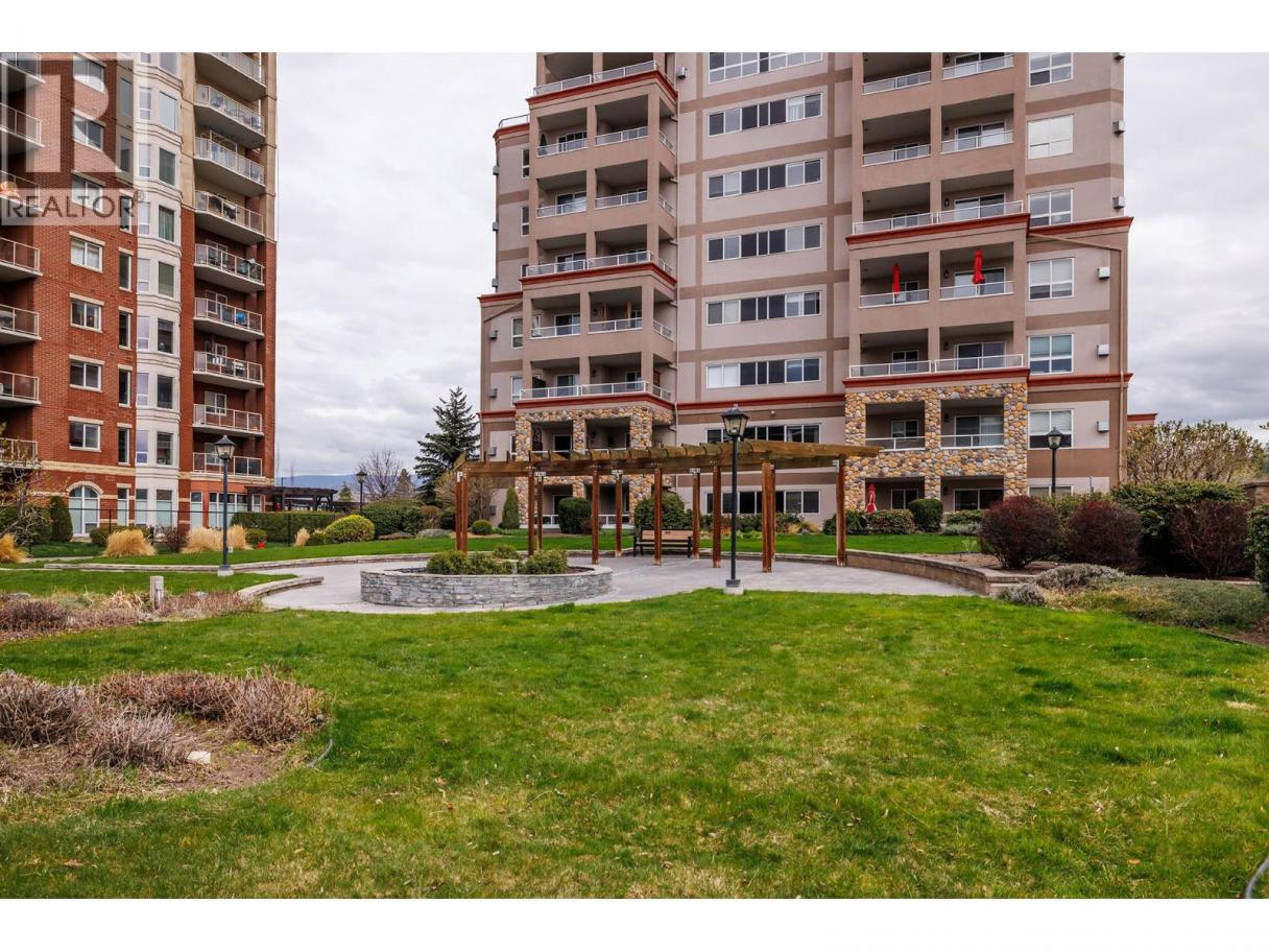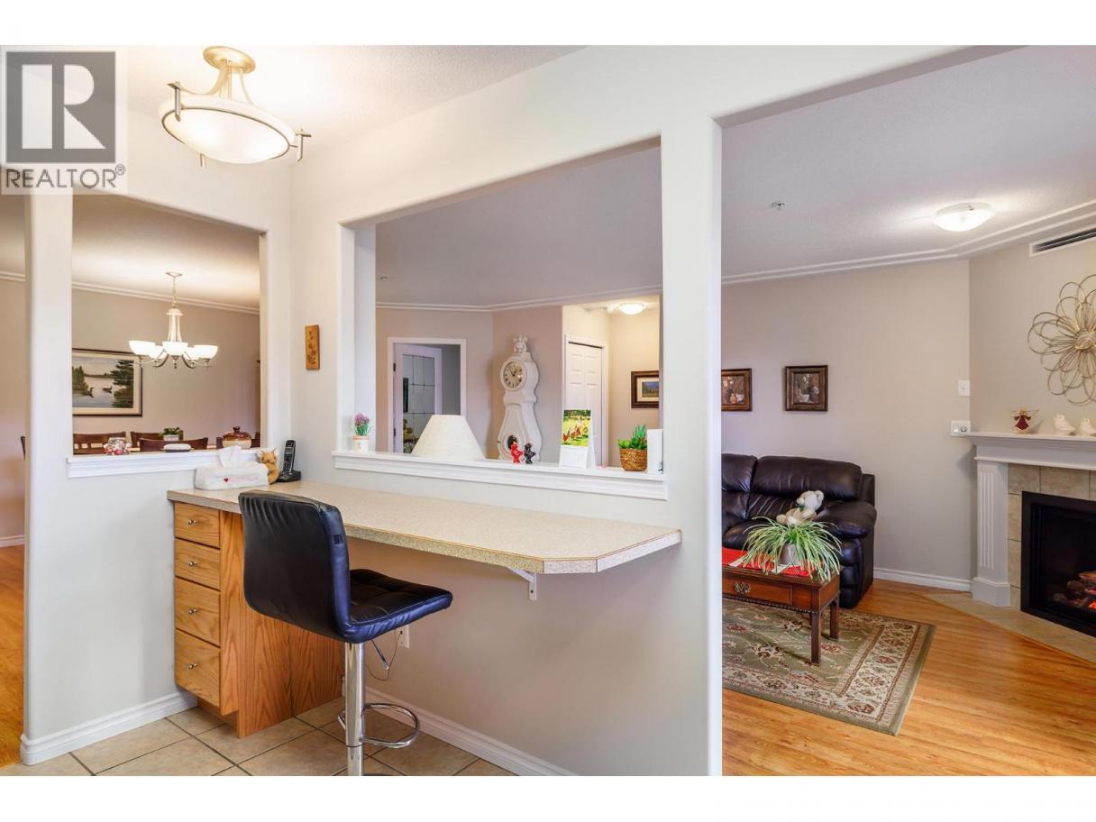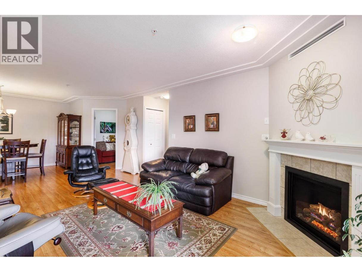 Spacious and contemporary 2 bed + den, 2 bath condo at Mission Creek Towers! Bedrooms strategically placed for privacy and an open kitchen with shaker-style cabinets, stainless steel appliances, ample storage, and a breakfast counter flowing into the dining area. Large windows fill the space with natural light, while a corner gas fireplace adds cozy charm. A convenient laundry room with side-by-side washer and dryer completes the home. Relax on the covered deck overlooking Mission Creek Park. Concrete construction ensures quiet, durable living. Enjoy amenities including a heated indoor pool, hot tub, and a kitchen-equipped event room. Includes 1 secure underground parking space and a storage unit on your floor. Forced air heating and A/C keep you comfortable year-round. Steps from hiking trails, parks, shopping, Costco, and the Farmers Market. One pet allowed, up to 14""! THIS ONE IS AVAILABLE AND EASY TO SHOW! (id:6769)