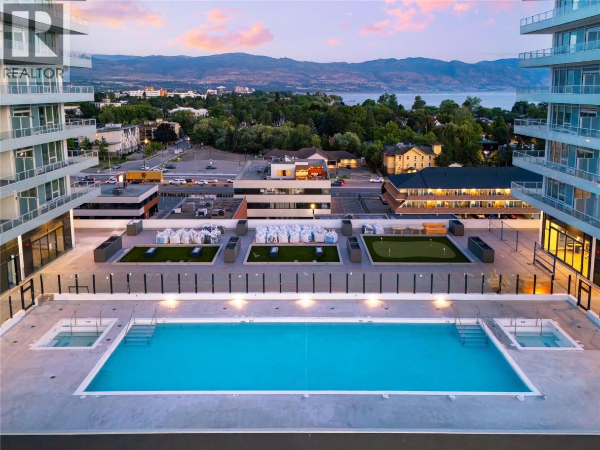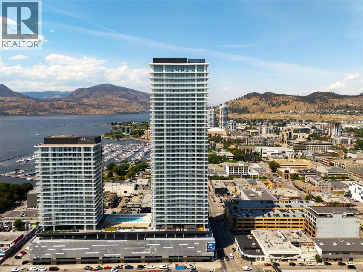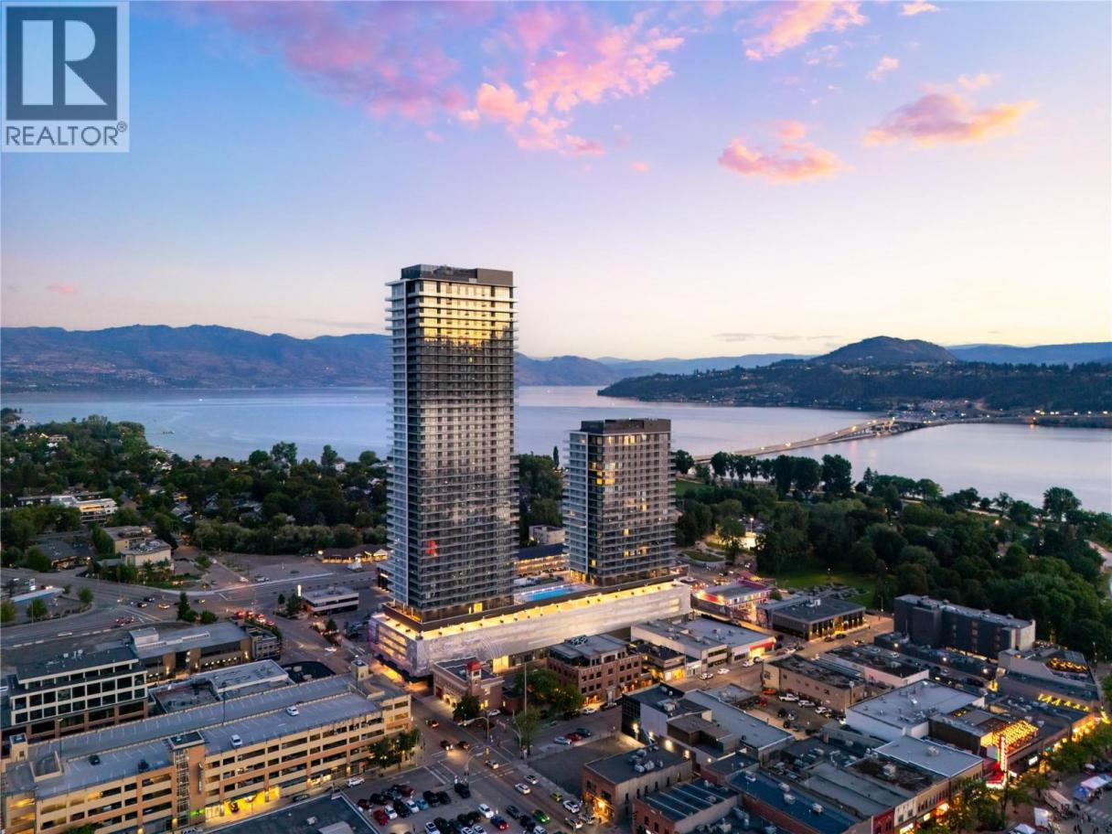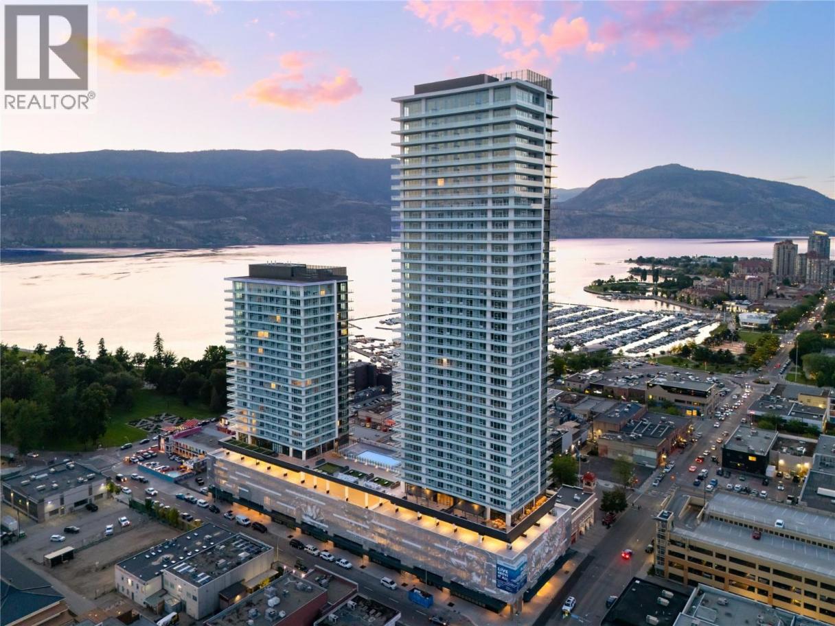 Welcome to #1602 238 Leon Avenue! Water Street by the Park (WSBTP) is a brand-new development offering vacation-inspired living in the heart of downtown Kelowna. This luxurious NE facing, 2-bedroom, 2-bathroom unit includes 875 sq. Ft of living space, w/ a 325 sq. Ft wrap around balcony, offering breathtaking views of Okanagan Lake. The B1-02 floorplan is thoughtfully designed with luxury and elegance in mind and offers clean lines, bright open living space, and calming neutral colours throughout. The kitchen features premium wood cabinetry, quartz countertops, and stainless-steel Fulgor Milano appliance package, including panel ready fridge and gas range. The interior is finished with luxury vinyl plank flooring and porcelain tile. WSBTP is an amenity rich community, which features a sixth-floor “deck” that offers a peaceful retreat from the buzz of downtown Kelowna. The deck includes a heated outdoor pool, two hot tubs, sauna, steam room, fully equipped gym, outdoor BBQs, fire pit enclaves, golf simulator, putting green, yoga and spin studio, and so much more. WSBTP puts you at the centre of it all—just steps from coffee shops, restaurants, breweries, wineries, shopping, public transit, City Park, and the Waterfront Boardwalk. One parking stall included. No storage locker. Rentals are allowed, with restrictions (min. 30 days) and pets are also allowed, with restrictions (up to two dogs; or 2 cats; or one dog and one cat). GST is inclusive of the purchase price. (id:6769)