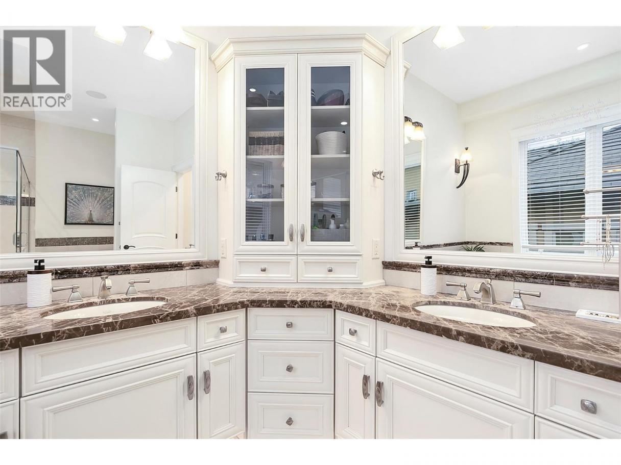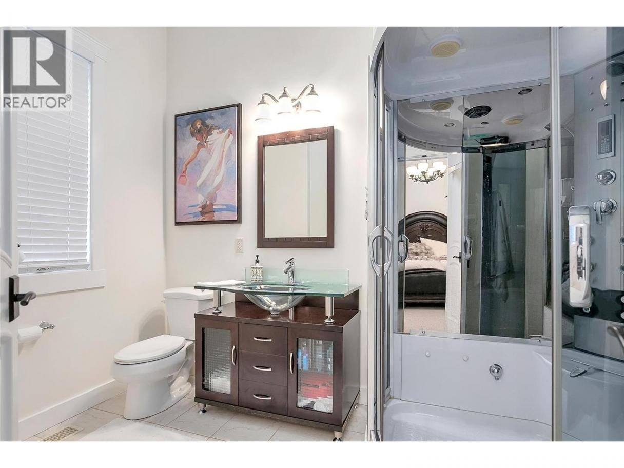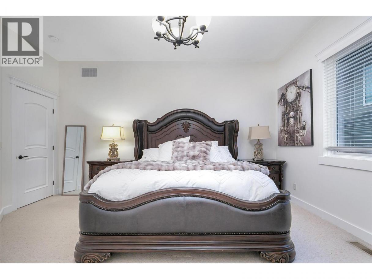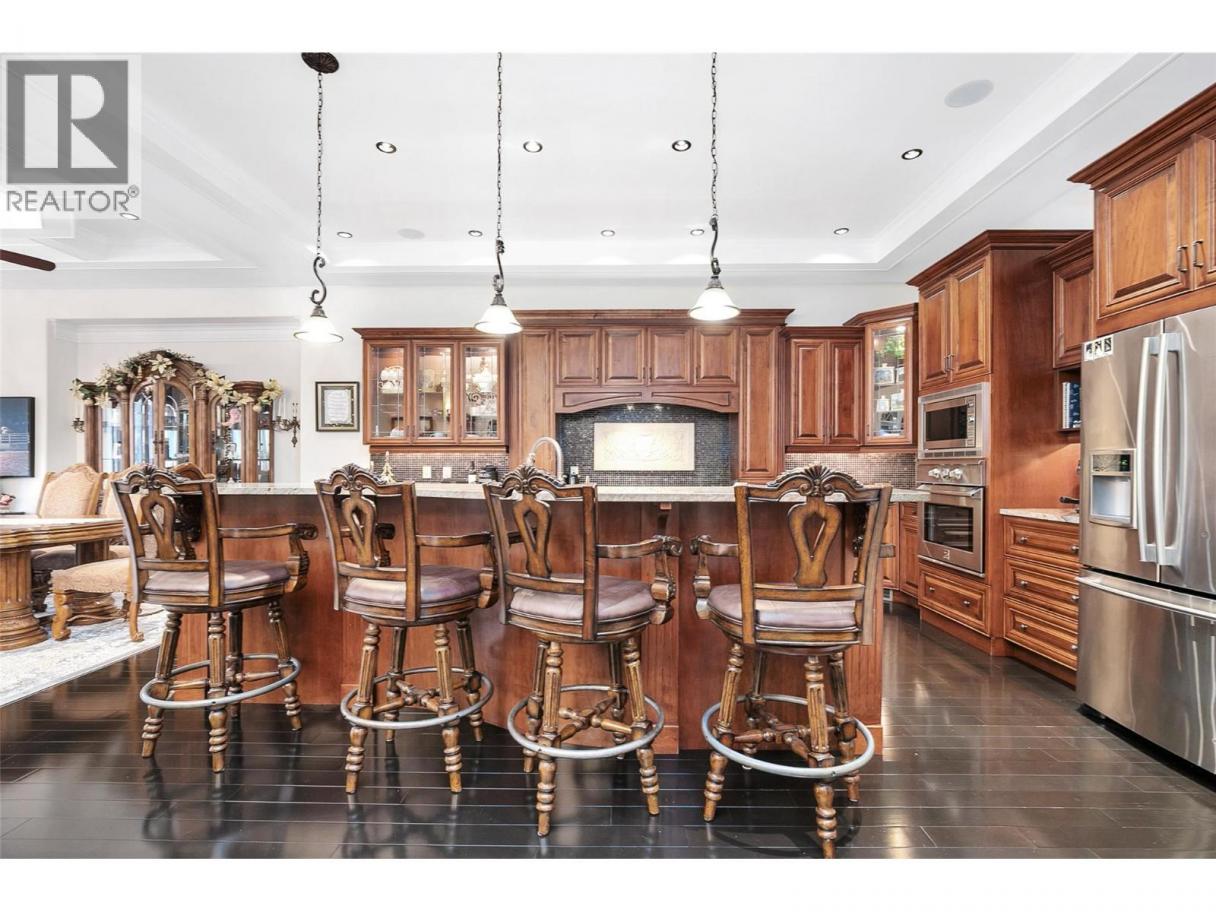 Welcome to an exceptional residence where timeless elegance meets breathtaking scenery. Enter through the grand rotunda foyer and be immediately drawn into the expansive living room, an architectural showpiece with high ceilings and walls of windows framing uninterrupted valley and mountain views. Designed for both refined entertaining and everyday luxury, the chef’s kitchen is a true centerpiece featuring an oversized island and stainless steel appliances. The adjoining dining room easily accommodates large gatherings while enjoying stunning outlooks. The primary suite is a private retreat offering walk-out access, sweeping vistas, and a spa-inspired ensuite finished in granite and tile, complete with a Jacuzzi soaker tub, bidet, and walk-in closet, creating an ideal sanctuary at day’s end. A dedicated office and a second bedroom or guest suite with a multi-jetted shower complete the upper level. A curved custom staircase leads to the finished walk-out lower level, offering a spacious recreation room, entertainment kitchen and bar, theatre room, gym space, two additional bedrooms, and a full bathroom. Outdoors, covered patios and a fountain-accented backyard provide the perfect setting for entertaining or quiet relaxation. Ideally located near golf courses like The Okanagan Golf Club, parks and trails, and everyday amenities, with convenient access to YLW, this home offers luxury, scale, and unforgettable views in a highly sought-after setting. Make it yours today! (id:6769)