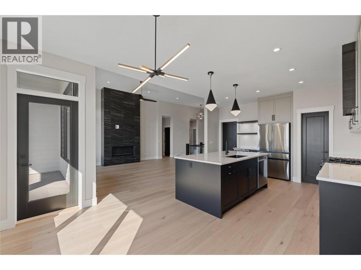 Stunning lakeview walkout rancher offering 5 bedrooms, 4 bathrooms, and 3,045 sq. ft. of beautifully designed living space on a rare, flat and fully usable 0.19-acre lot. Enjoy breathtaking views of Okanagan Lake from the bright, open-concept main floor featuring a spacious great room, generous dining area, and a chef-inspired kitchen complete with an oversized island—perfect for entertaining and family living. The primary suite is a private retreat with lake views, direct deck access, and a luxurious ensuite showcasing a soaker tub, walk-in shower, double vanity, and walk-in closet. The fully finished walkout basement offers excellent flexibility with two additional bedrooms, a full bathroom, a large recreation area with backyard access, plus a fully self-contained 1-bedroom legal suite—ideal for extended family or mortgage helper. The 21’ x 22’ garage is complemented by ample additional parking for up to four vehicles, including space for an RV or trailer. A rare opportunity to own a new home with lake views, a flat yard, and income potential, all in a sought-after, family-friendly neighbourhood close to schools, golf, parks, trails, and everyday amenities. (id:6769)