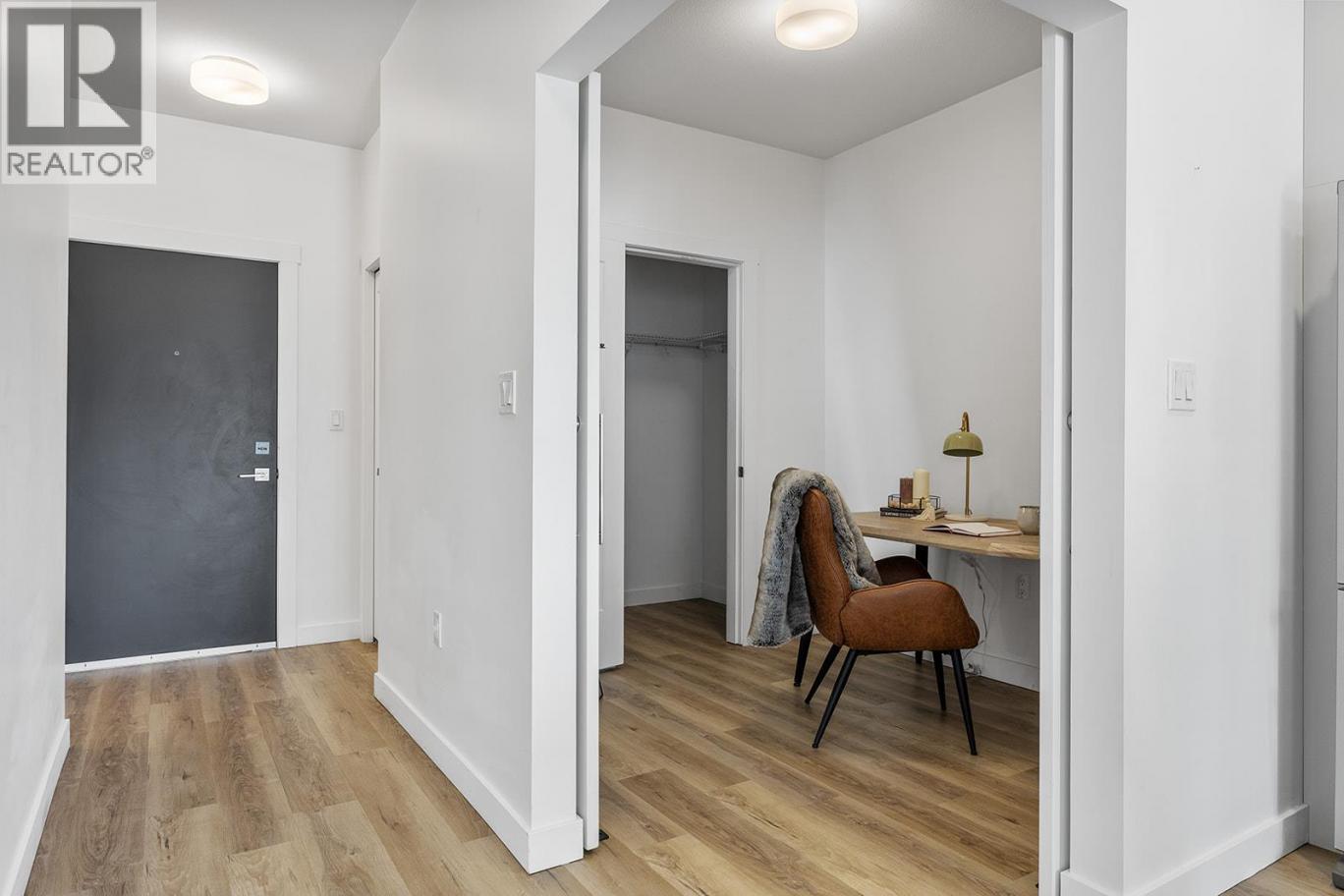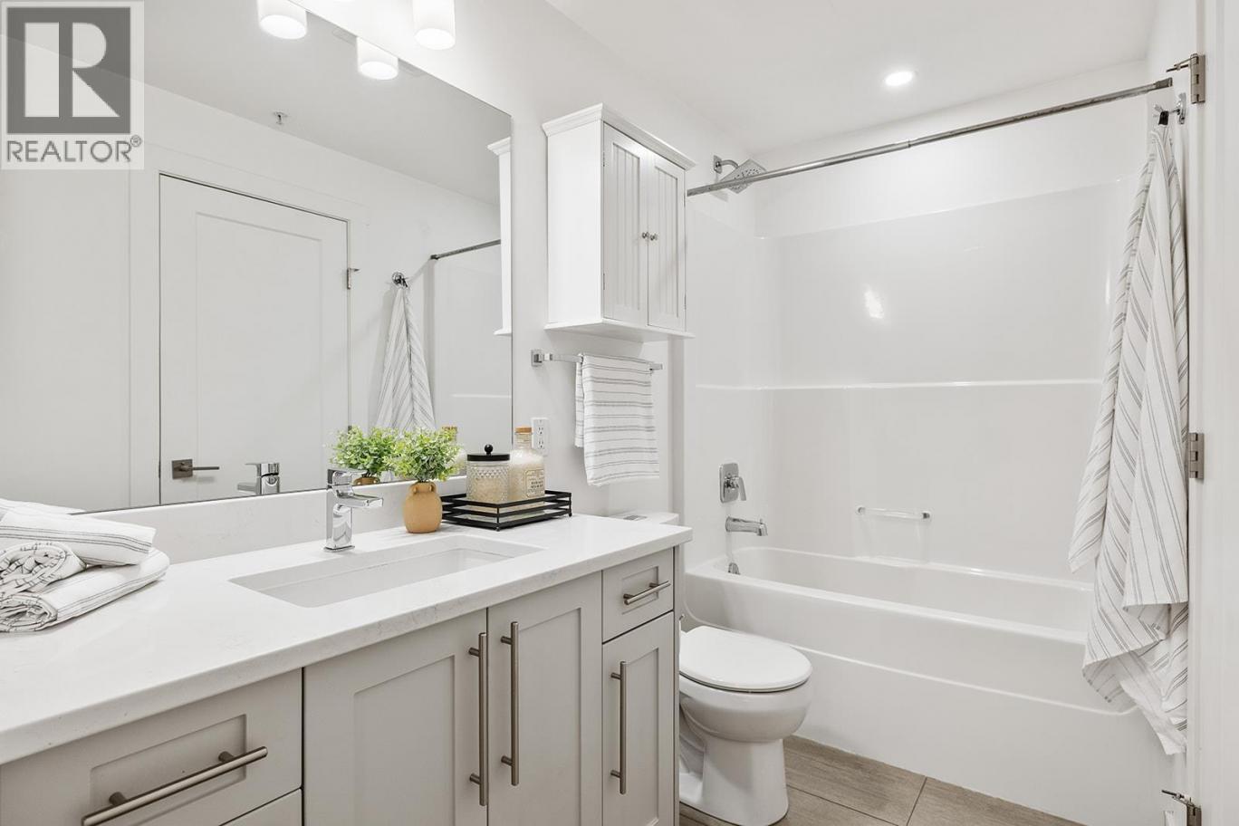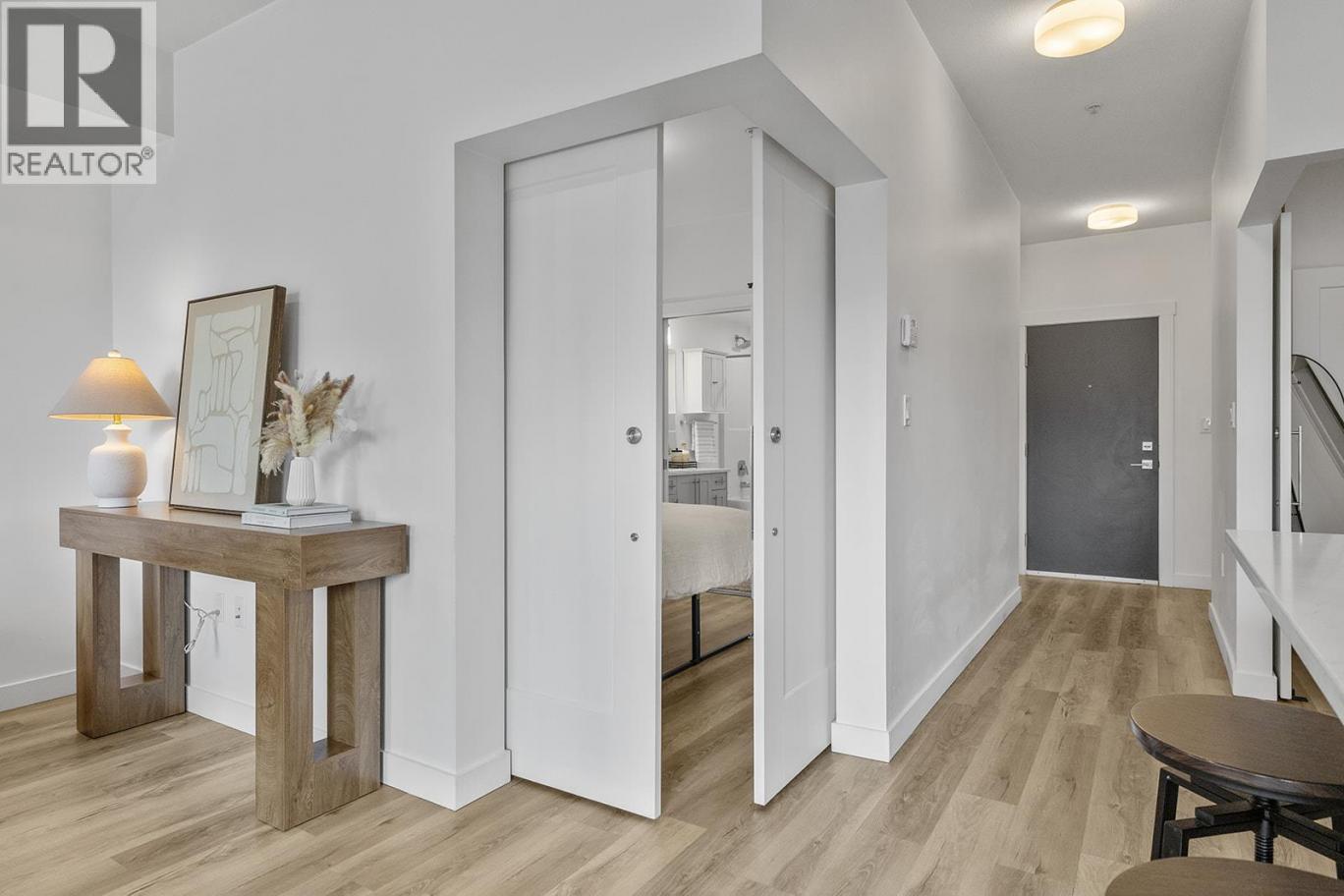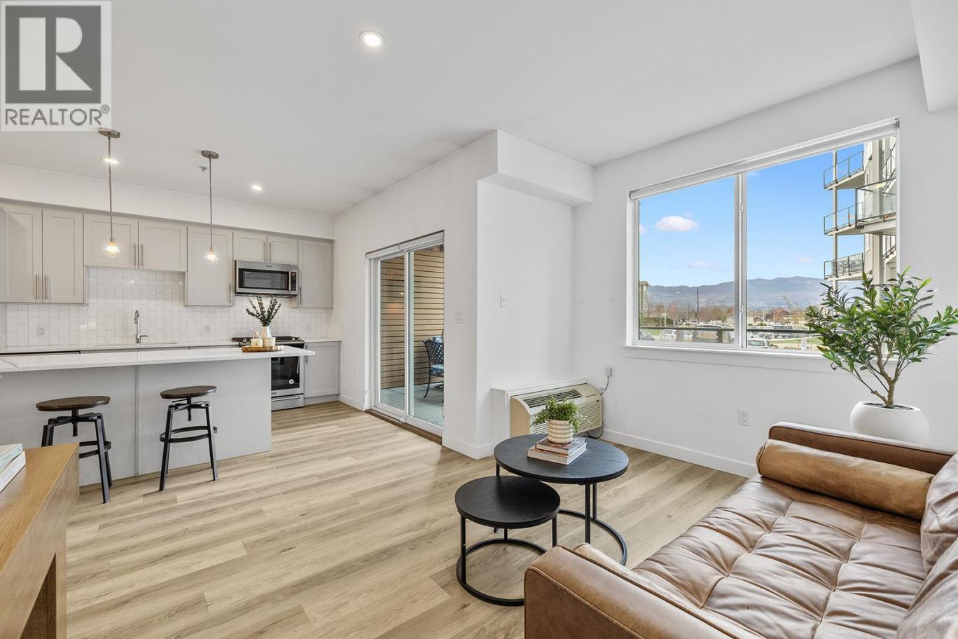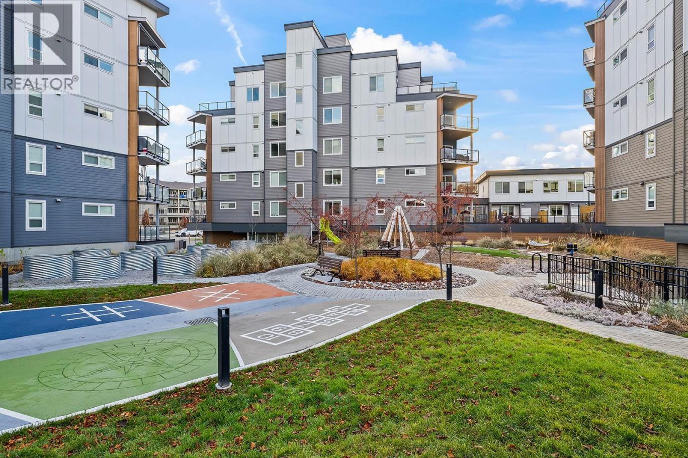 Immaculate 2 bed, 1 bath condo in Green Square, perfectly positioned in the heart of the Lower Mission. This lightly lived-in home shows like new and offers outstanding value for first-time buyers, professionals, or investors. Located just steps to schools, parks, beaches, and the future Casorso Park, and close proximity to Okanagan College and H2O Adventure + Fitness Centre, shopping, and restaurants. The modern kitchen features a large island with quartz countertops, upgraded Maytag stainless steel appliances, and sleek soft-close cabinetry. The open-concept layout flows seamlessly into the living space, leading to a massive partially covered deck complete with natural gas BBQ hookup, glass railings, and beautiful mountain views. Both bedrooms have large closets and sliding barn doors, offering flexibility for privacy or an open feel. The second bedroom easily functions as a home office or guest space. Green Square offers a full range of amenities including a fitness centre, rooftop patio with BBQ area, community garden, children’s playground, and a convenient dog wash station. Pet-friendly living at its best with 2 dogs (no vicious breeds), 2 cats or 1 of each allowed! Vacant and move-in ready—an exceptional opportunity in one of Kelowna’s most sought-after neighbourhoods. (id:6769)