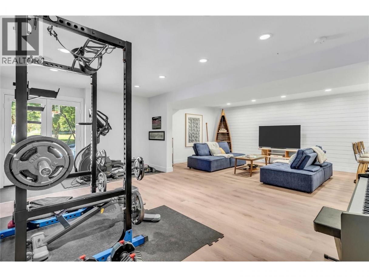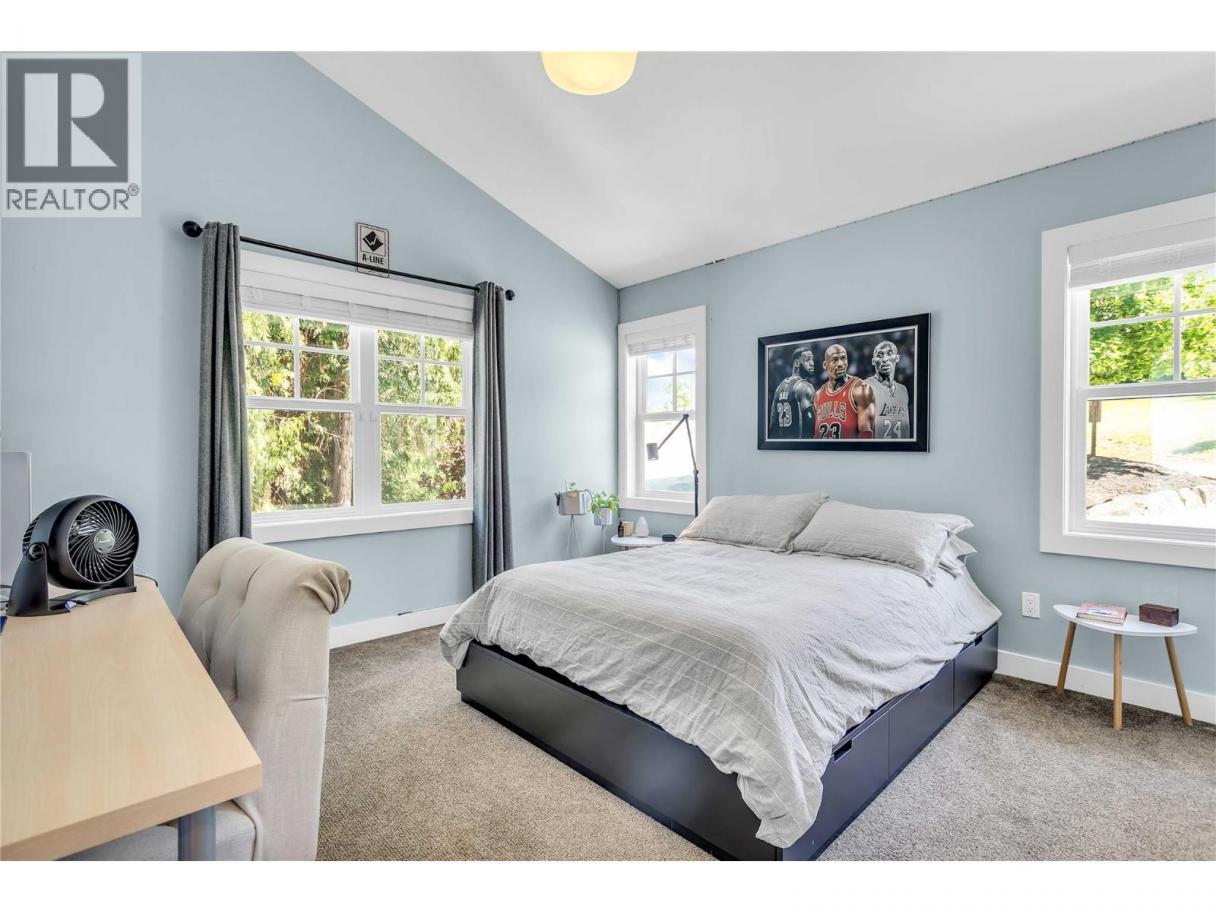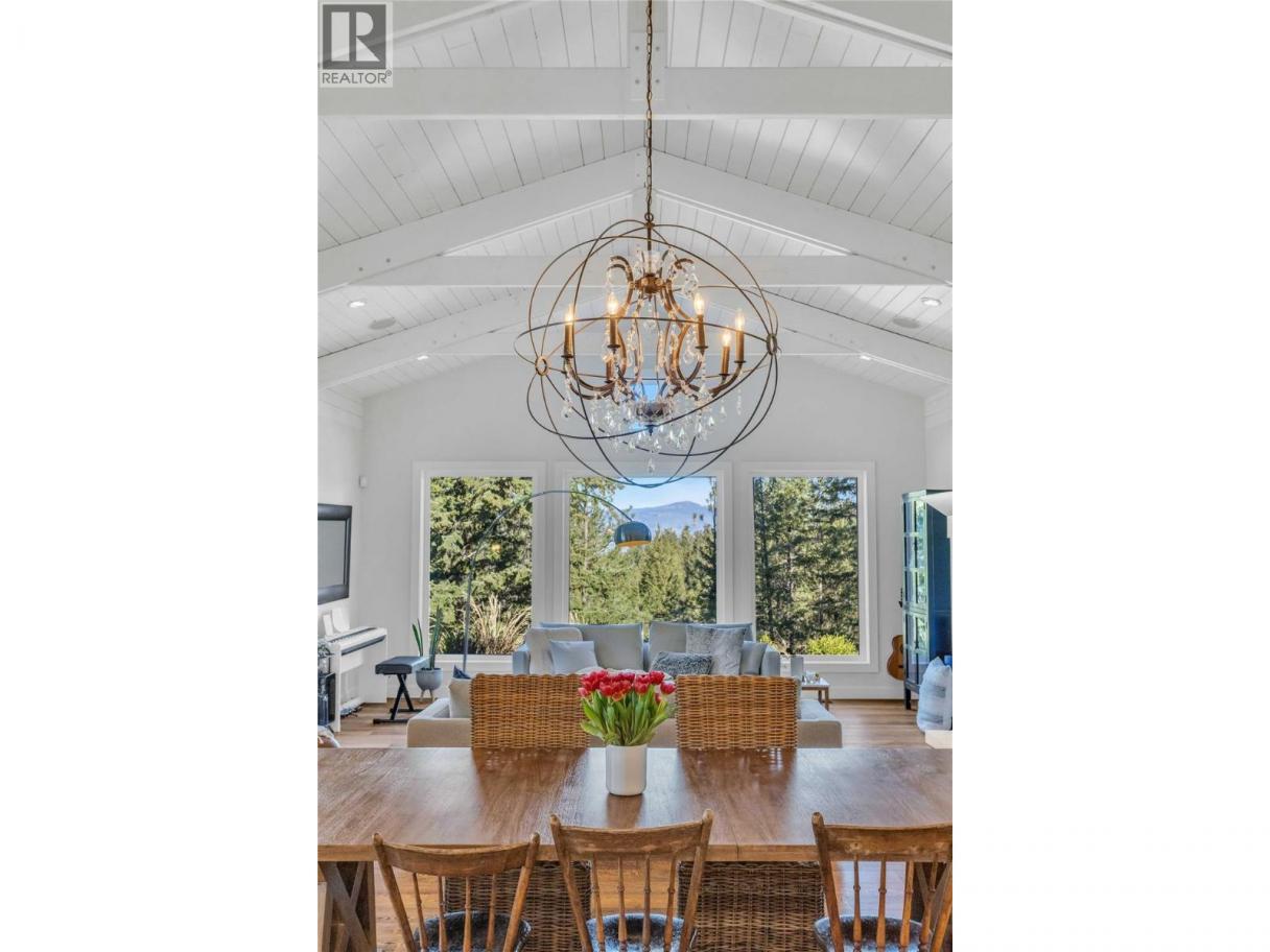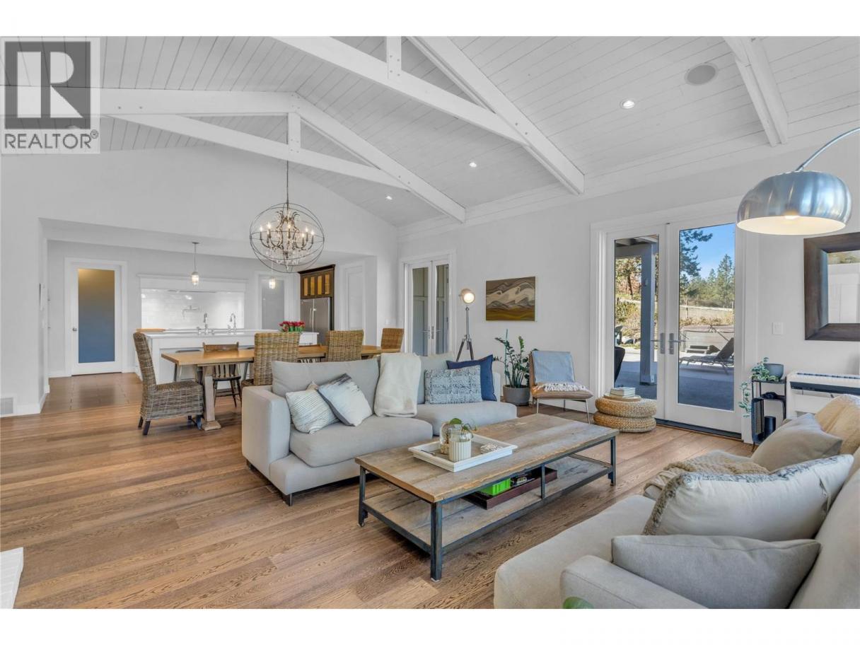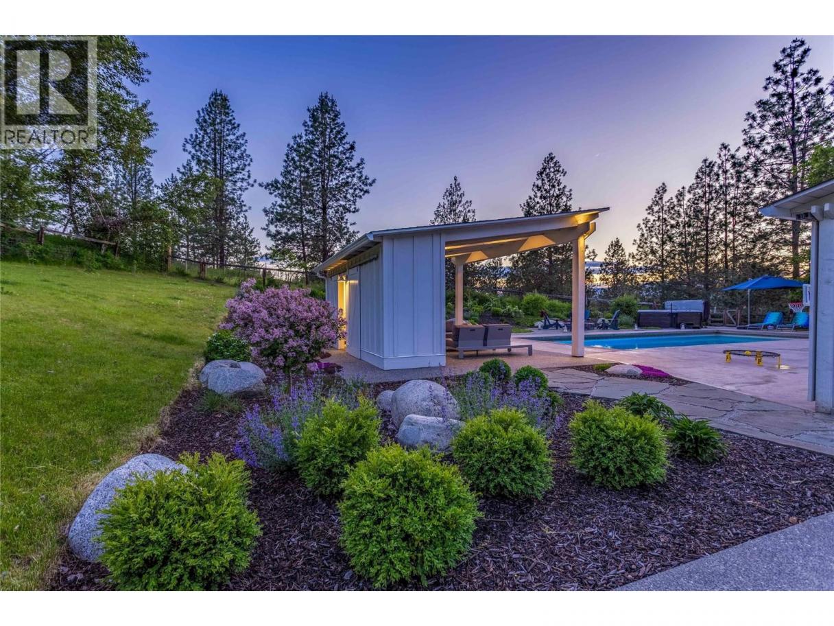 Tucked away on 4.25 private acres in Southeast Kelowna, this modern farmhouse offers refined living and complete seclusion. Thoughtfully designed and surrounded by nature, this property feels worlds away, yet remains effortlessly connected to everything that matters. Welcome to your private sanctuary in Southeast Kelowna, where nature and everyday luxury come together. Mature trees surround this modern farmhouse, and 5,600 sq ft of living space set the stage for quiet moments or lively gatherings. The heart of the home is the kitchen, which features double islands, quartz counters, and a spacious walk-in pantry. The vaulted ceiling in the dining and living areas, with white-washed beams, a brick fireplace, and a sparkling crystal chandelier, exudes warmth and style. French doors open onto a wraparound patio, an in-ground pool, and a fire pit framed by lush landscaping, inviting you to relax and unwind in complete privacy. The main level offers two bedrooms with en-suite bathrooms, walk-in closets, a den, laundry, and a mudroom for convenience. Upstairs, the primary suite is a private retreat, complete with a spa-like ensuite and a balcony overlooking the property, your perfect spot for a morning coffee or evening wine. The lower level features a second kitchen, multiple living areas, and two additional bedrooms. A heated double garage with front and rear access, plus a basement entry, adds extra convenience. This is more than just a home, it’s a lifestyle! (id:6769)