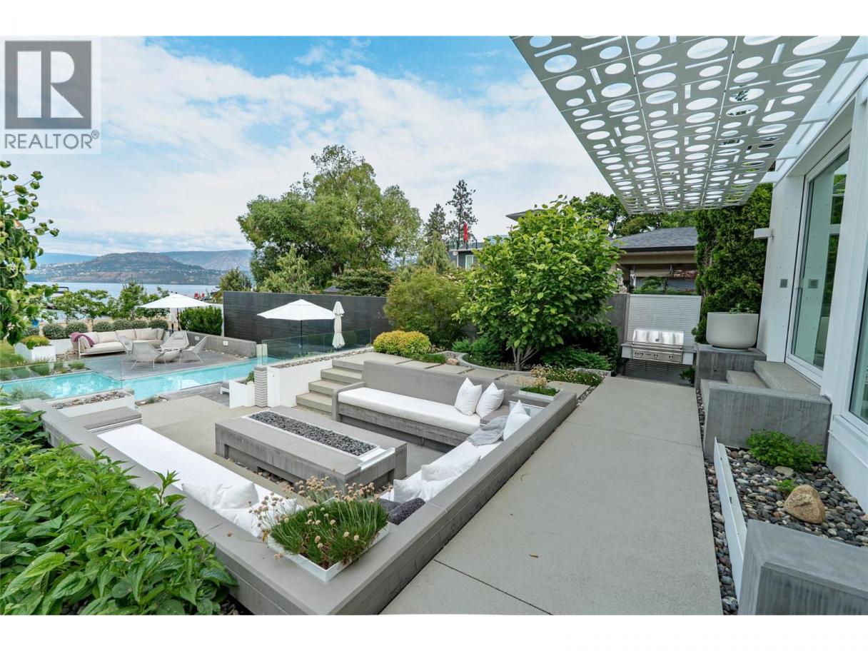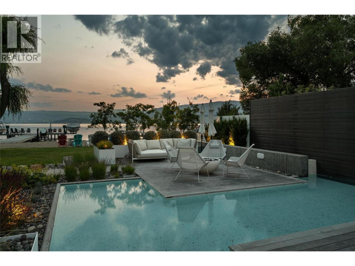 Set along the coveted stretch of Lakeshore, this exceptional waterfront home offers a rare expression of modern luxury, privacy, and design integrity. Originally conceived as a 1979 Pan-Abode beach home, this home has been thoughtfully reimagined into a retreat of enduring quality and quiet sophistication. Edge-grain cedar interiors lend warmth and texture, while a fully integrated smart home system provides seamless control of lighting, climate, and sound. The kitchen and baths are executed with a refined, minimalist sensibility balancing form, function, and timeless appeal. A dramatic sunroom anchors the living experience, an architectural centerpiece enveloped in glass. The grounds unfold as a series of curated moments positioned to capture varying perspectives of the lake, gardens, and sky. A sculptural fire feature with ambient lighting and integrated sound defines the evening atmosphere, while reflection pool and cascading water element introduce a sense of calm. A private fitness studio with steam amenities is complemented by a lower-level retreat featuring an infrared sauna, cold plunge tub offering a complete, spa-calibre experience. At the shoreline, a private 50 ft sandy beach and newly surfaced dock equipped with a 6000lb. boat lift and a SeaDoo lift - mean easy access to the lake. Quiet, extraordinary and rarely available, this property represents a singular opportunity to acquire a thoughtfully crafted waterfront estate in the Okanagan’s most desirable area. (id:6769)