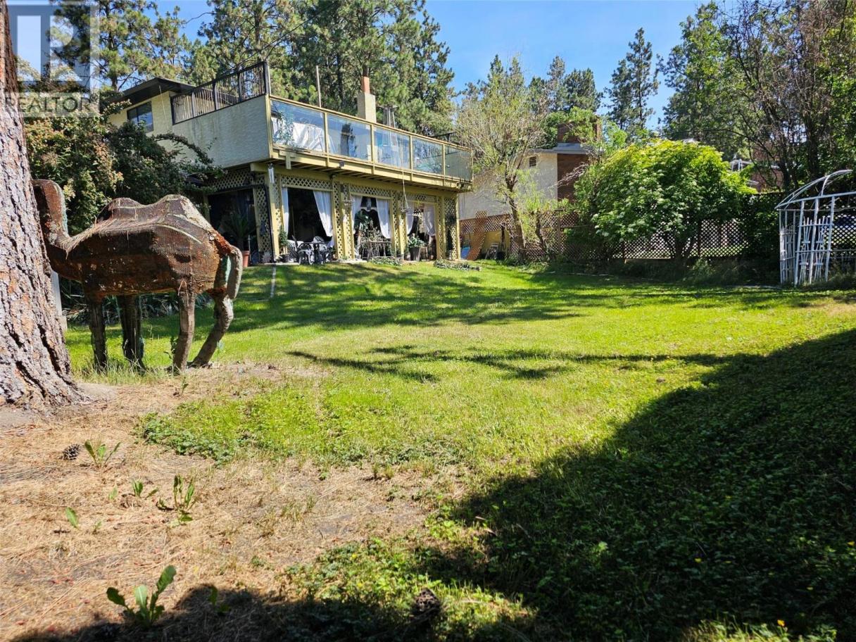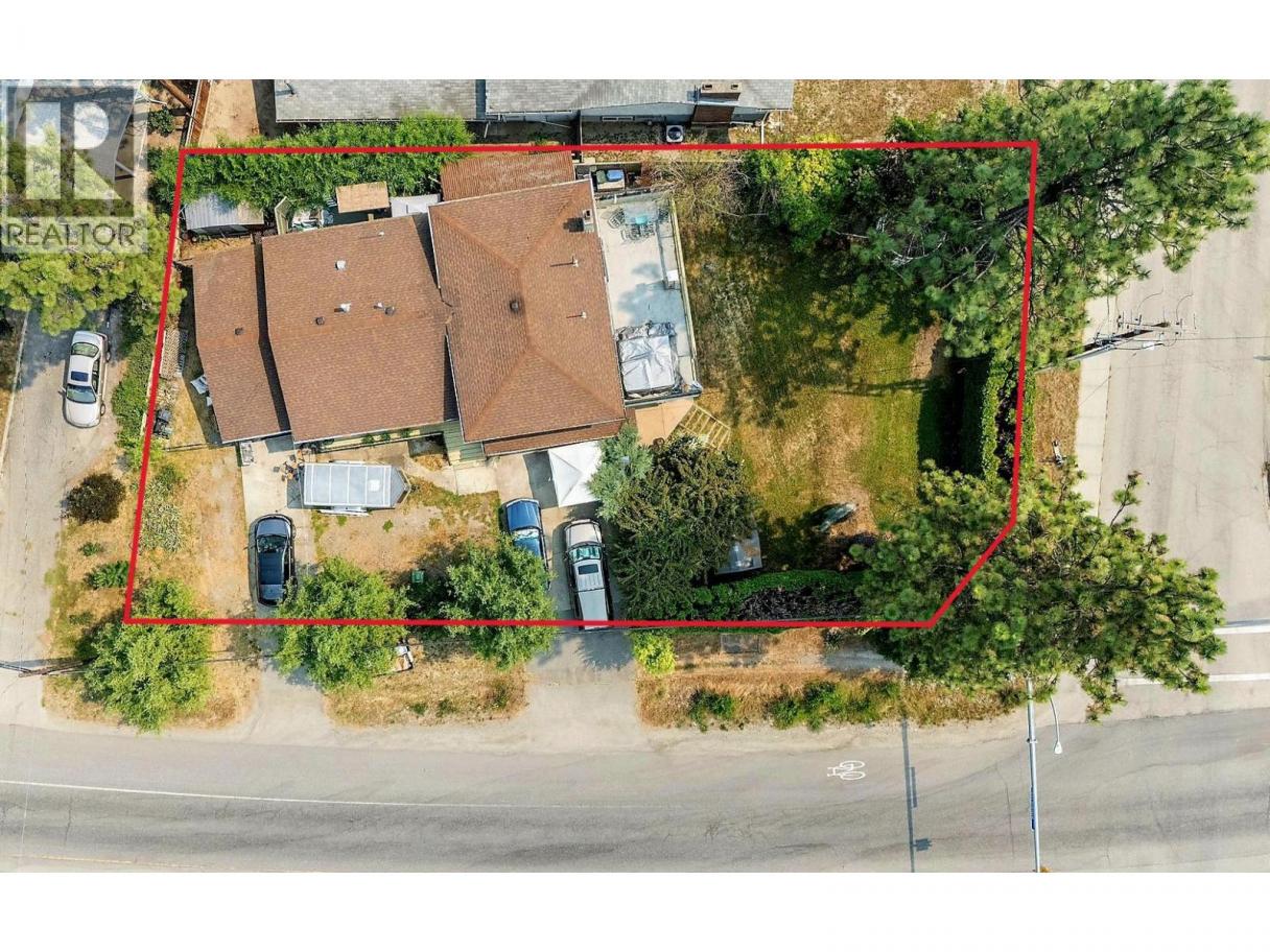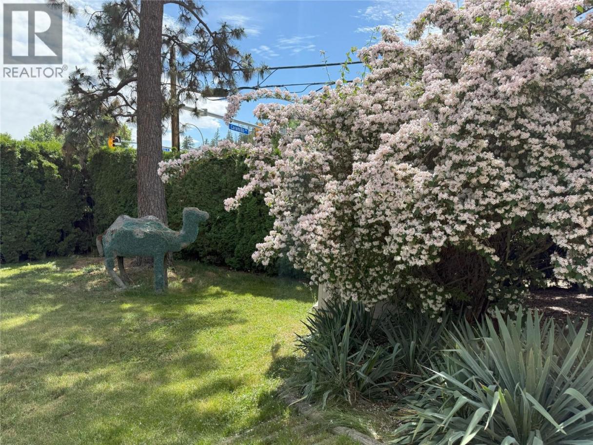 Exceptional 9,975 sq ft corner lot in one of Kelowna’s most sought-after urban areas, offering space, privacy, and versatility. This beautifully updated split-level home is thoughtfully positioned on one portion of the lot, creating a sense of openness with mature landscaping and room to enjoy both indoor and outdoor living, while also allowing for future development or the opportunity to redevelop the entire site. Move-in ready, the home features 3 bedrooms, 3 bathrooms, and a beautifully renovated kitchen with wood cabinetry and high-end appliances. The main level opens to a spacious living and dining area with seamless access to a private patio—ideal for indoor-outdoor living. Upstairs includes three large bedrooms, including a primary suite with walk-in closet and ensuite. The lower level has a cozy family room with a custom stone wood-burning fireplace and access to a covered wraparound patio. A rec room, built-in office, laundry, and storage room complete the basement—perfect for guests, workspace, or relaxing and so much storage space.. Parking is ample with a double attached garage, single garage converted to storage room, and circular driveway for RVs or recreational vehicles. The landscaped yard features mature trees and lush gardens, creating a private outdoor retreat. Zoned MF1, the property also offers future flexibility and long-term potential in a prime central location. (id:6769)