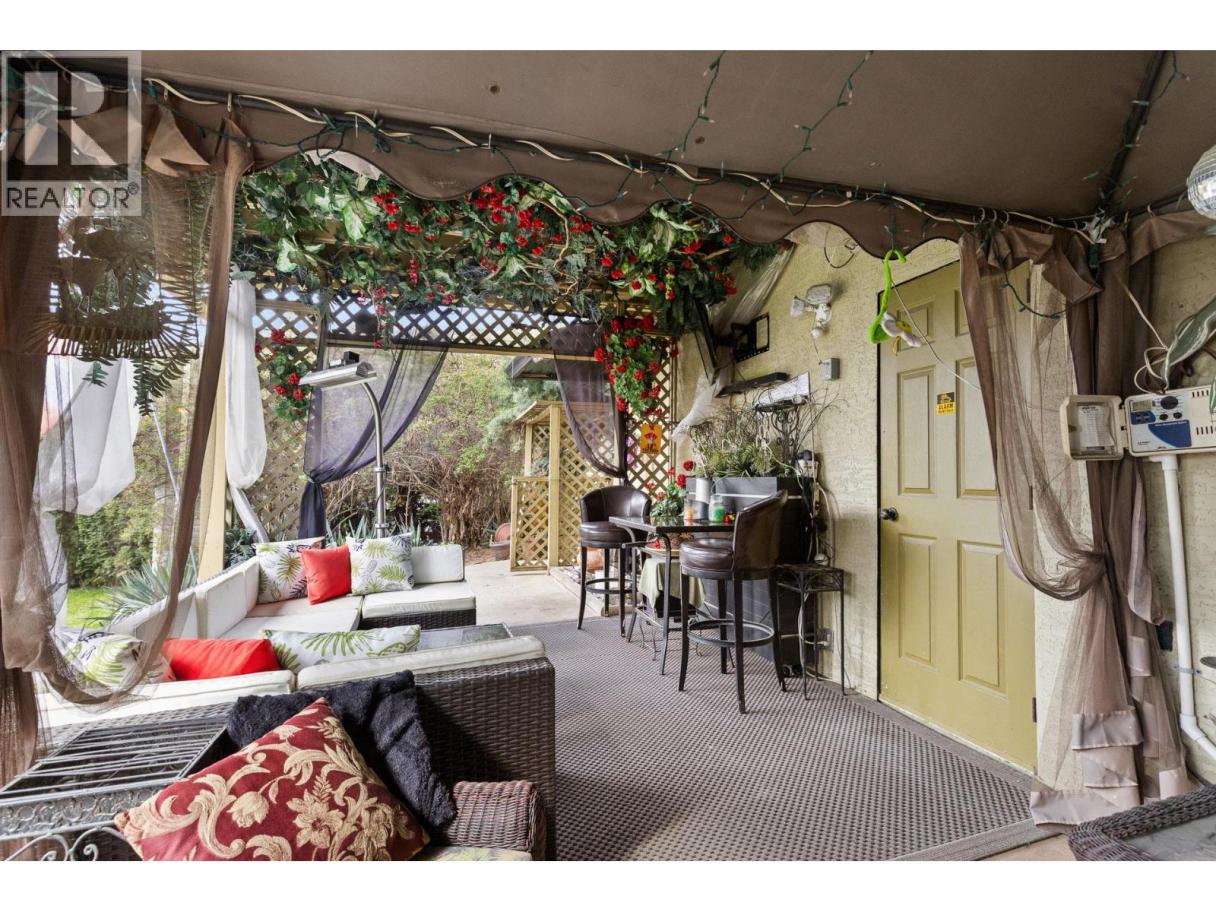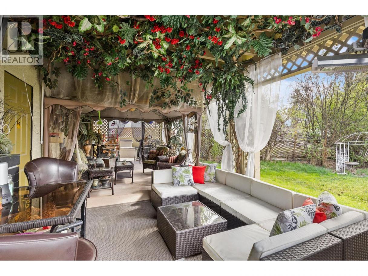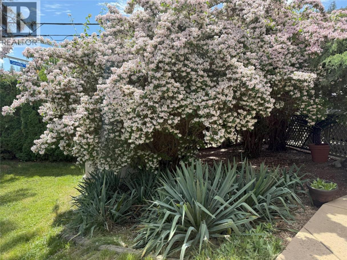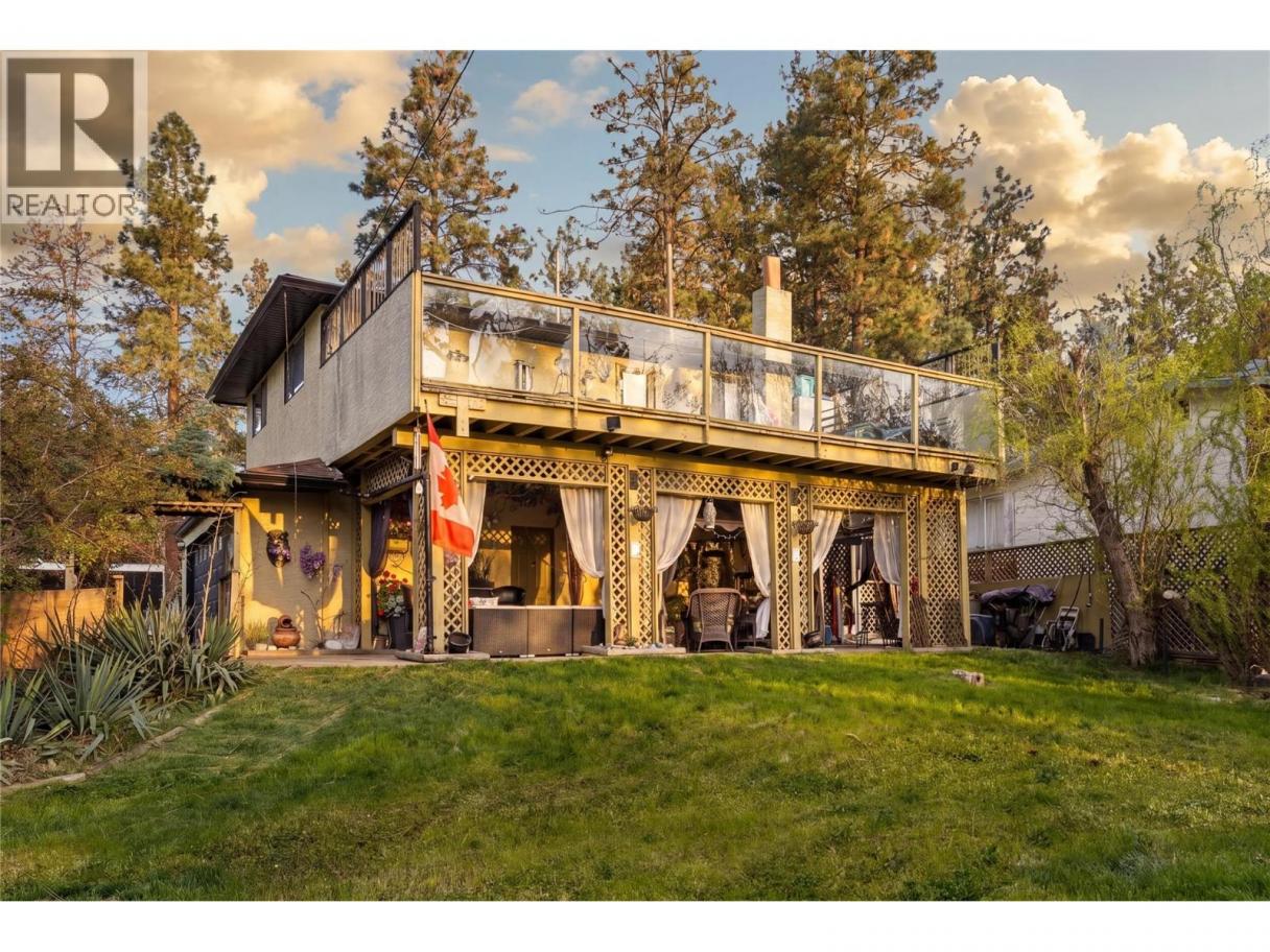 Exceptional 9,975 sq ft corner lot in one of Kelowna’s most sought-after urban areas, offering space, privacy, and versatility. This beautifully updated split-level home is thoughtfully positioned on one portion of the lot, creating a sense of openness with mature landscaping and room to enjoy both indoor and outdoor living, while also allowing for future development or the opportunity to redevelop the entire site. Move-in ready, the home features 3 bedrooms, 3 bathrooms, and a beautifully renovated kitchen with wood cabinetry and high-end appliances. The main level opens to a spacious living and dining area with seamless access to a private patio—ideal for indoor-outdoor living. Upstairs includes three large bedrooms, including a primary suite with walk-in closet and ensuite. The lower level has a cozy family room with a custom stone wood-burning fireplace and access to a covered wraparound patio. A rec room, built-in office, laundry, and storage room complete the basement—perfect for guests, workspace, or relaxing and so much storage space.. Parking is ample with a double attached garage, single garage converted to storage room, and circular driveway for RVs or recreational vehicles. The landscaped yard features mature trees and lush gardens, creating a private outdoor retreat. Zoned MF1, the property also offers future flexibility and long-term potential in a prime central location. (id:6769)