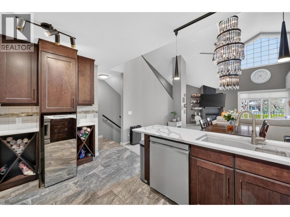 HANDS DOWN THE BEST VALUE FOR NEWER CONSTRUCTION IN SOUTH KELOWNA WITH OUTDOOR POOL! Rebuilt from the foundation up & completed in October 2019, this 2 bdrm plus loft & 3 bath townhouse offers a stylish, upgraded lifestyle in the heart of Guisachan Village boutique mall. With 1,713 sq. ft. & over $100,000 in improvements during the rebuild, this home stands out for its large & bright floorplan with incredible location. The main level features 17 ft. ceilings, high windows, two bdrms, & two full baths, creating a light-filled comfortable living space. The beautifully updated kitchen includes quartz counters, an induction range, smart fridge, wine fridge, & added cabinetry for pantry storage. The primary bdrm offers the perfect retreat with its own deck & ensuite, while the second bdrm fits a queen bed & also has deck access. Beautiful mature trees surround the unit, creating a peaceful setting that doesn’t feel like central city living. Guests will love the 350 sq. ft. loft with wall bed, full bath & private south-facing sun deck. Enjoy above-average outdoor space with three decks plus pool steps away. Features include upgraded lighting, 2025 dishwasher, front door camera & remote heating/cooling. Secure parking & separate storage locker included. This is the turn-key lifestyle you've been seeking in a highly walkable location near beaches, downtown, & steps to pharmacy, liquor store, bakery, butcher, bank, groceries, medical offices & coffee shop—everything within a block! (id:6769)