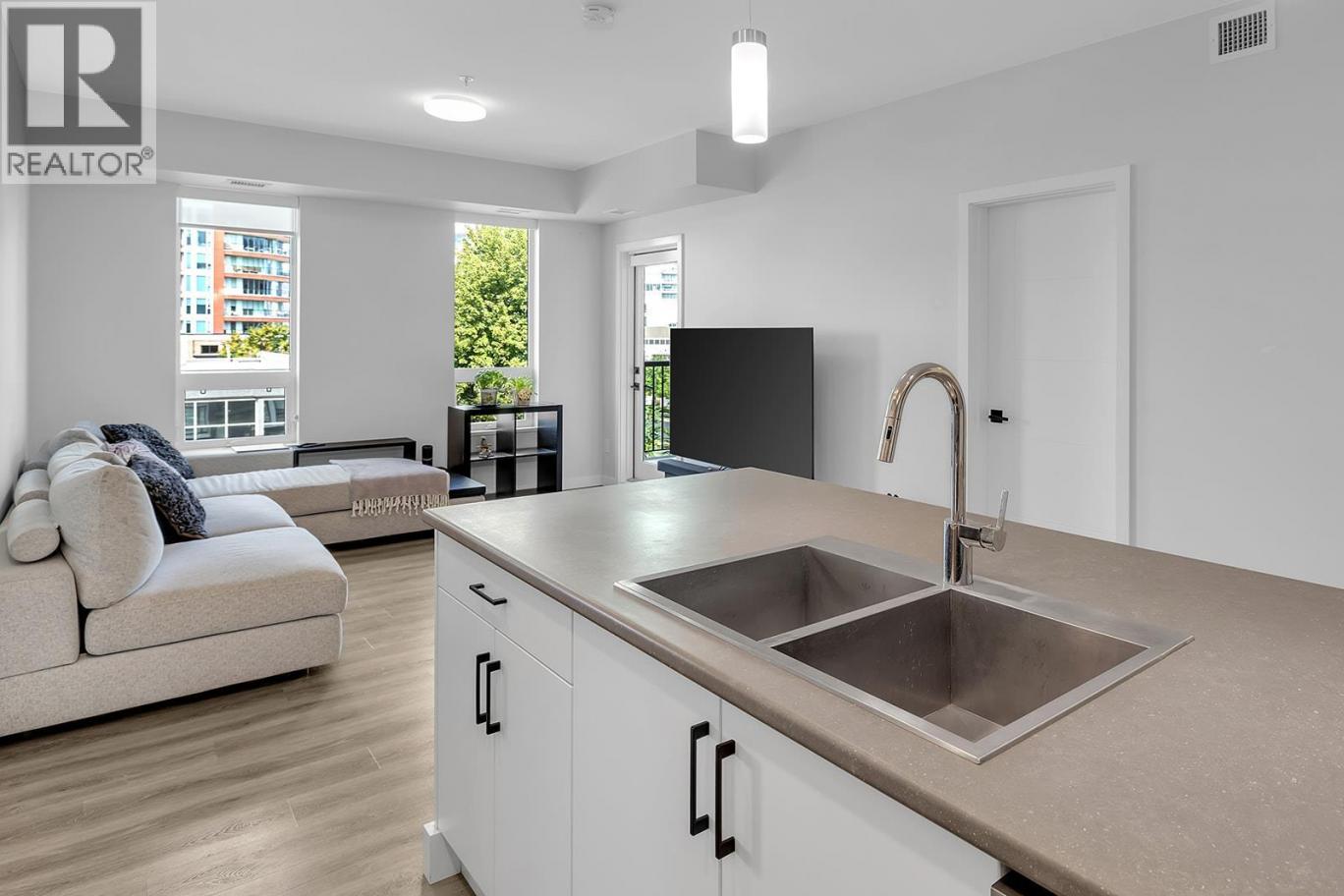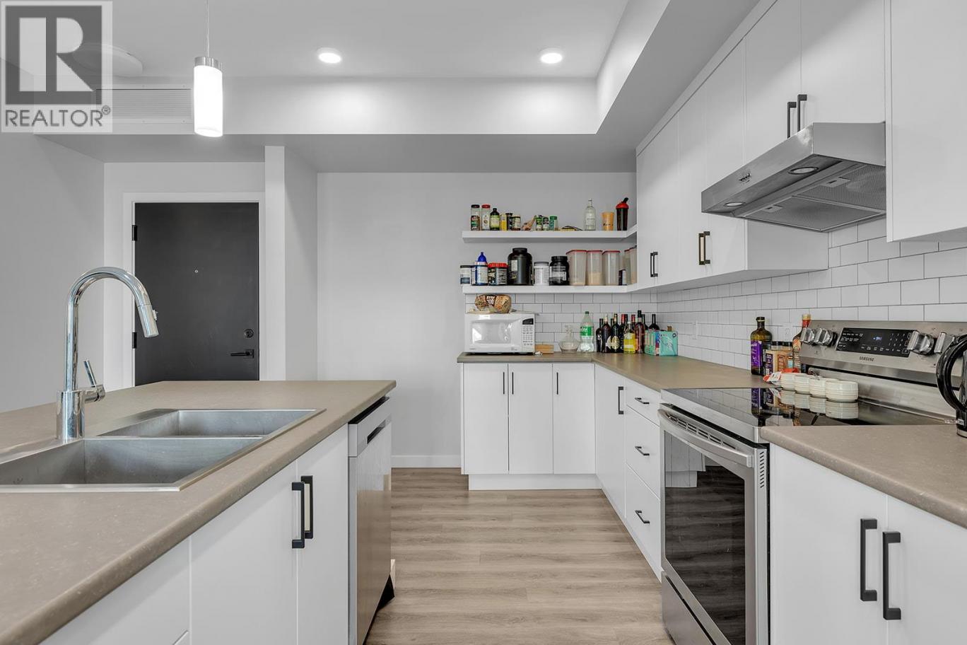 Welcome to this beautifully appointed 2-bed, 2-bath residence in the heart of downtown Kelowna. Thoughtfully designed with a split-bedroom layout, this home offers exceptional privacy and functionality. The bright, open-concept living space is complemented by a modern kitchen featuring stainless steel appliances and a large island with an eating bar, perfect for both everyday living and entertaining. The spacious primary suite includes a generous walk-through closet and a well-appointed 3-piece ensuite, while the second bedroom is ideal for guests, a home office, or additional living space. Step outside to the fully covered deck and take in stunning city and mountain views year-round. Additional highlights include in-unit laundry, central air, BBQ-friendly living, and a secure underground parking stall. Situated in a highly sought-after downtown location, you’re just steps from shopping, restaurants, entertainment, and the waterfront. Enjoy the best of Okanagan living with just a short stroll to Okanagan Lake. Call your favourite agent today to a schedule a viewing of your next home! (id:6769)