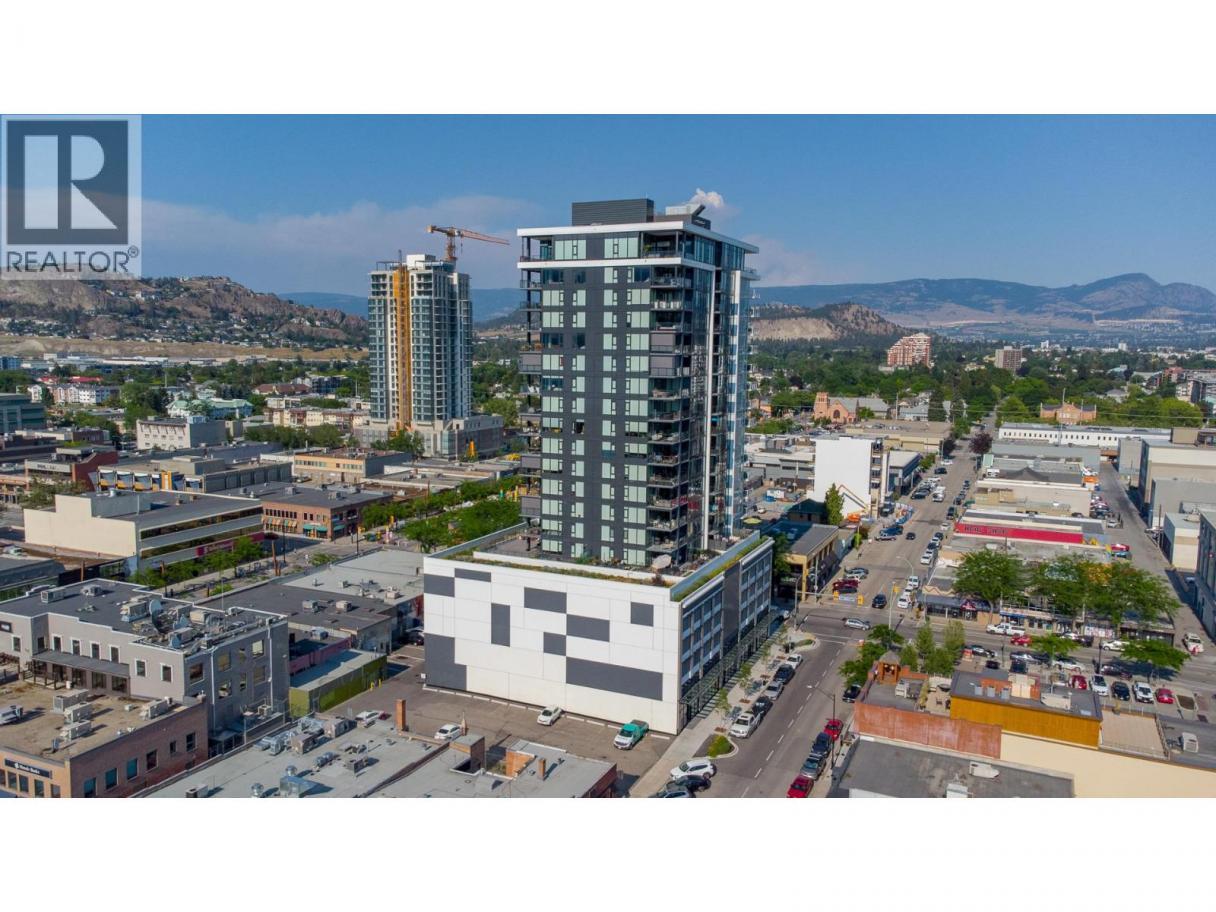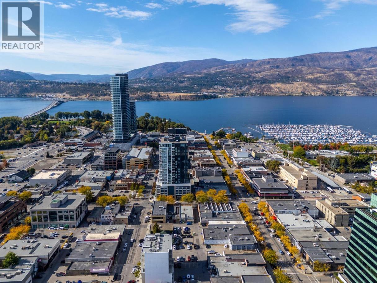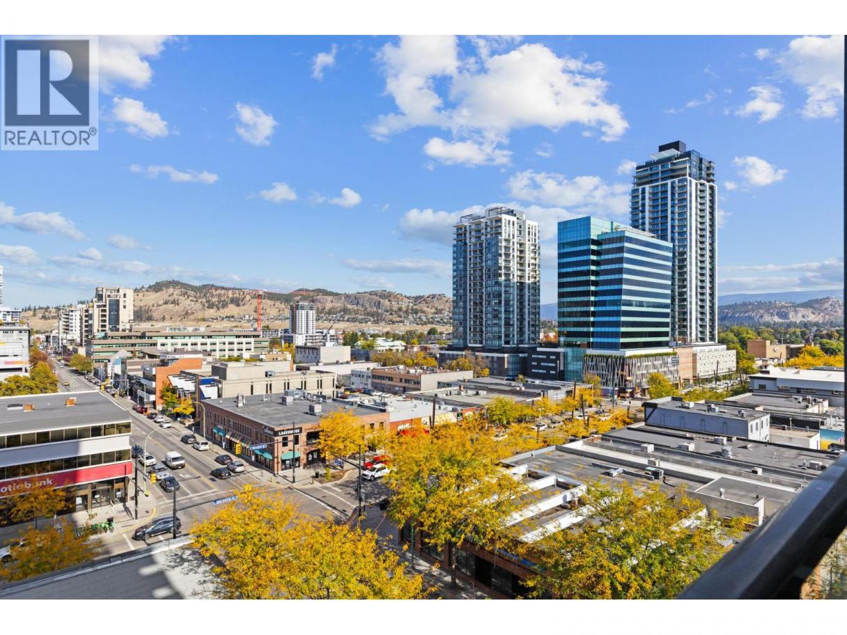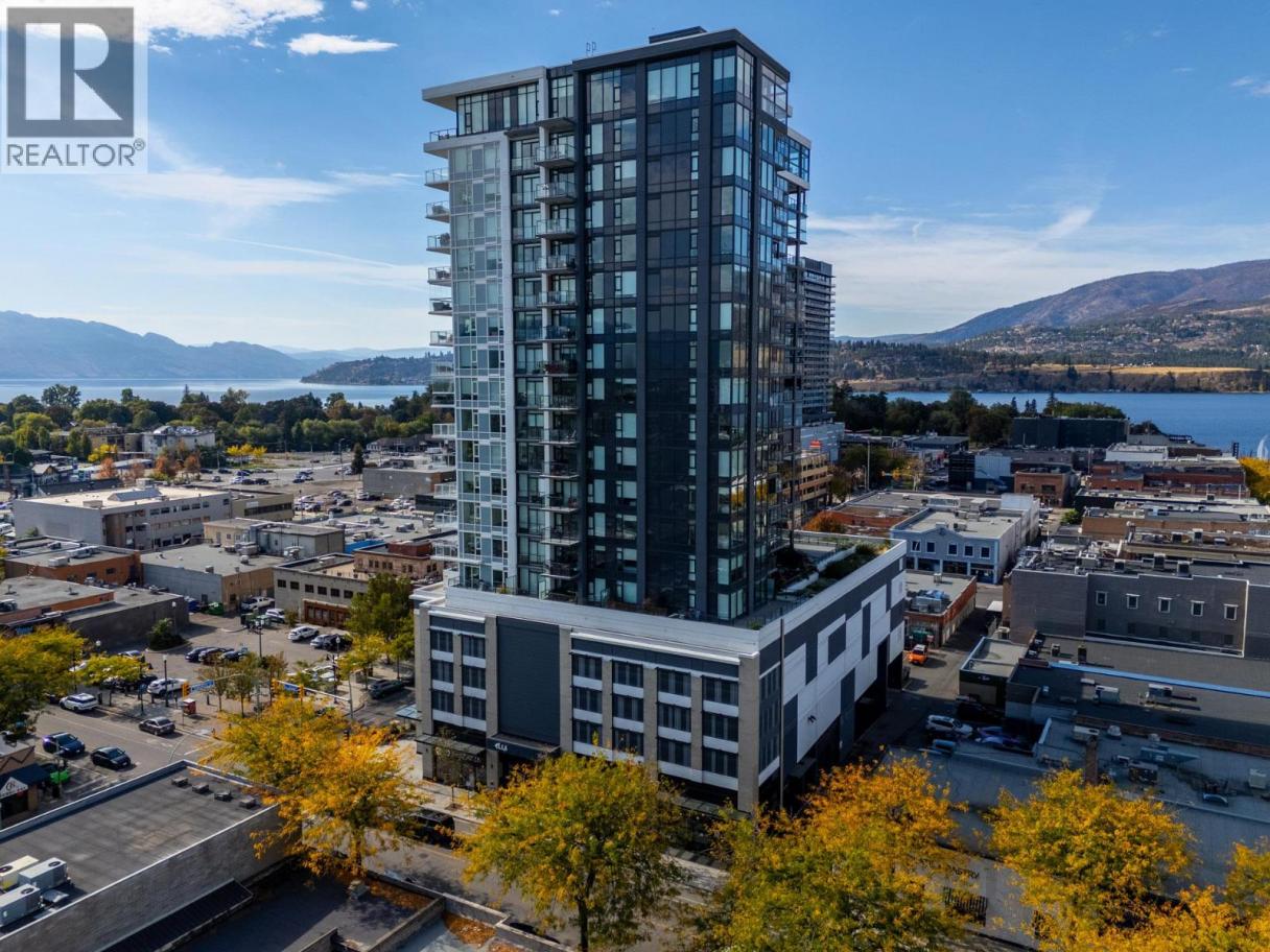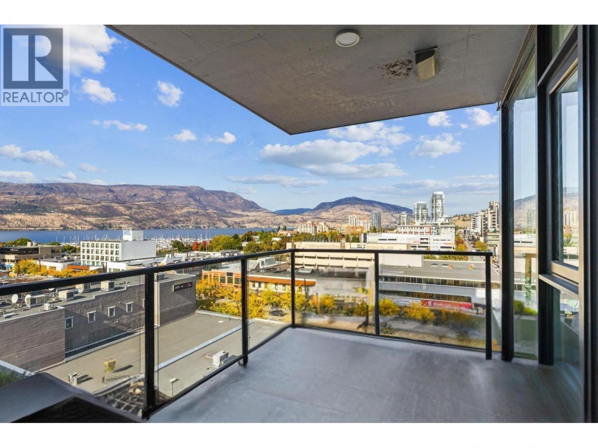 Enjoy spectacular Lake, City and Mountain views from nearly every room in this beautiful 8th floor unit at Ella! This 2 bedroom, 2 bath corner unit is a popular split floor plan featuring floor to ceiling windows, 9 ft. ceilings, and high end finishing throughout. The stylish kitchen has waterfall quartz countertops, stainless steel appliances including a gas cooktop, wall oven and plenty of cabinetry. Relax and unwind on the large covered balcony with natural gas BBQ hookup. Strata fee of $606.91 includes 1 secure underground parking spot (#109), guest parking, common amenities include guest suite, bike storage by rental agreement (if available), 6 EV charging stations in the parkade, and separate pet & bike wash stations. The strata allows for 2 dogs or 2 cats, or one of each, with no size restrictions. Ella is located in the heart of downtown Kelowna offering a truly walkable lifestyle to shopping, restaurants, coffee shops and just a short walk to the shores of Okanagan Lake. Non-smoking building. You'll love living here! (id:6769)
