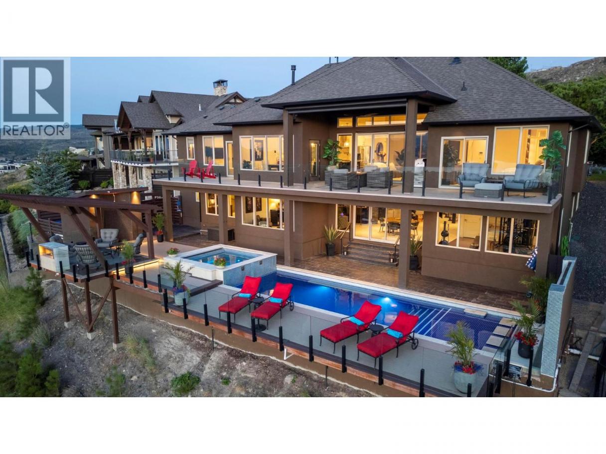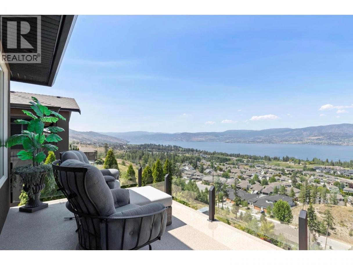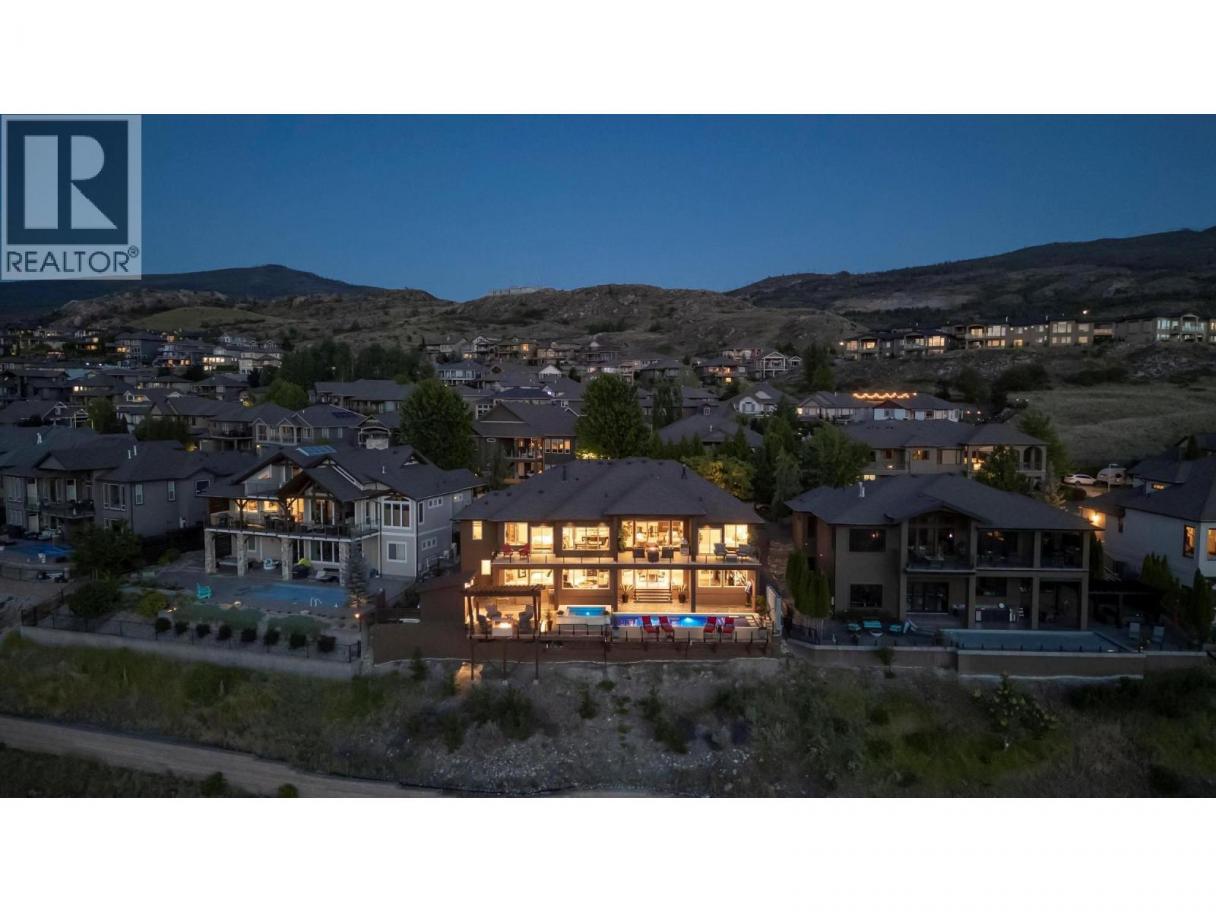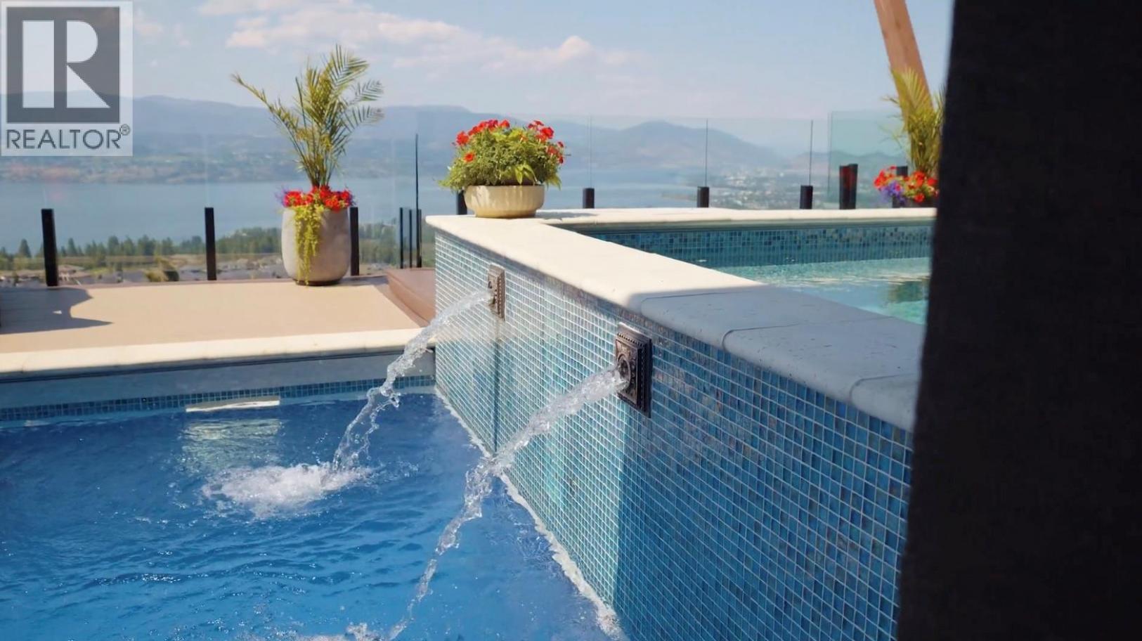 Perched in the prestigious Upper Mission this exceptional luxury residence showcases breathtaking panoramic views of Okanagan Lake, the city, and surrounding mountains. Offering over 5,100 sq.ft. of curated living space, this four-bedroom, five-bathroom residence seamlessly blends technology and lifestyle. Entry through the stunning oversized Walnut pivot door leads to the main level, featuring soaring coffered ceilings, rich hardwood flooring, and expansive windows that frame stunning views and lead to a deck spanning the entire main level. The gourmet kitchen is equipped with new professional appliances, a large island, and 2 walk-in pantries—perfect for both everyday living and entertaining. Another amazing standout feature of this home is a custom built primary closet that will take your breath away. The lower level is designed for recreation and relaxation, complete with; a full wet bar and featuring an amazing; two-tiered theatre room that has been professionally developed. To add to your ultimate comfort, the home is equipped with 2 indoor fireplaces and 3 steam showers, one in each of the ensuites. Outdoors, the showstopper awaits. The backyard featuring a dramatic cantilevered deck with tiled pool and spa, outdoor pool shower, extended fireplace deck & waterfall wall create a striking architectural focal point that complete the nearly 2000 sf of outdoor living space . For ease of maintenance and storage of pool equipment, there is a fully enclosed equipment room containing a newly upgraded Hayward control system managing the pool, spa, water features & lighting. Extensively updated, this home features new flooring, refreshed interior paint, lighting, water softener system, motorized Hunter Douglas blinds; two motorized Phantom sun screens; new glass panel garage door; epoxy garage floors; hardwired EV charger and a fully integrated security system with cameras. Please inquire for a list of comprehensive upgrades. (id:6769)