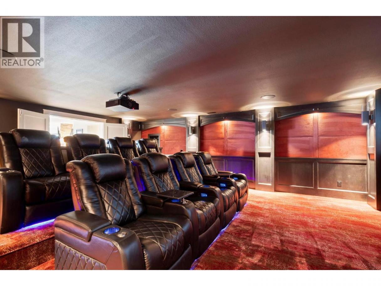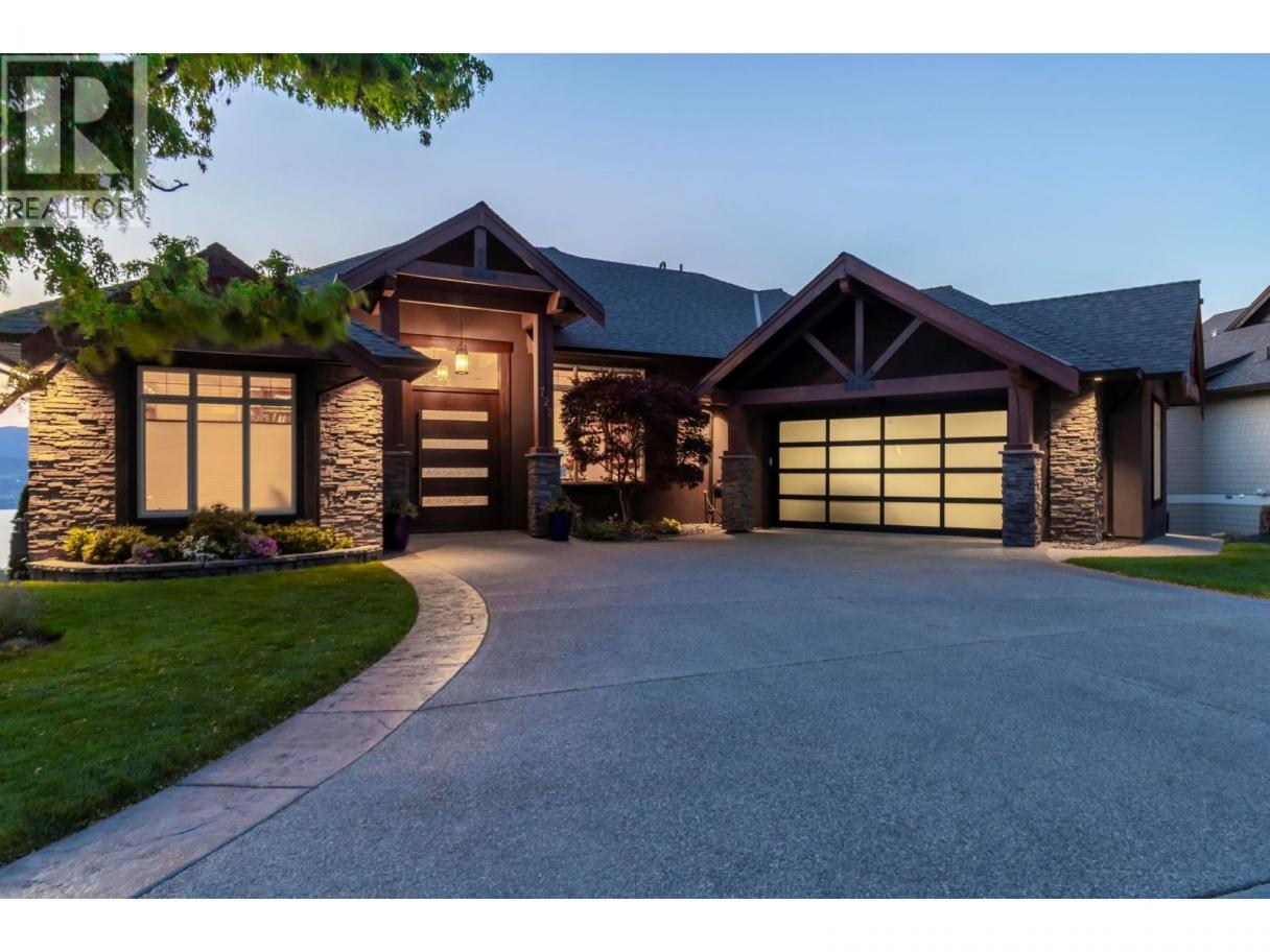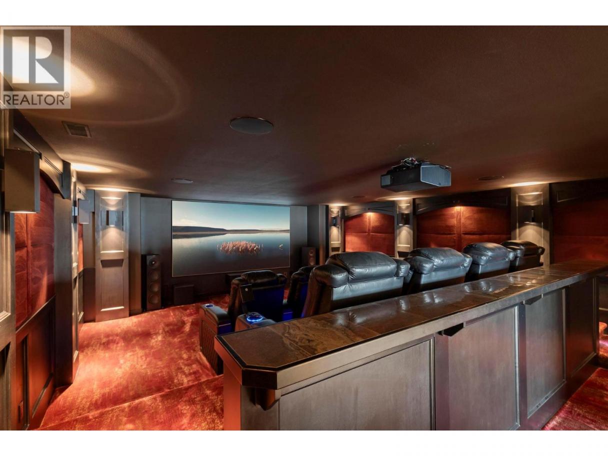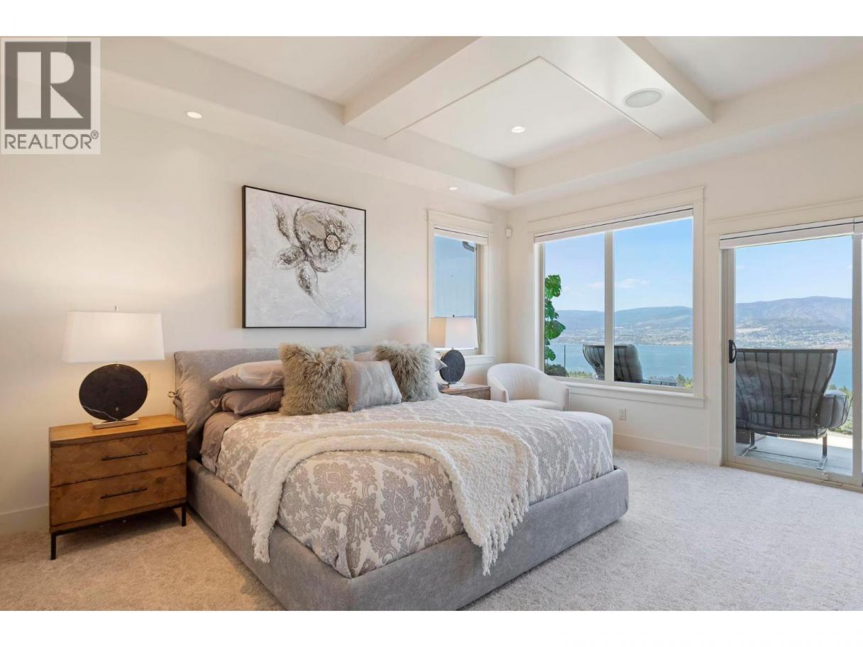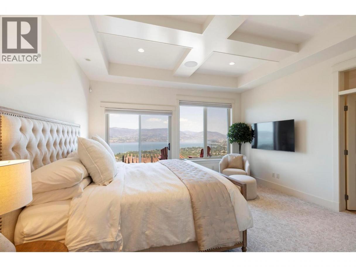Perched in the prestigious Upper Mission this exceptional luxury residence showcases breathtaking panoramic views of Okanagan Lake, the city, and surrounding mountains. Offering over 5,100 sq.ft. of curated living space, this four-bedroom, five-bathroom residence seamlessly blends technology and lifestyle. Entry through the stunning oversized Walnut pivot door leads to the main level, featuring soaring coffered ceilings, rich hardwood flooring, and expansive windows that frame stunning views and lead to a deck spanning the entire main level. The gourmet kitchen is equipped with new professional appliances, a large island, and 2 walk-in pantries—perfect for both everyday living and entertaining. Another amazing standout feature of this home is a custom built primary closet that will take your breath away. The lower level is designed for recreation and relaxation, complete with; a full wet bar and featuring an amazing; two-tiered theatre room that has been professionally developed. To add to your ultimate comfort, the home is equipped with 2 indoor fireplaces and 3 steam showers, one in each of the ensuites. Outdoors, the showstopper awaits. The backyard featuring a dramatic cantilevered deck with tiled pool and spa, outdoor pool shower, extended fireplace deck & waterfall wall create a striking architectural focal point that complete the nearly 2000 sf of outdoor living space . For ease of maintenance and storage of pool equipment, there is a fully enclosed equipment room containing a newly upgraded Hayward control system managing the pool, spa, water features & lighting. Extensively updated, this home features new flooring, refreshed interior paint, lighting, water softener system, motorized Hunter Douglas blinds; two motorized Phantom sun screens; new glass panel garage door; epoxy garage floors; hardwired EV charger and a fully integrated security system with cameras. Please inquire for a list of comprehensive upgrades. (id:6769)
