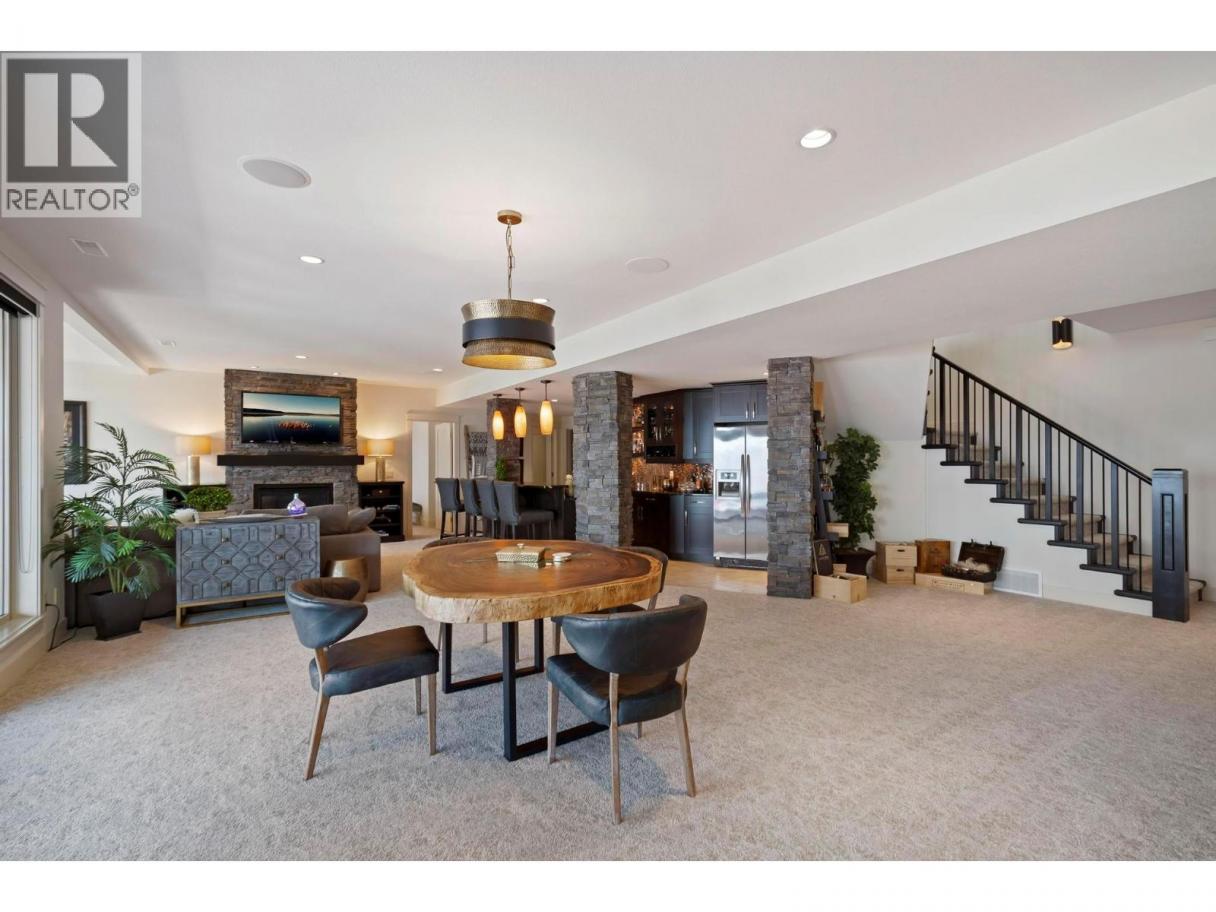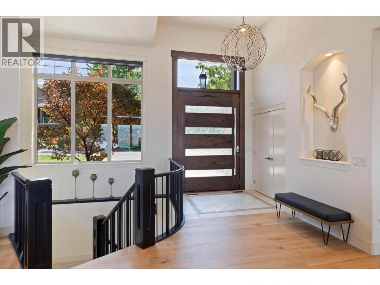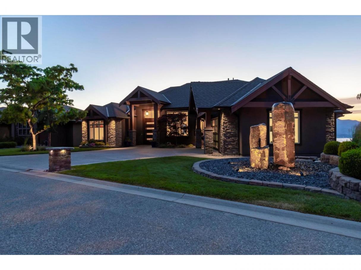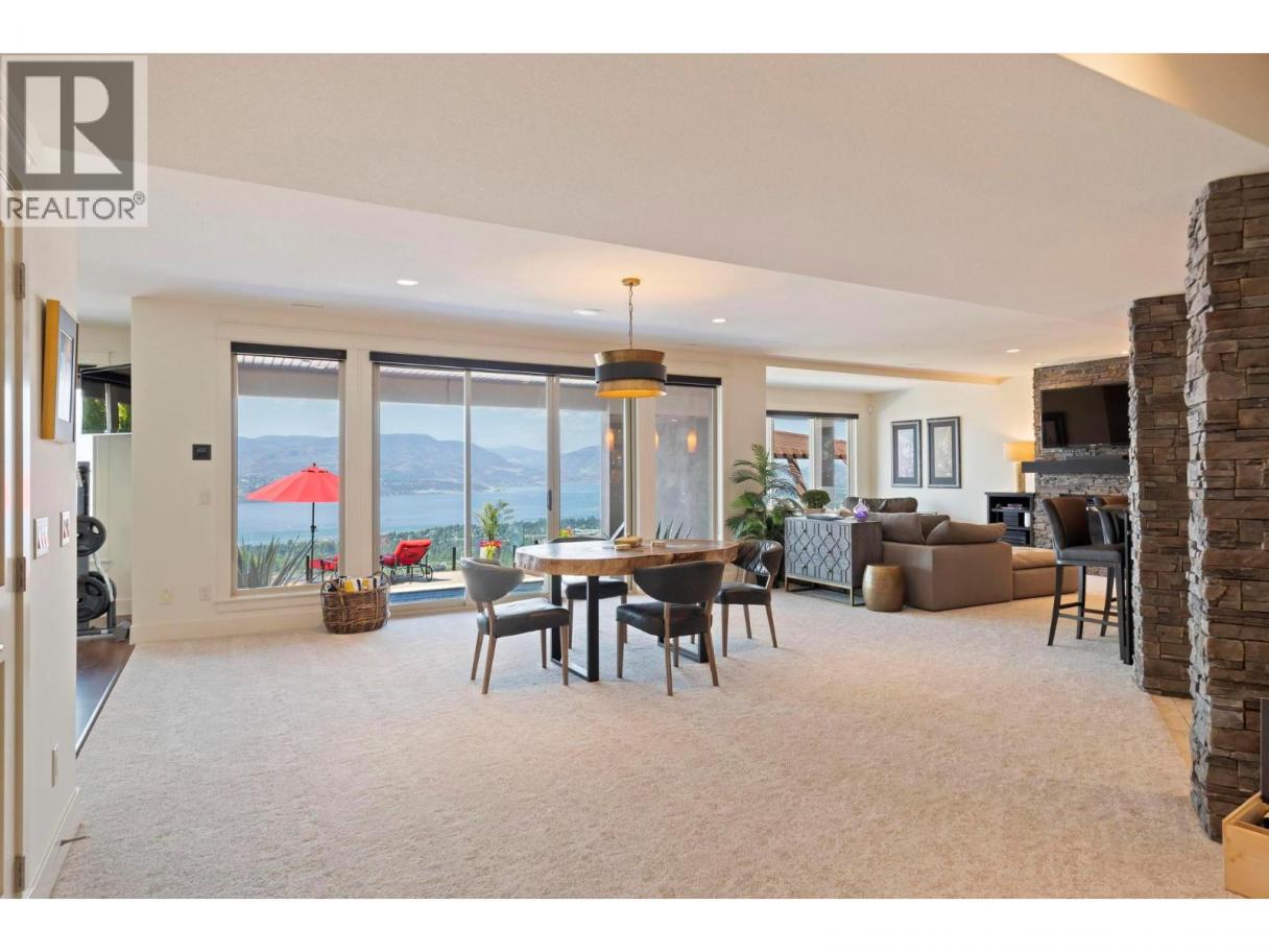 Perched in the prestigious Upper Mission this exceptional luxury residence showcases breathtaking panoramic views of Okanagan Lake, the city, and surrounding mountains. Offering over 5,100 sq.ft. of curated living space, this four-bedroom, five-bathroom residence seamlessly blends technology and lifestyle. Entry through the stunning oversized Walnut pivot door leads to the main level, featuring soaring coffered ceilings, rich hardwood flooring, and expansive windows that frame stunning views and lead to a deck spanning the entire main level. The gourmet kitchen is equipped with new professional appliances, a large island, and 2 walk-in pantries—perfect for both everyday living and entertaining. Another amazing standout feature of this home is a custom built primary closet that will take your breath away. The lower level is designed for recreation and relaxation, complete with; a full wet bar and featuring an amazing; two-tiered theatre room that has been professionally developed. To add to your ultimate comfort, the home is equipped with 2 indoor fireplaces and 3 steam showers, one in each of the ensuites. Outdoors, the showstopper awaits. The backyard featuring a dramatic cantilevered deck with tiled pool and spa, outdoor pool shower, extended fireplace deck & waterfall wall create a striking architectural focal point that complete the nearly 2000 sf of outdoor living space . For ease of maintenance and storage of pool equipment, there is a fully enclosed equipment room containing a newly upgraded Hayward control system managing the pool, spa, water features & lighting. Extensively updated, this home features new flooring, refreshed interior paint, lighting, water softener system, motorized Hunter Douglas blinds; two motorized Phantom sun screens; new glass panel garage door; epoxy garage floors; hardwired EV charger and a fully integrated security system with cameras. Please inquire for a list of comprehensive upgrades. (id:6769)
