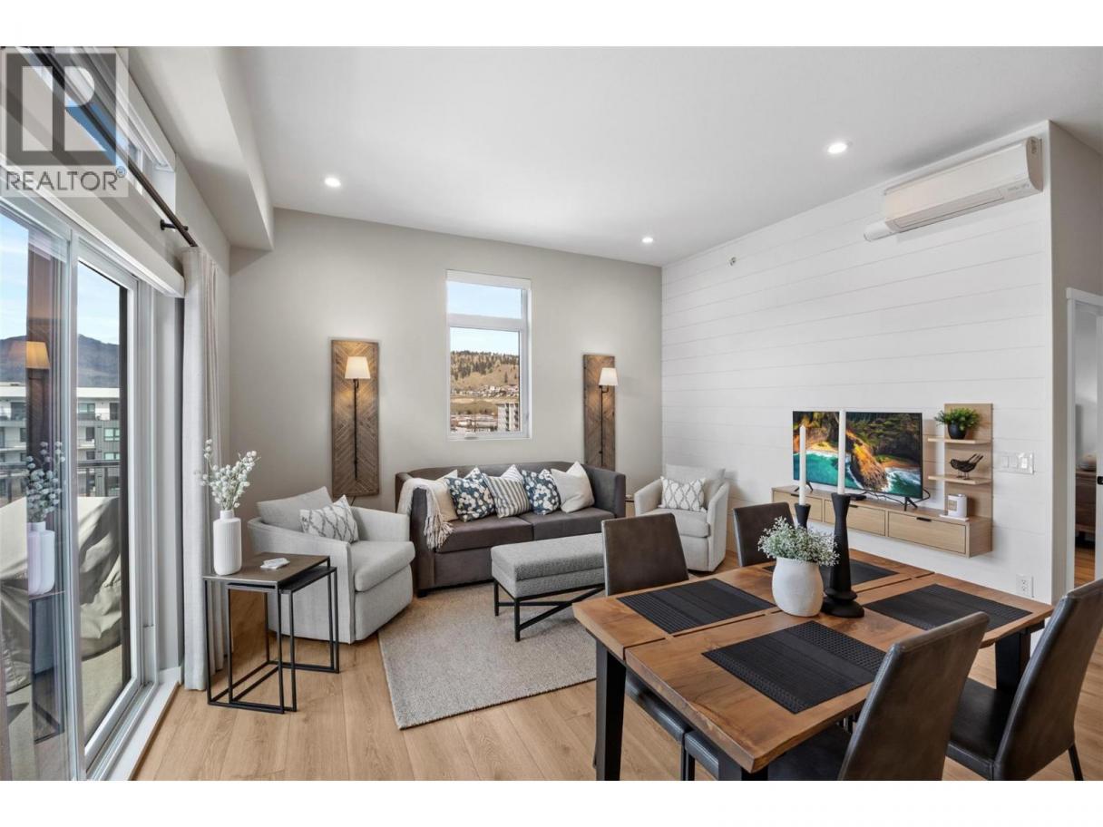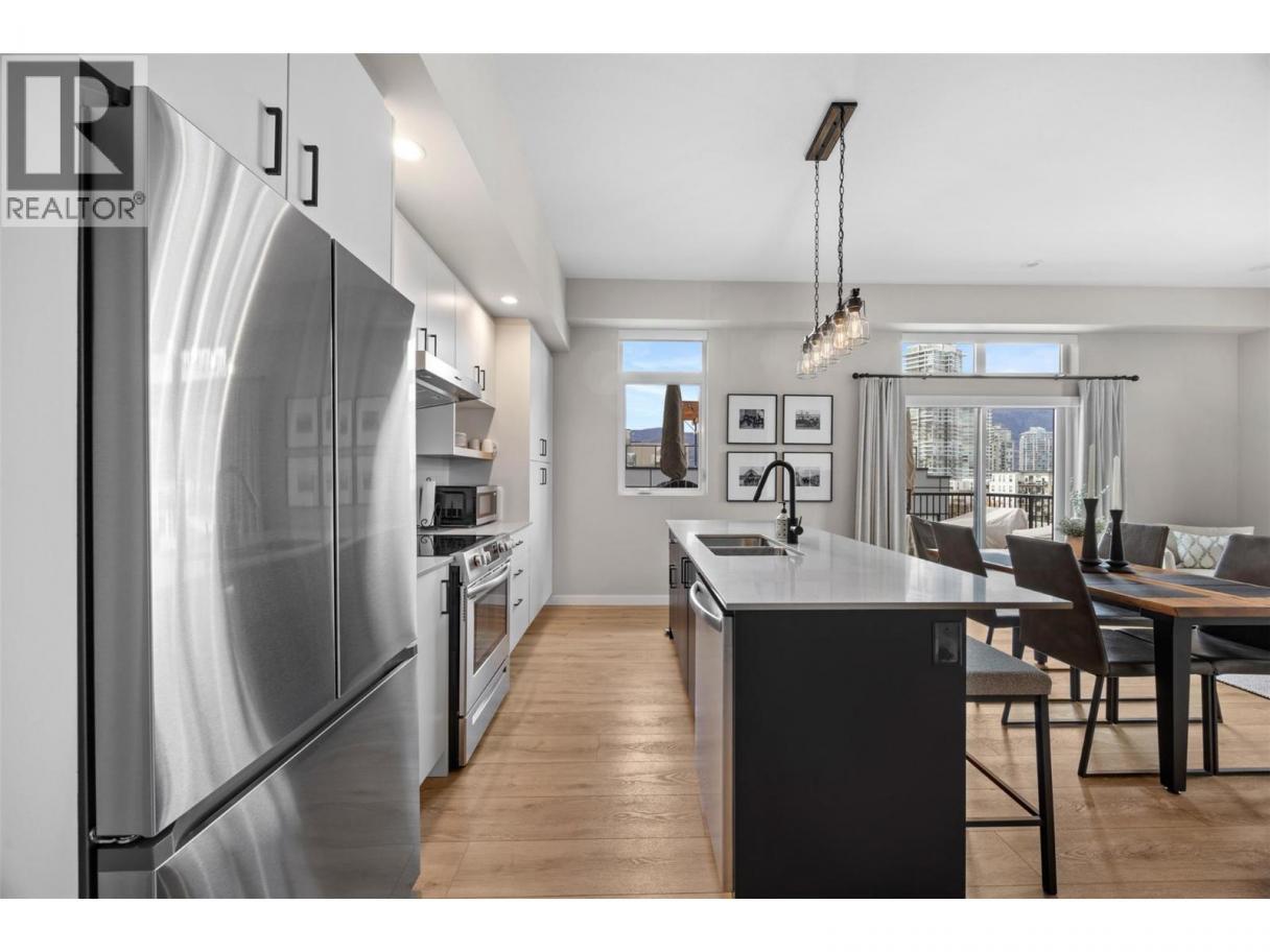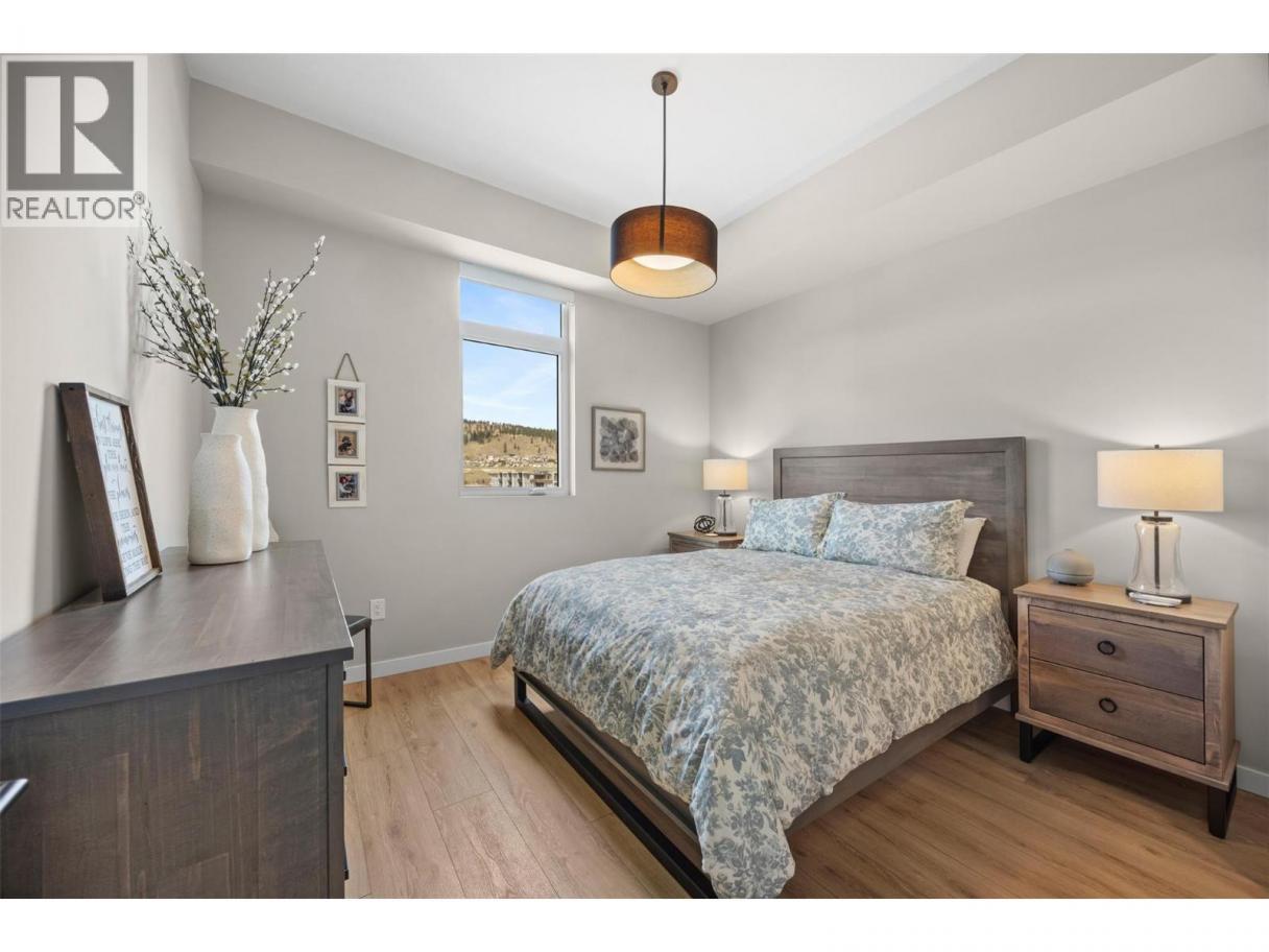 Quite possibly the premier residence at Cawston. Located on the top floor corner, this spacious 2-bedroom, 2-bathroom home offers close to 1,200 sq. ft. of living space with stunning views overlooking the city and Knox Mountain. The oversized corner patio is perfect for Okanagan-style entertaining. With only one neighbouring unit, this home truly feels standalone—exceptionally quiet and private. Owned by the original owners and lightly lived in, it shows like new. Thoughtfully designed with upscale finishes throughout—including wainscoting, wallpaper, and custom details—the interior is sure to impress. A formal entryway complete with a wine fridge sets this condo apart from the rest. Both bedrooms are generously sized to accommodate king beds, and the laundry room offers additional storage space. The home also includes a separate storage locker, and the parking stall is conveniently located near the parkade entrance. This is a must-see for buyers who value space, privacy, and a beautifully maintained home. Cawston presents a great lifestyle with easy access to all amenities. Explore all the local cafes, restaurants, wineries, breweries and shopping that the downtown core has to offer. 1 parking stall and a storage locker. Please note the floor & wall assembly schematic for home sound proofing, not common in wood frame buildings! (id:6769)