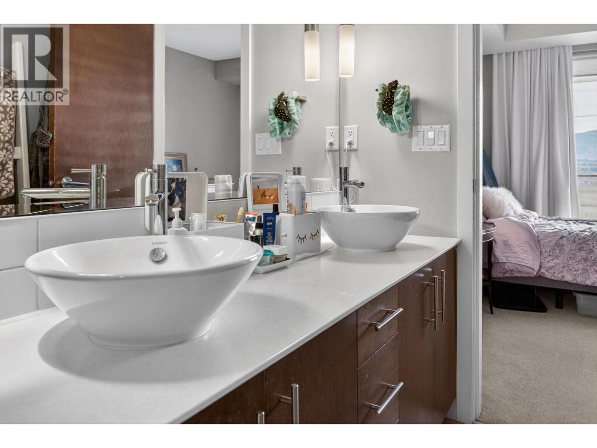 Welcome to INvue - an amenity-rich condo in a highly central location. This well-designed 2-bedroom, 2-bathroom home features a desirable split floor plan offering excellent privacy. The open-concept galley kitchen includes an eating bar and pantry and flows seamlessly into the dining area and living room, where unobstructed mountain views take center stage. The primary bedroom offers a full ensuite and secondary access to the main balcony, while the second bedroom enjoys its own private balcony. Abundant storage is found throughout the unit with generous closet space, complemented by a dedicated laundry room equipped with a brand new LG washer and dryer. Geothermal heating provides efficient, year-round comfort. Residents enjoy an impressive lineup of amenities, including a rooftop heated pool and lounge area, gym, sauna, dog wash station, and car wash. Located within walking distance to Orchard Park Mall, shopping, restaurants, and public transit, this condo delivers exceptional convenience, lifestyle, and views. (id:6769)