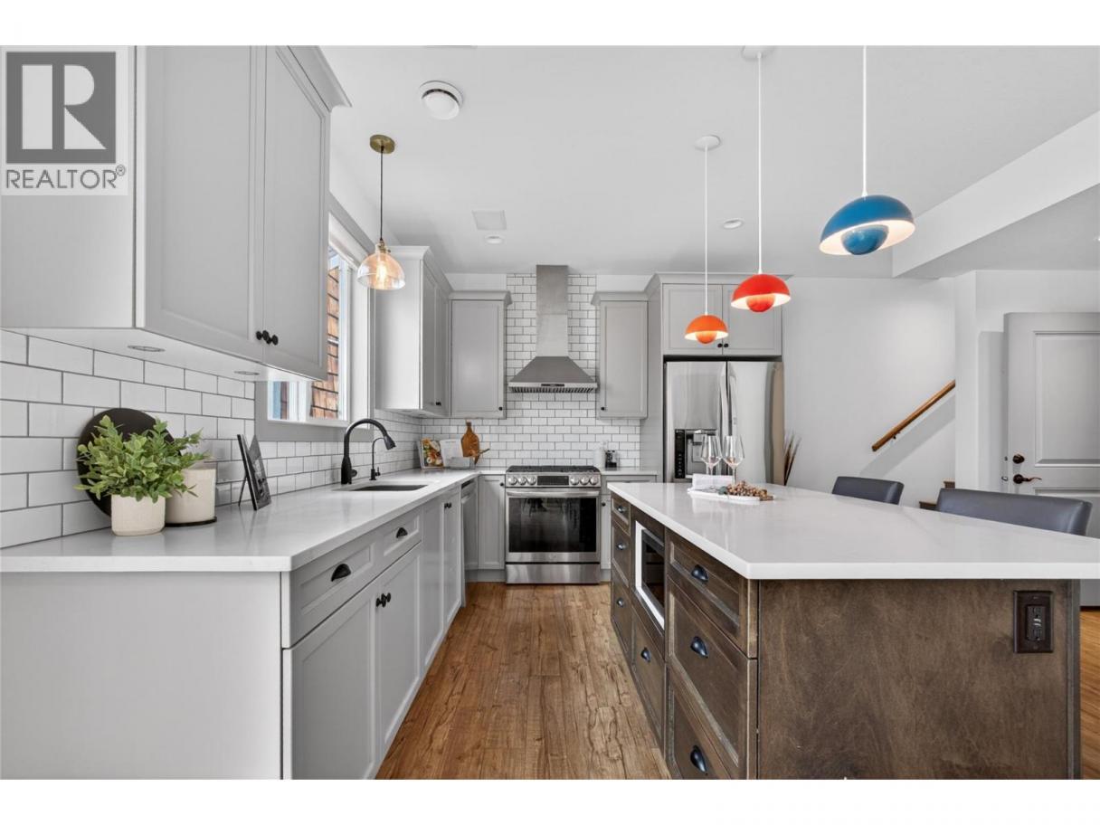 Why settle for a townhouse when you can own a detached home in one of Kelowna’s most walkable and connected neighborhoods? Just minutes to downtown, close to the lake, parks, coffee shops, restaurants, and everyday essentials, this is the kind of location people move for and rarely want to leave. This 3-bedroom, 3-bathroom home offers 1,399 sqft of smart, functional living with all three bedrooms upstairs and comfortable main floor living space below. It’s the perfect fit for professionals, young families, or anyone wanting more privacy and freedom without giving up the urban lifestyle. Outside, the property really shines. You’ve got a fully fenced and private backyard, plus a separate insulated and wired flex space that works perfectly as a home office! Above it all is a massive rooftop patio with pergola and sweeping views over downtown, the valley, and Knox Mountain — an incredible second outdoor living space for entertaining or unwinding. The oversized double garage offers rare downtown practicality with room for vehicles, bikes, skis, paddleboards, and all the extras. This is a unique opportunity to own a detached home at a price point where many buyers are still looking at townhomes or condos. Great location, great privacy, and a home with real personality. (id:6769)