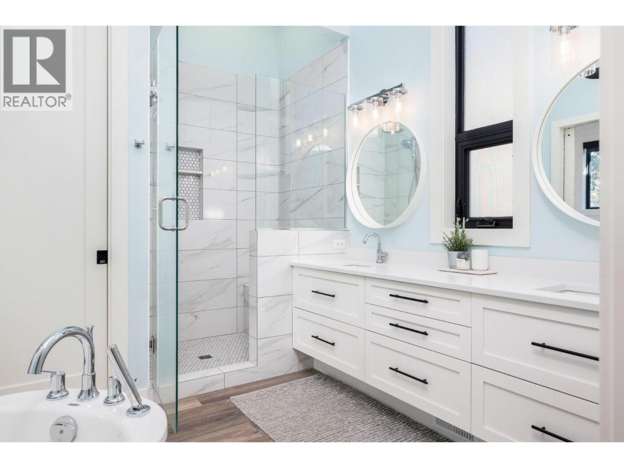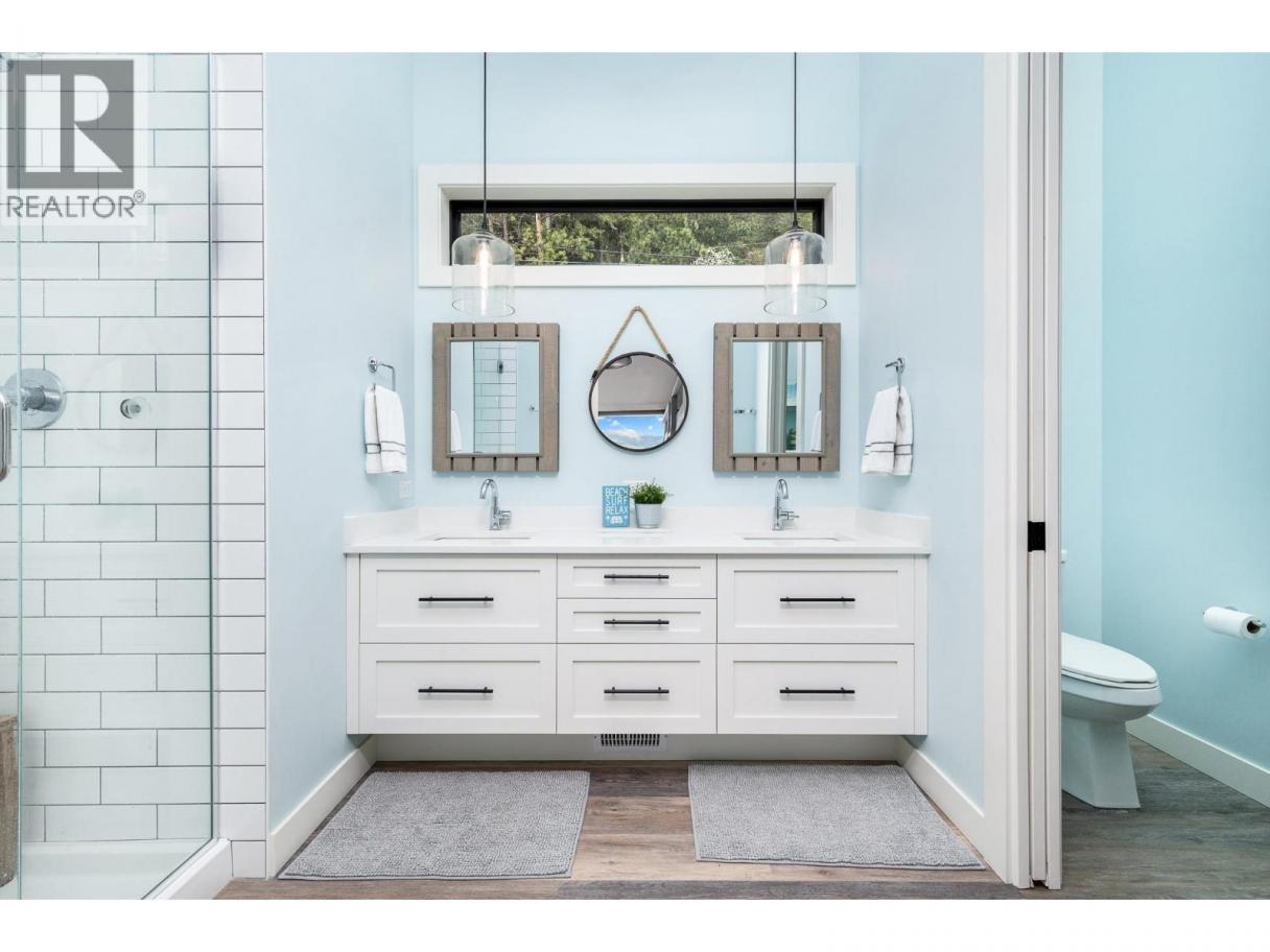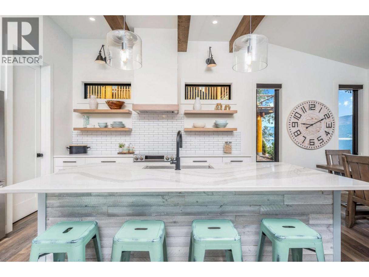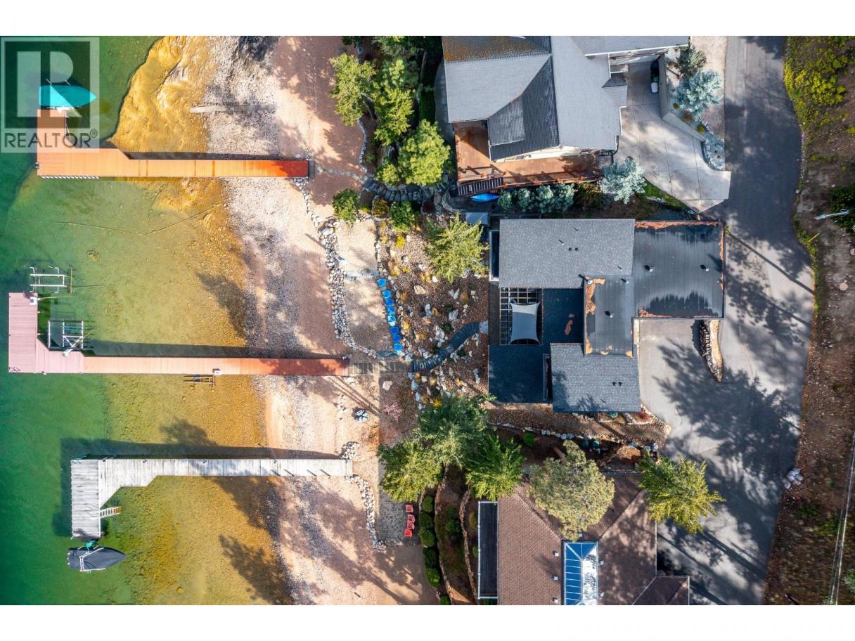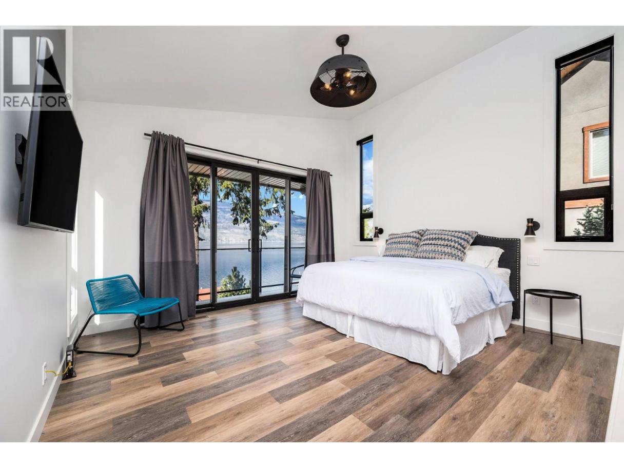 Exceptional Okanagan Lakefront living in this beautifully designed 4 bed, 5 bath home built in 2019. Thoughtfully set up for summer enjoyment and entertaining, this property offers 75 ft of waterfront and a lifestyle built around fabulous Okanagan Lake . The deluxe dock includes steel piles, composite decking, boat lift, and Sea-Doo lifts, making lake days effortless. Dive into the deep refreshing waters, lounge along the shore, or enjoy your private hot tub to unwind after a day on the lake. A spacious outdoor patio anchors the home with seating, firepit, and BBQ space—ideal for hosting family and friends while taking in the views. Inside, the upper level features a stunning primary suite with high ceilings, private lakeview deck, 5-piece ensuite, and walk-in closet. A generous guest room with double bunk beds provides excellent space for children or visitors, with dual sinks in the ensuite for convenience. The lower level offers open-concept living with kitchen and family room, both opening to a covered patio through sliding glass doors. Two additional bedrooms each feature their own ensuite, offering comfort and privacy throughout. Elevated for optimal views yet just steps to the water, this home blends luxury and lakeside ease. Located in the gated Cliffshore Estates community just south of Vernon, it offers privacy and tranquility while remaining minutes to amenities like Ellison Provincial park and miles of bike trails. (id:6769)