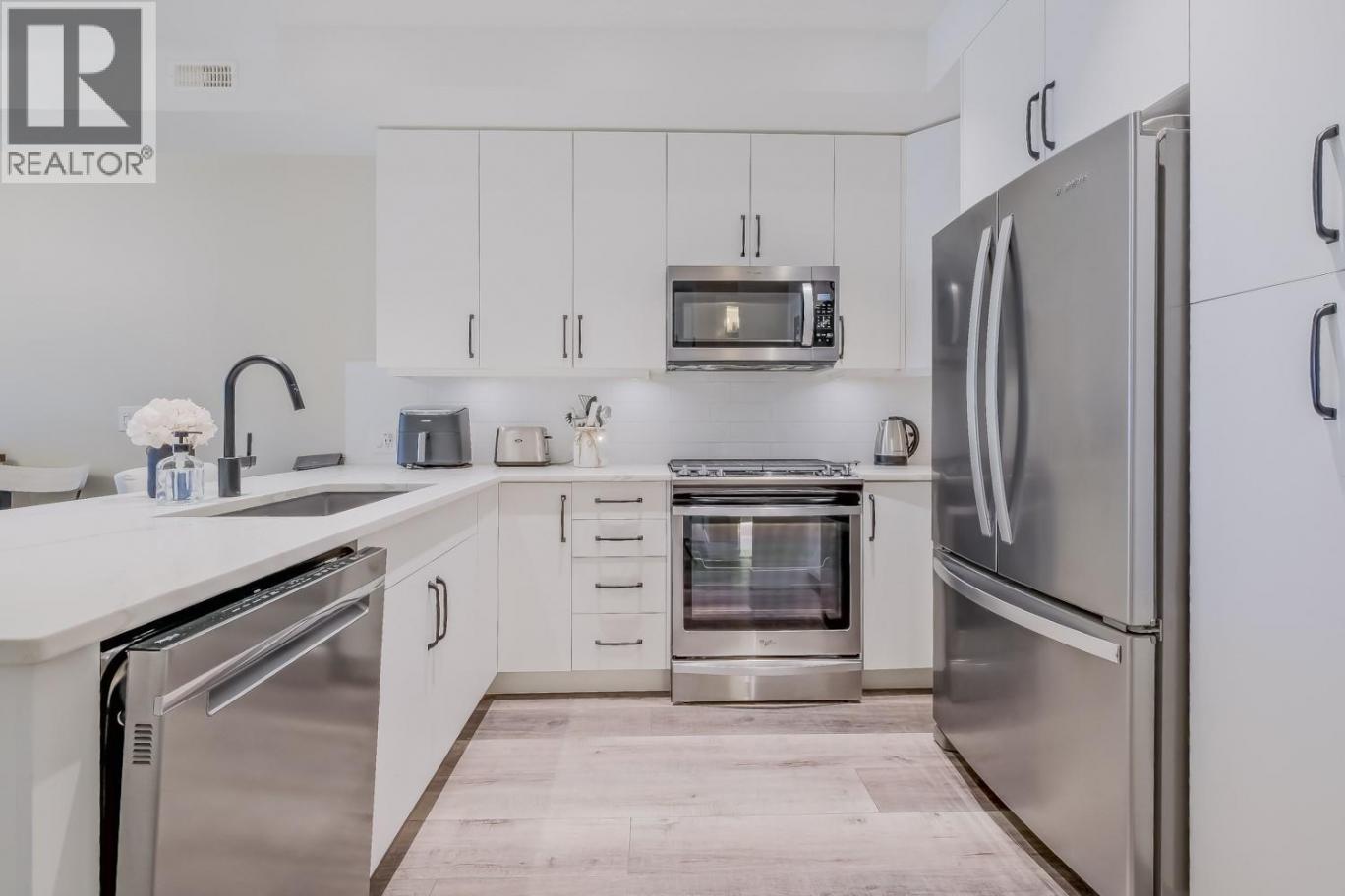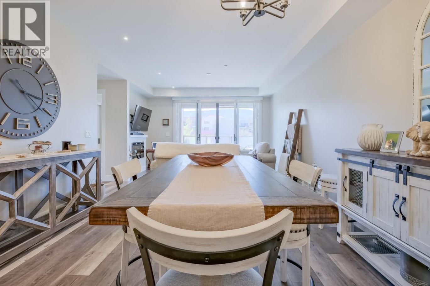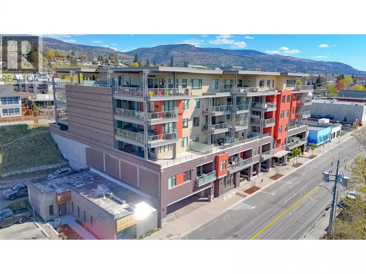 Welcome to Ellis One—an executive residence perfectly positioned just steps from Okanagan Beach, vibrant restaurants, boutique shops, and beautiful parks. Experience the best of the Okanagan lifestyle with true downtown living, where you can leave the car behind and stroll to your favorite coffee shops, breweries, and local markets and festivals. This spacious 2-bedroom plus den, 2-bathroom condo captures everything people love about Okanagan living—convenience, comfort, and style. The modern kitchen features elegant quartz countertops, stainless steel appliances, and a gas stove, seamlessly connecting to the inviting living area. The living room is highlighted by a cozy electric fireplace and opens effortlessly onto a covered deck—perfect for outdoor dining, relaxing evenings, and taking in stunning mountain views with a glass of local wine. The primary bedroom offers a luxurious 4-piece ensuite, a generous closet, and a bright, welcoming windows that fills the space with natural light. Additional features include one secure underground parking stall and a storage locker. Pets and long-term rentals are allowed, making this an excellent option for both homeowners and investors. Don’t miss your opportunity to own a piece of the Okanagan lifestyle! (id:6769)