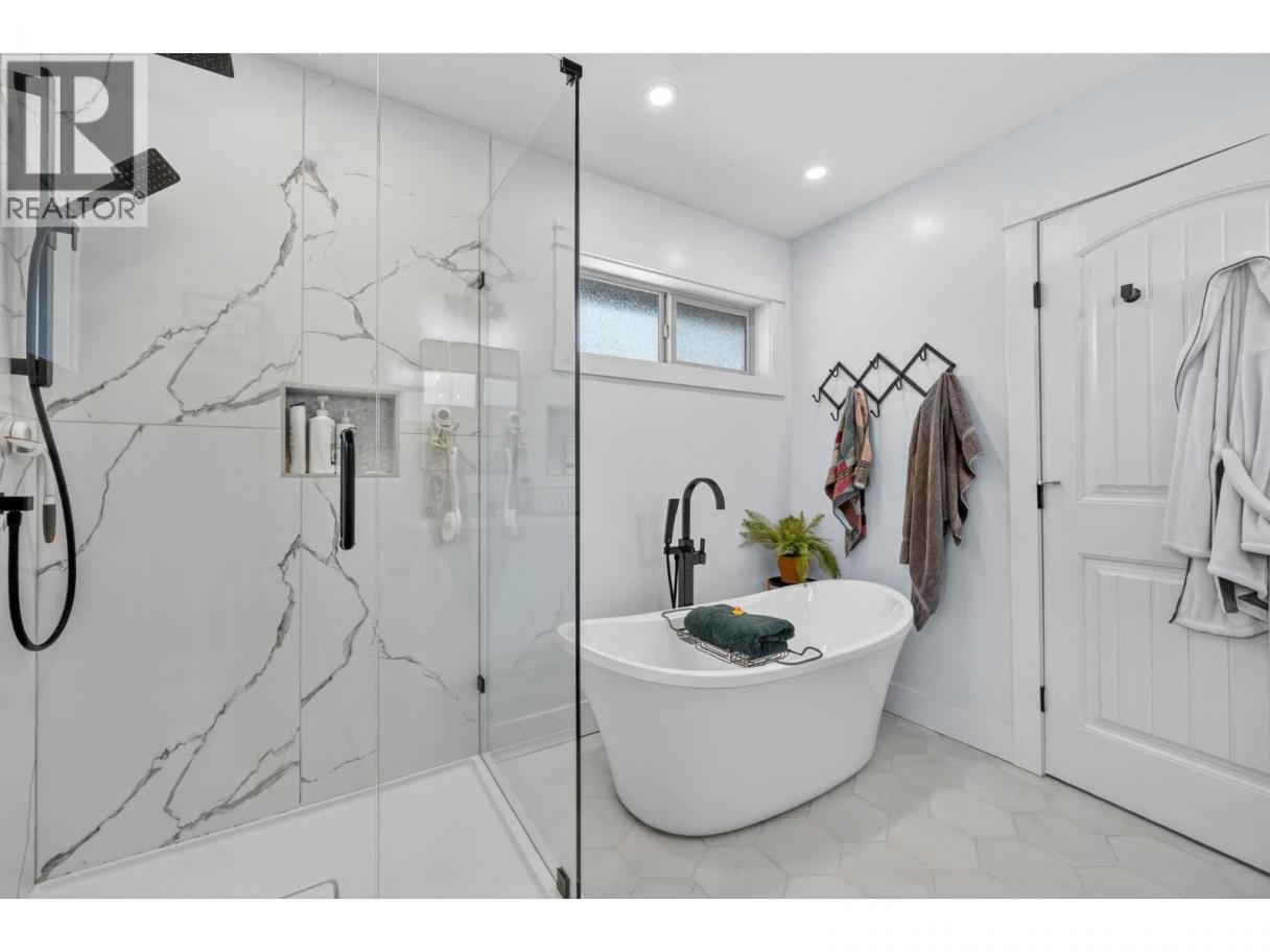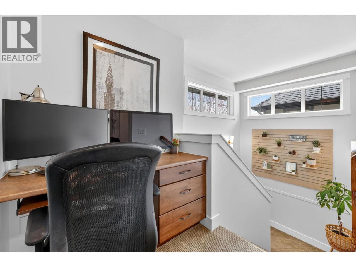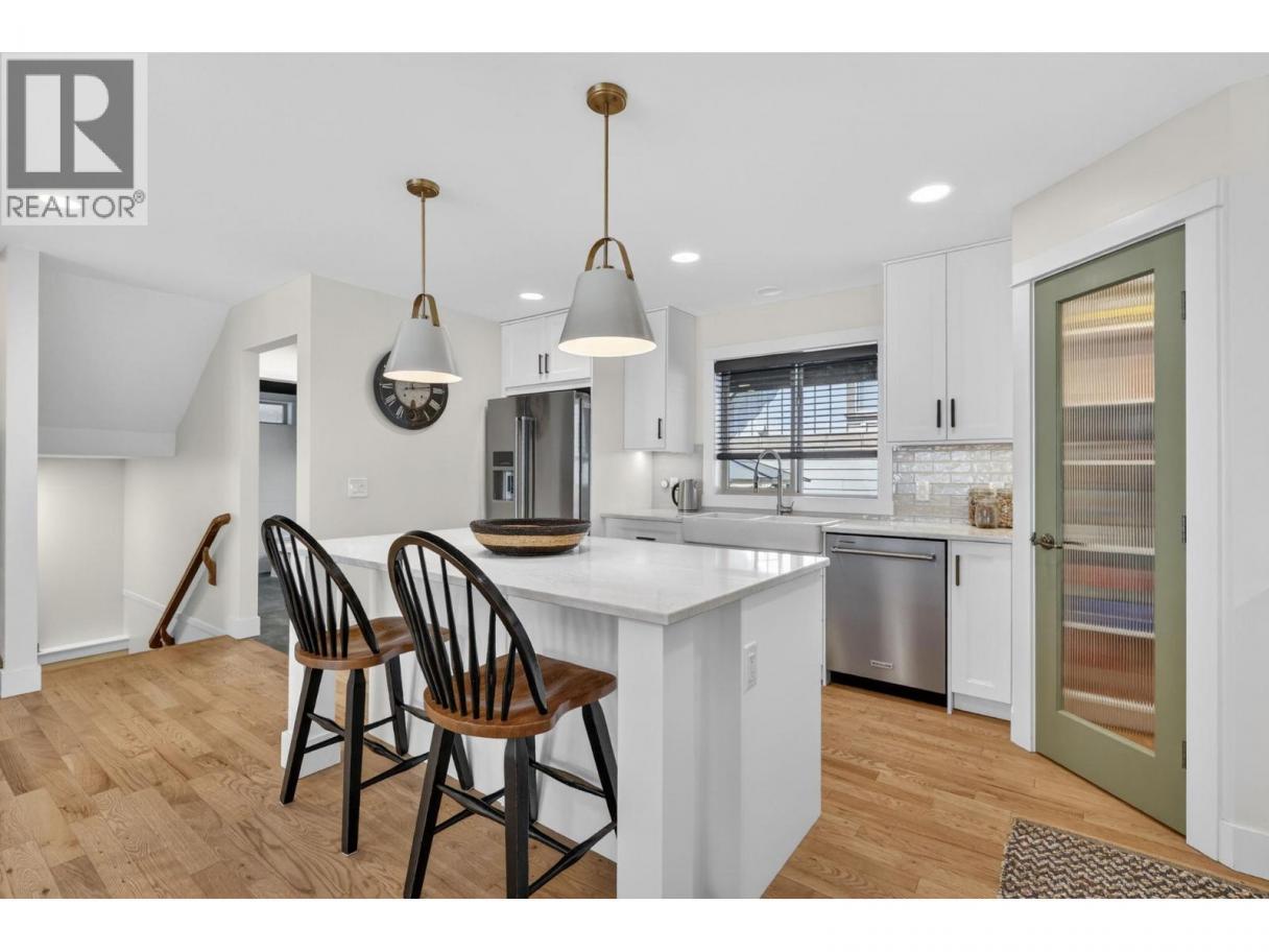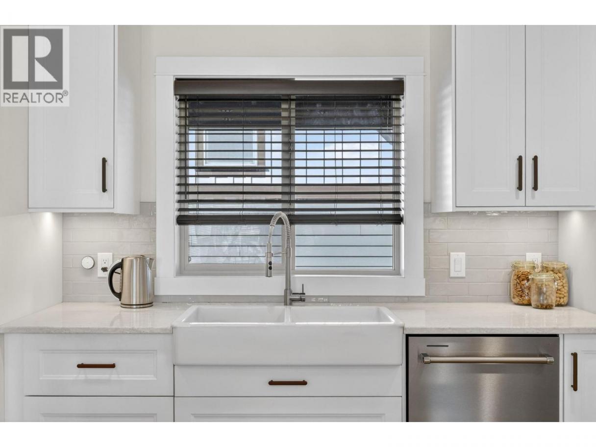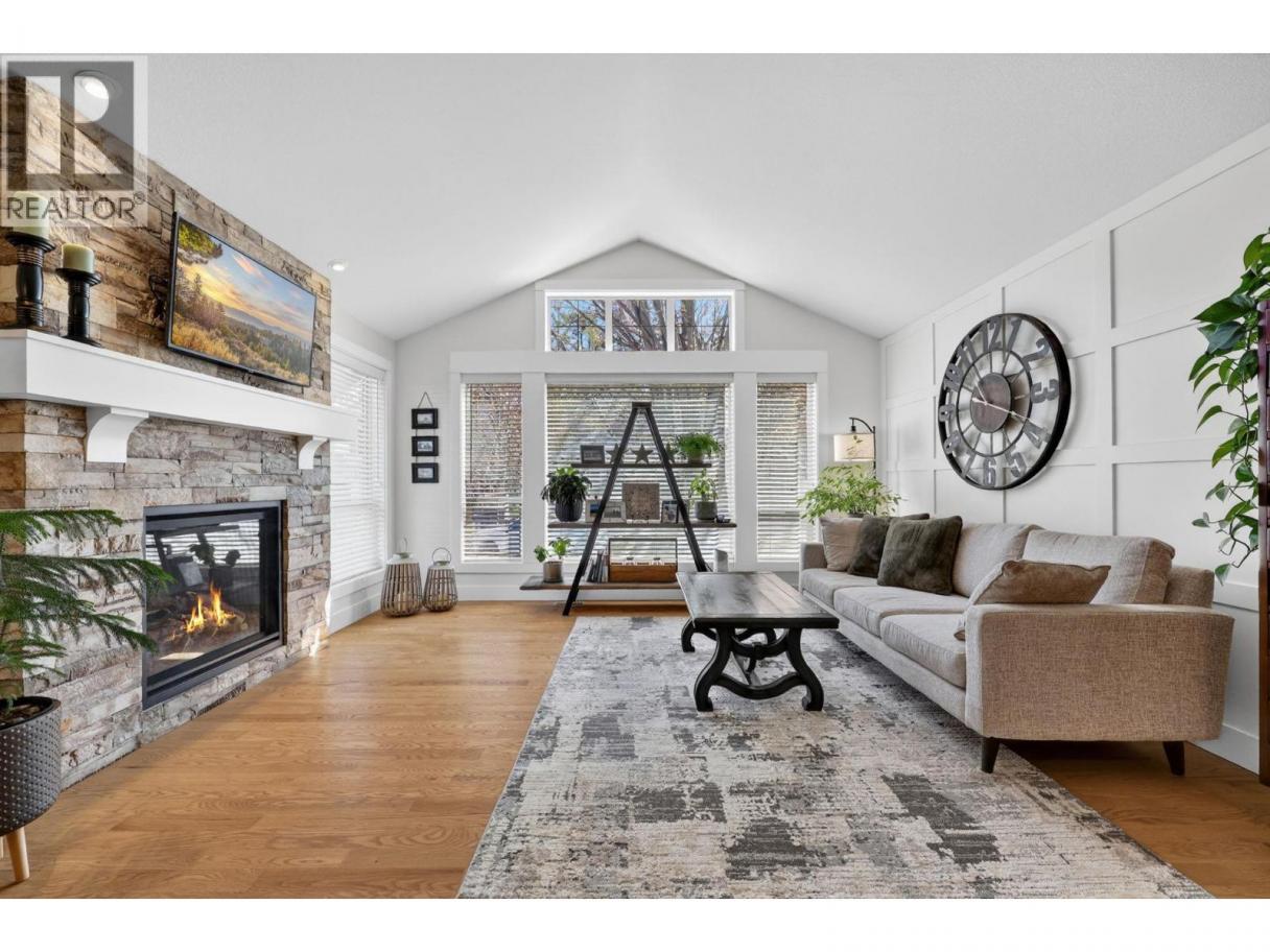 Versatile Living with Income Potential! Welcome to this beautifully maintained property in a quiet cul-de-sac setting, featuring a 3-bedroom, 4-bath main home plus a fully self-contained 1-bedroom (483 sqft) carriage house above the garage. The main level offers a bright, open-concept design ideal for entertaining and everyday living, showcasing a newly updated kitchen with stainless appliances complete with gas range, newer hardwood floors, updated fireplace with modern surround, fresh paint, lighting, and window coverings. A functional mudroom with dog wash station adds practical convenience for busy households. Second level has 2 bedrooms and 2 full bathrooms, including the Primary Bedroom with walk-in closet and spa-like ensuite with heated tile floors, dual-sink vanity, separate glass shower and soaker tub. The lower level features a spacious family room, an additional large bedroom with walk-in closet, full bathroom, laundry, and ample storage is perfect for guests or growing families. Above the oversized double garage, the carriage home provides a fantastic mortgage helper or private space for extended family, complete with a full kitchen, laundry, generous living area, bedroom & full bathroom. Ideally located just minutes to schools, UBCO, the airport, and downtown, this property is tucked into a park-like setting with nearby walking and biking trails and a tranquil pond. A rare combination of flexibility, location, and lifestyle. This one checks all the boxes. (id:6769)