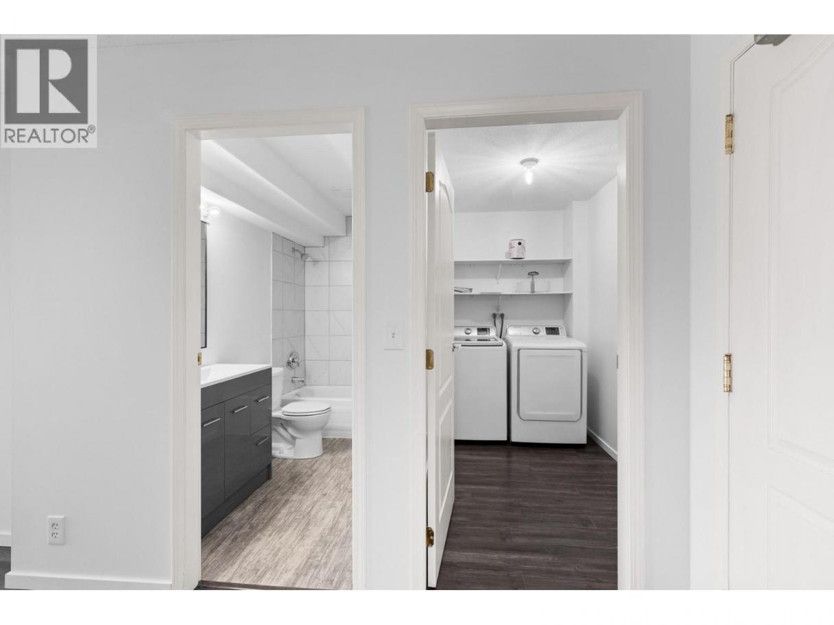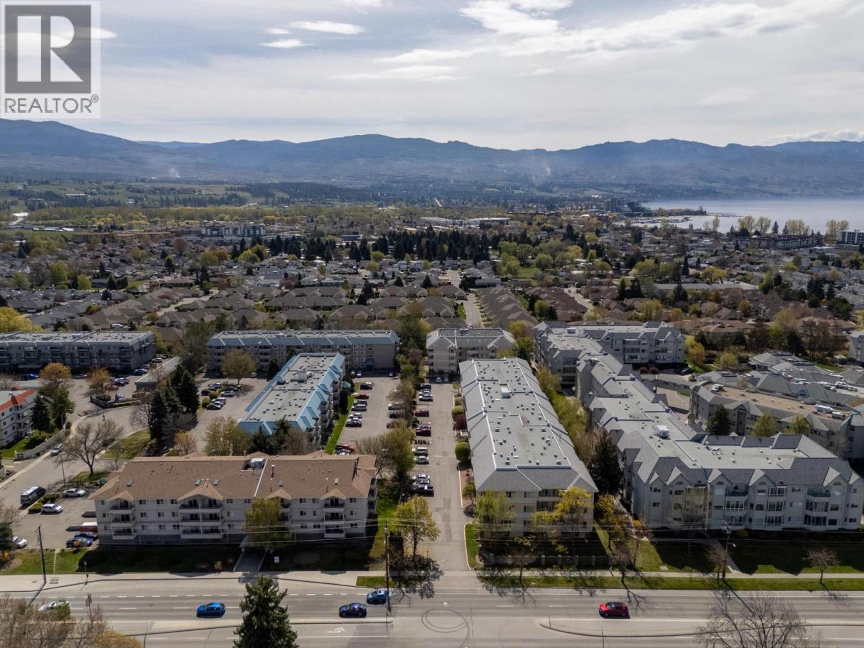 OPEN HOUSE SATURDAY 11am-1pm The Oxford – This 2 bedroom, 2 bath condo is ideally situated on a quiet back corner of the building, overlooking the creek and green space. Enjoy peaceful surroundings with mountain views, plenty of natural light, and a front-row seat to local birdlife. Offering over 1,200 sq. ft., this is a rare opportunity to own a spacious condo in a highly walkable location—just steps to the college, Mission Creek shopping, and Okanagan Lake. The unit has been freshly painted and had minor repairs completed, providing a clean and functional starting point. There’s also excellent potential here for future updates, including the option to redesign the kitchen and add value over time. (Kitchen needs updating and has been priced accordingly) Strata fees are $432.58/month and include one parking stall and one storage locker. Pet restrictions allow for one cat or two birds (no dogs). (id:6769)