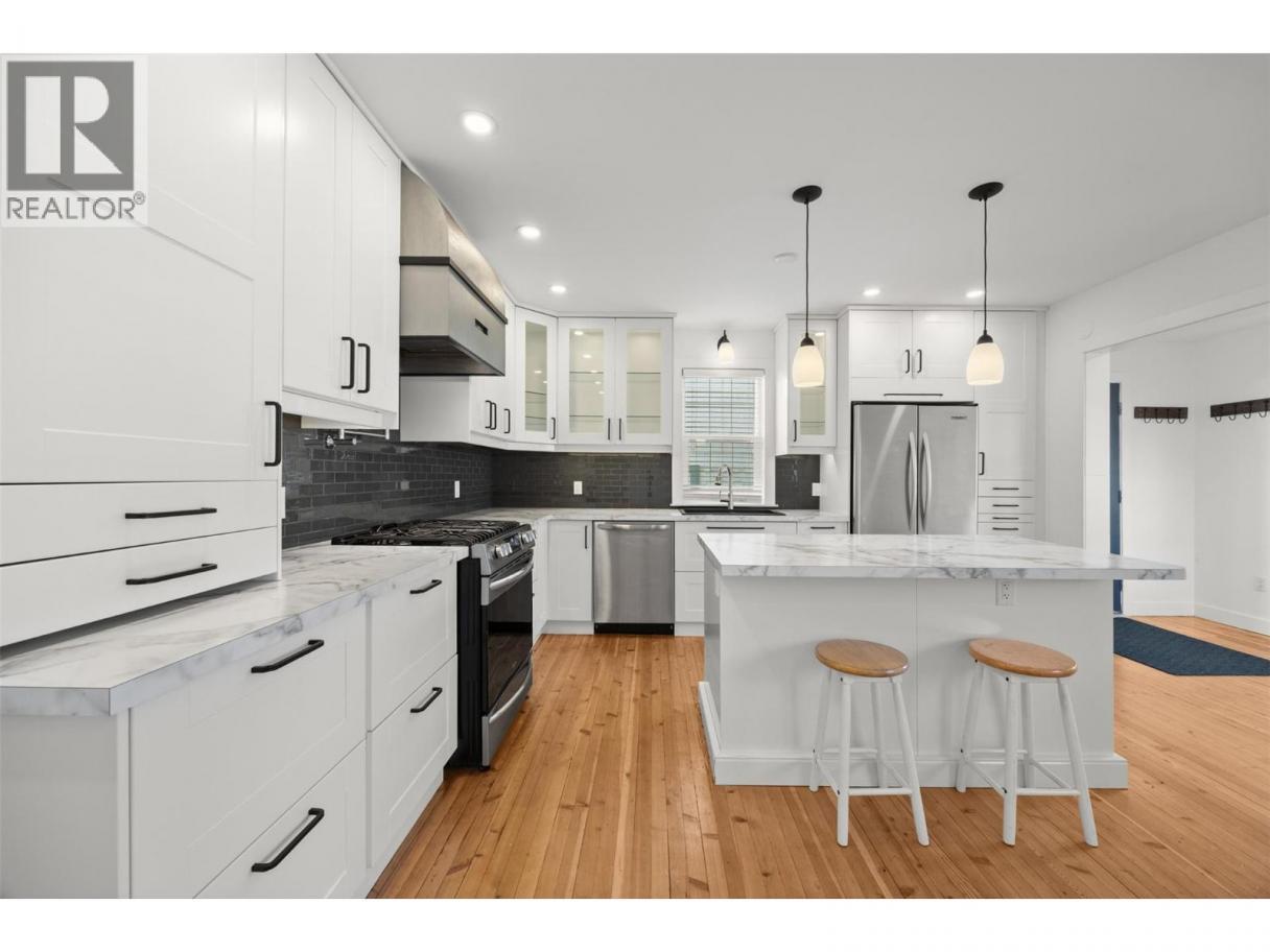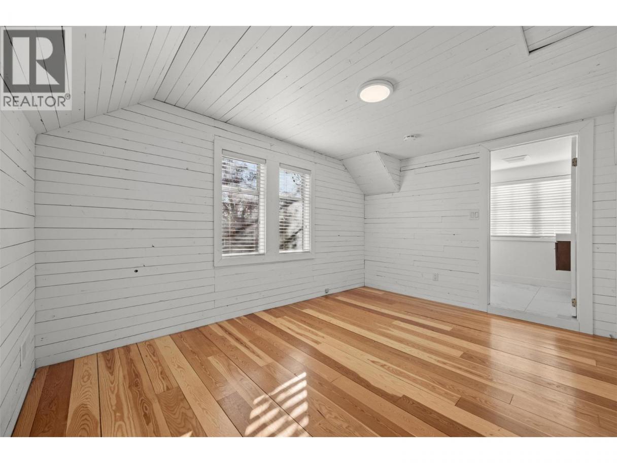 Discover this bright and inviting 4-bedroom, 2-bathroom home located in the heart of the highly sought-after Kelowna South neighborhood. Filled with character and modern updates, this south-facing property is situated on a RU6 zoned lot with carriage house potential. The home welcomes you through a bright foyer leading into a spacious living room. The modernized, airy kitchen features a door opening directly to the backyard. The main floor includes two well-sized bedrooms, one of which features french doors leading to the deck. Upstairs, you will find the primary bedroom, an additional bedroom, and a bathroom. The basement offers a finished den/flex room, laudry, while the remaining unfinished space provides a versatile area for a workshop or games room. You can enjoy entertaining outdoors on the large deck and appreciate maintenance-free living with synthetic turf in both the front and back yards. Parking & Storage includes a single-car garage 17'by 20'11"", a large shed, and a driveway with room for four cars or an RV. The laneway access offers future potential for a carriage home. Recent Updates include the AC and furnace that were replaced in 2017, and a new irrigation system was installed in 2023. The location is perfect as you are a short stroll from Kelowna’s best attractions, including pristine beaches, trendy restaurants, Pandosy Village, Okanagan College, downtown and the hospital. Outdoor enthusiasts will also appreciate the proximity to the Sutherland Transportation corridor. (id:6769)