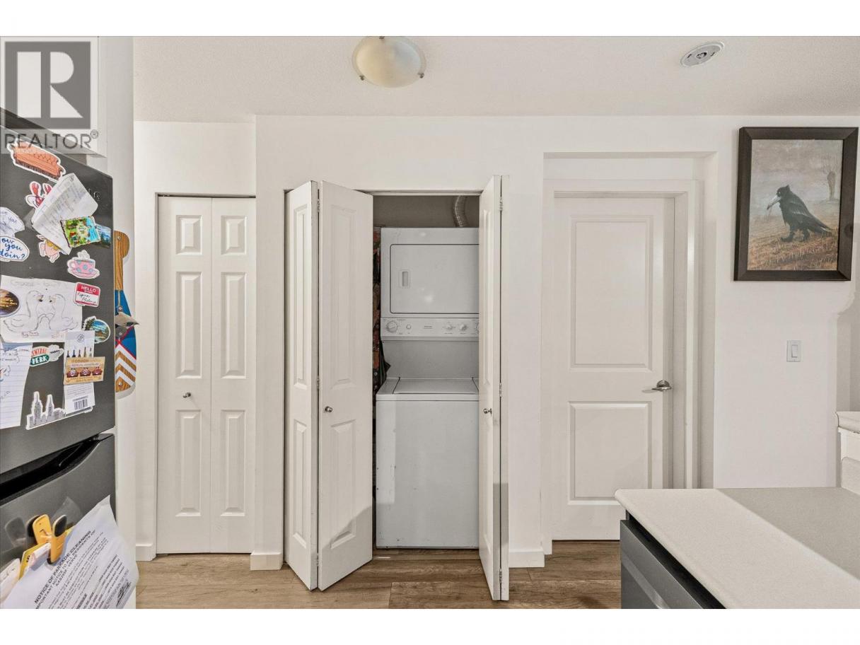 Two side-by-side parking stalls, a rare find at The Verve. This 2 bedroom + den, 2 bathroom home stands out with a combination of features that are increasingly hard to come by in the complex. Positioned on the quiet, east-facing side of the building, it offers a more private and peaceful setting while still being conveniently located within the community. Inside, the split-bedroom layout provides ideal separation and privacy — whether for guests, roommates, or a more functional work-from-home setup. The den adds flexibility, giving you a dedicated office or additional storage space beyond a typical two-bedroom unit. The open-concept living, dining, and kitchen area flows onto the deck, creating a comfortable and practical everyday living space. The combination of two side-by-side parking stalls, a storage locker, and a quieter exposure is what sets this unit apart, features that are rarely found together in this complex. With vacant possession available in June, this home offers flexibility for both end-users and investors. Located in Glenmore’s consistently in-demand Verve community, you’re within walking distance to groceries, coffee shops, and everyday amenities, with easy access to UBCO, downtown and the airport. Well-positioned and hard to replicate, this is one to see in person! (id:6769)