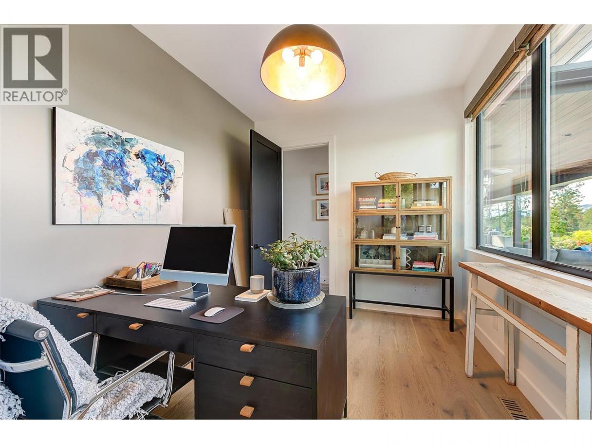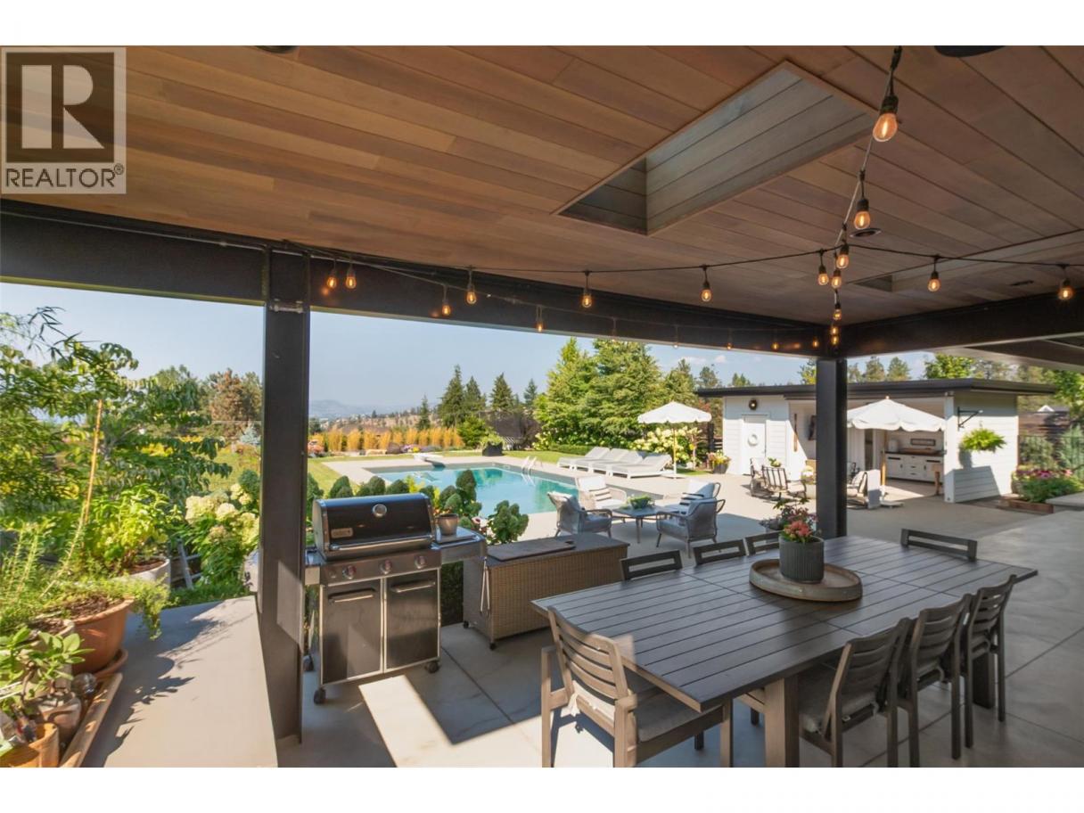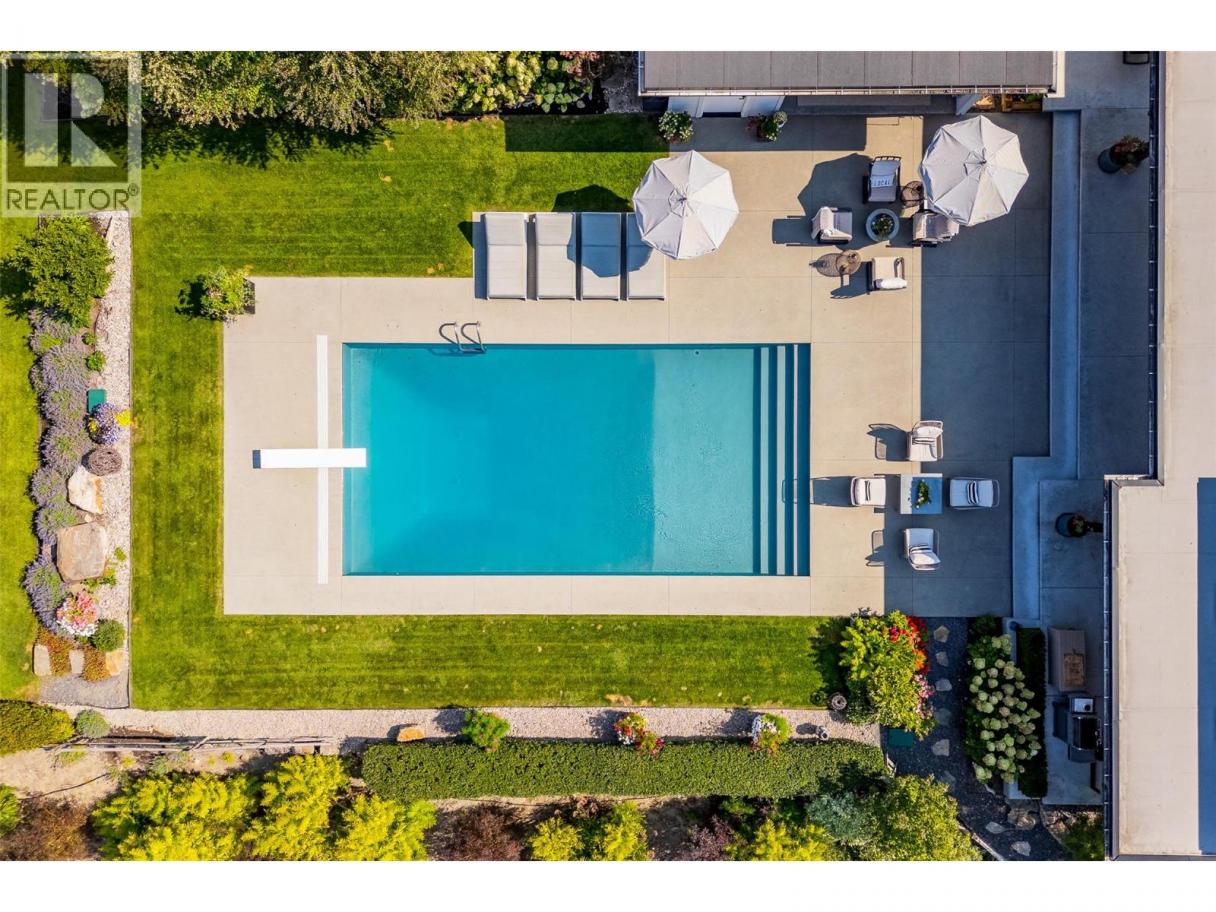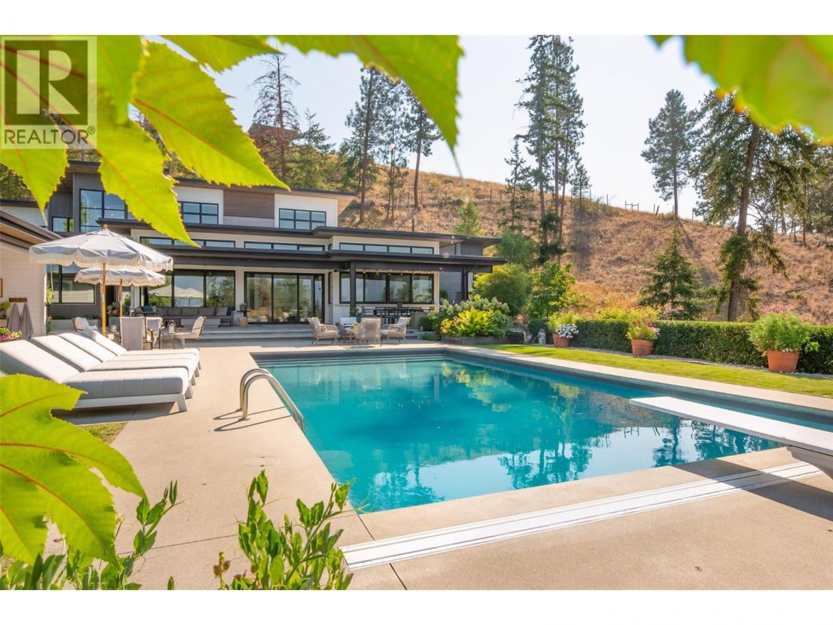Custom built by Thomson Dwellings where modern design meets effortless indoor-outdoor living. A refined blend of natural wood, metal, and stone accents is complemented by a cohesive palette of organic textures, creating a sophisticated yet inviting home perfectly suited to its hillside setting. Inside, the home is defined by natural light, thoughtful finishes, and open-concept living. Expansive walls of glass & oversized sliding doors create a seamless connection to the outdoors. The great room flows effortlessly through the dining area to a stunning kitchen featuring a statement island, professional-grade appliances, butler's pantry, dual dishwashers & sliding wall of windows to the outdoor dining area. The outdoor spaces are truly resort-inspired - private, sun-soaked private yard showcasing a sparkling in-ground pool with integrated solar cover, expansive concrete decking, lounge areas, pool cabana, two fire tables & curated perennial gardens. Multiple covered and uncovered patios offer year-round enjoyment— whether hosting summer dinners, relaxing fireside in the evening, or enjoying quiet mornings overlooking the mountain vistas. A private hot tub retreat adds a peaceful escape. Main floor living includes the primary suite with steam shower, a guest room, home office, laundry & wine room, while upstairs offers 3 bdrms with ensuites & family rm. Space to build a detached garage/shop. You'll love the close proximity to amenities, schools, walking trails and wineries. (id:6769)