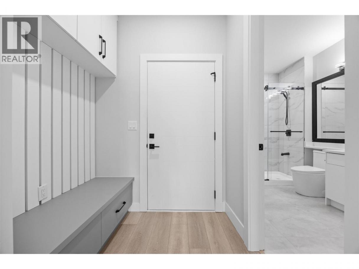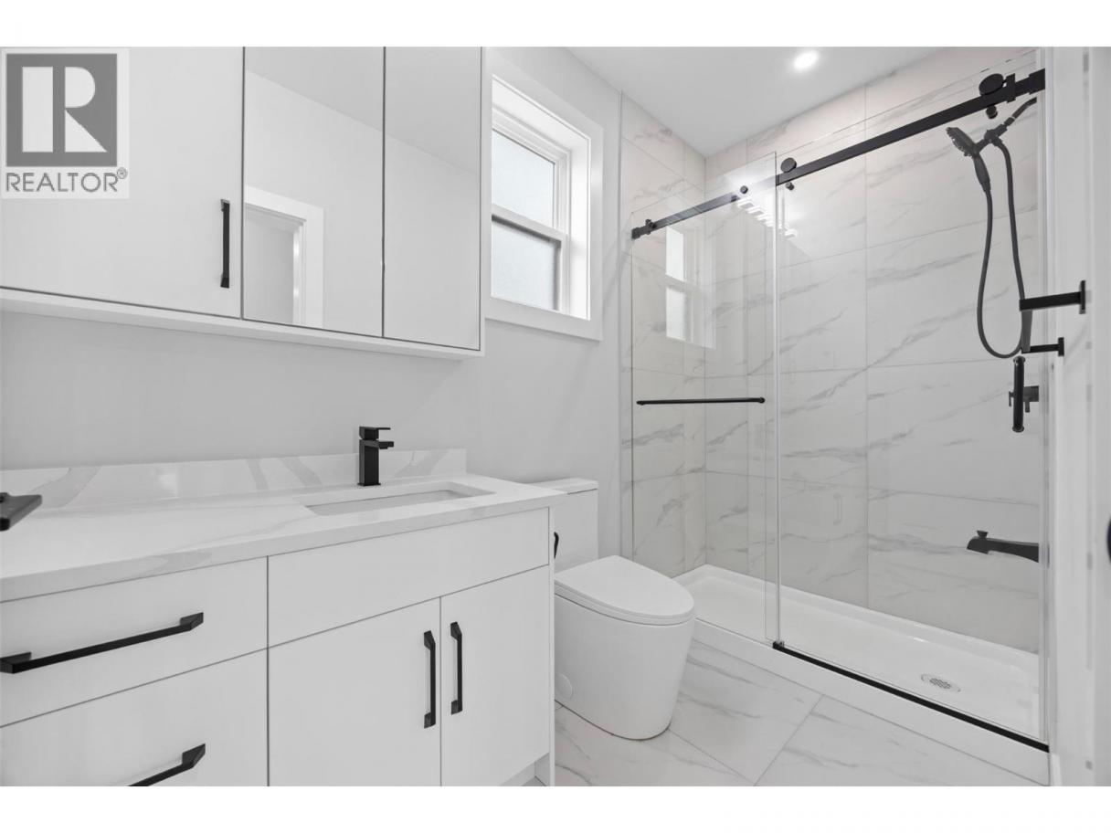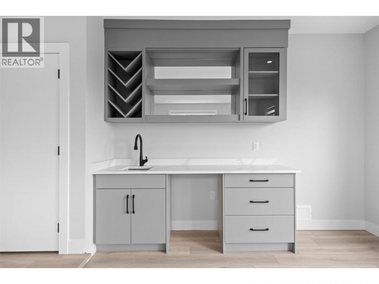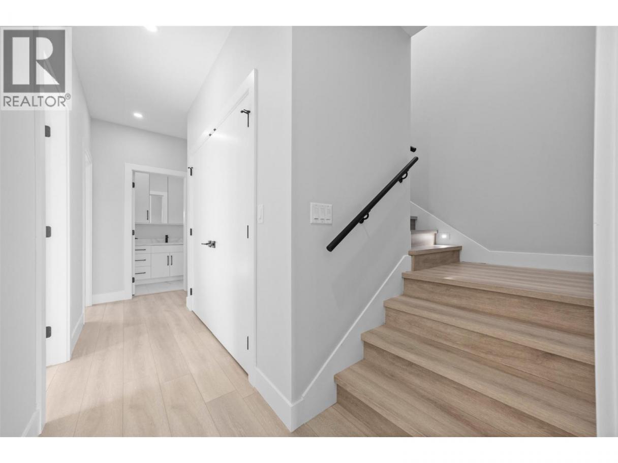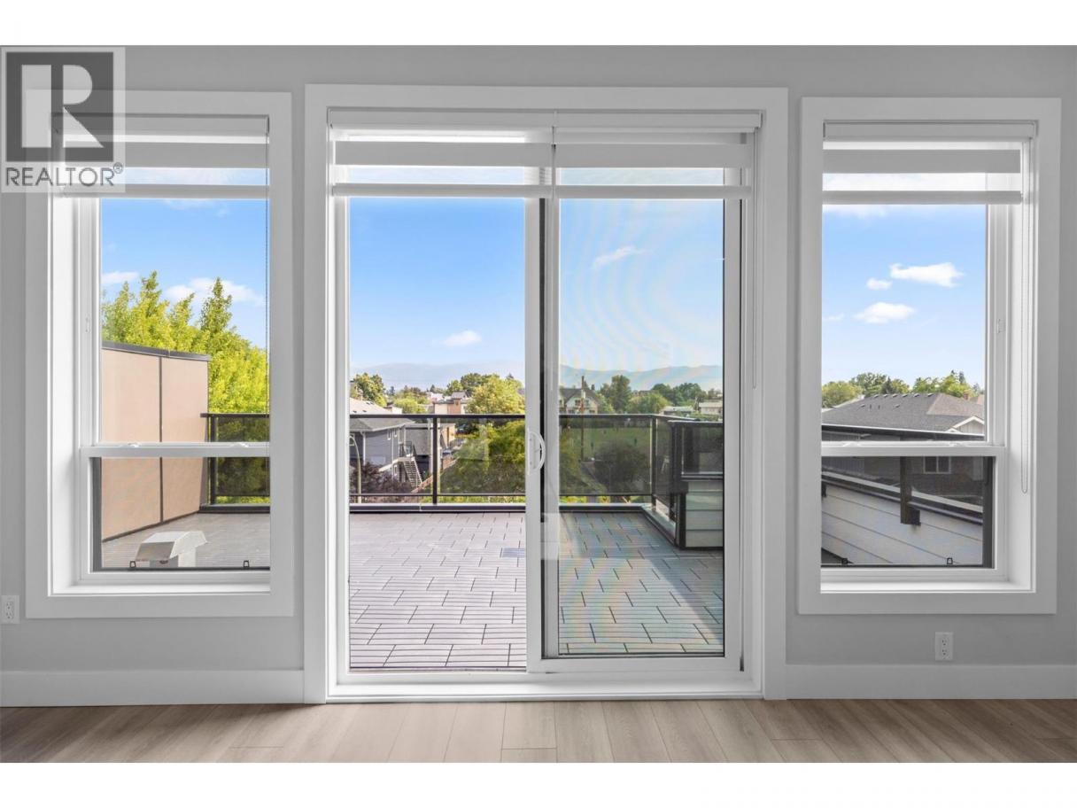 An entertainer's dream; this detached townhome (no shared walls) features something most townhomes don't have; an added a 350 sq ft third floor (with wet bar) that opens to an expansive patio. What you do with this space is your empty canvas to explore. From a games room, to a toy room for the kiddos, or a big screen with projector (a golf sim maybe), a super chic dining area; a gym or yoga studio…you’ve got options that other infill units don’t have. The main floor enters into a great room with an electric fireplace and feature wall, a dining area and kitchen with waterfall edge quartz countertops; a wireless fridge with screen, and a gas stove. The builder also saw some extra space and decided to add a full bathroom to the main, which fits perfect with the bedroom for guests or extended family. A private and fenced back yard patio completes this easy living main level and gives room for your dogs to sun themselves before you hike up Knox Mountain. The stair case up features built in lighting leading you to 3 more bedrooms up, including the primary with his and hers walk in closets and a well-appointed ensuite. On this level you will also find your laundry area and another full bath. On the third level you will find the aforementioned bonus space, where you can sip your favourite beverage, stare out at the adjacent park area and green space, and contemplate which downtown restaurant or beach you will hit up as the sunsets. This townhome is well thought out, well appointed, well built, and waiting for you to come and have a look. (id:6769)