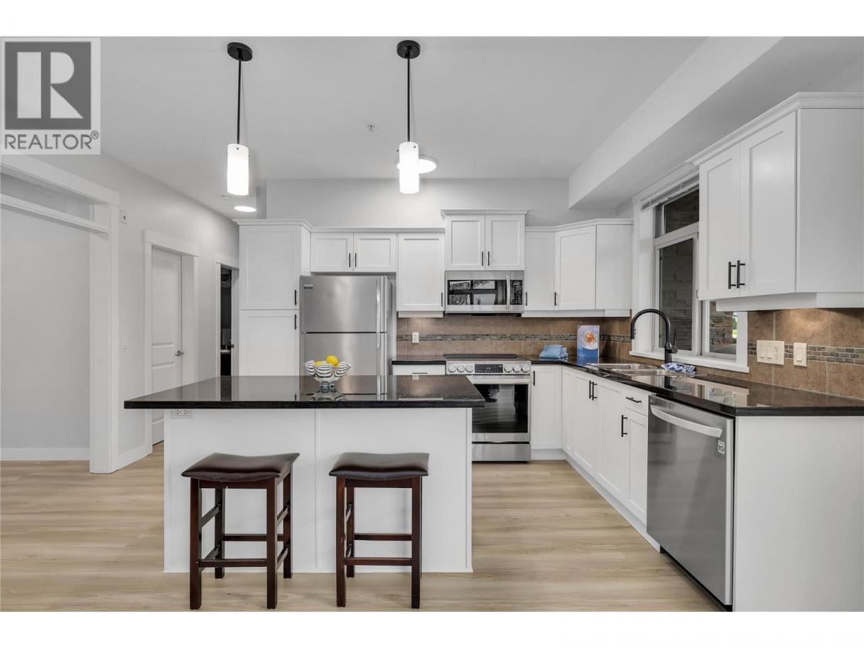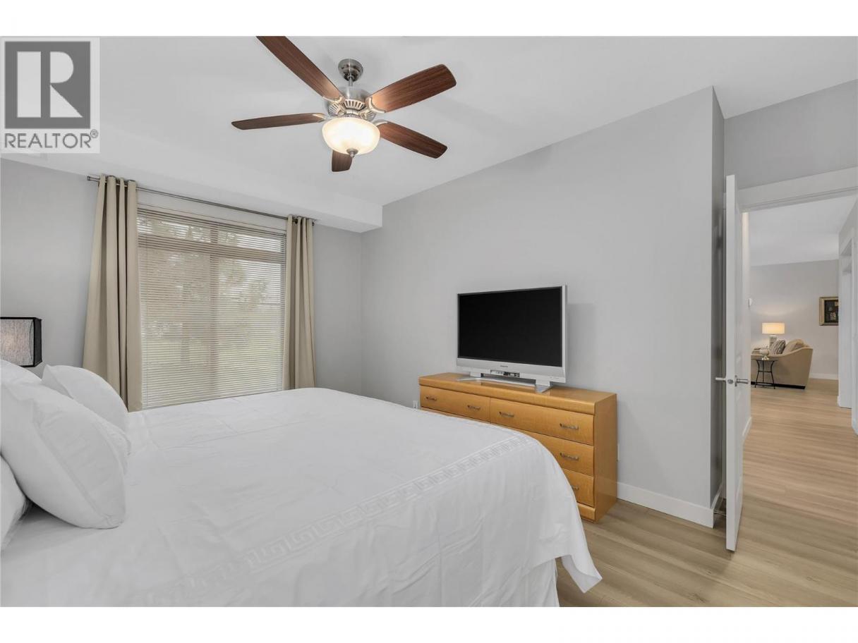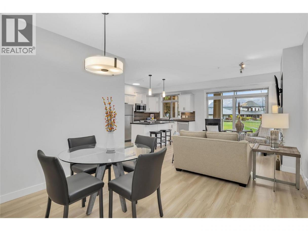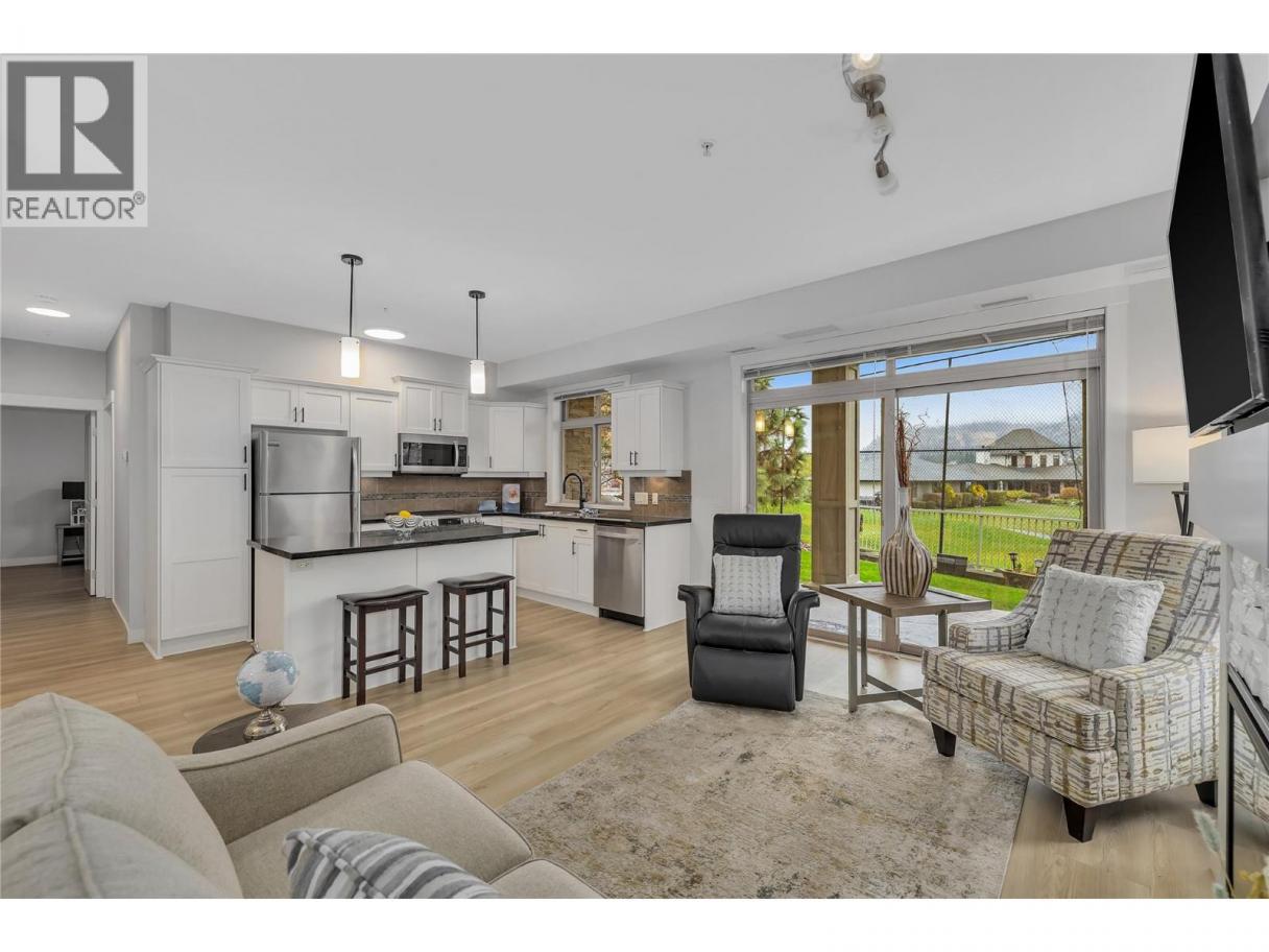**LEASE FULLY PREPAID & NO Property Transfer Tax!** Welcome home to this beautiful and RARE 2 bed/2 bath + den executive condo at ARIA. This highly desirable ground floor corner unit overlooks the first tee at the Two Eagles Golf Course. This beautifully updated unit offers the perfect combination of comfort, style, and location. The spacious suite has been freshly painted and features new lighting and flooring throughout. The large primary includes a WI closet & a luxurious 5-piece ensuite with double sinks, soaker tub, & separate shower. The home boasts 9' ceilings and a wall of windows that flood the space with natural light. The well-appointed kitchen showcases granite countertops, shaker cabinets, newer stove, dishwasher, & a sit-up island. The laundry room includes newer stacking washer & dryer, with additional shelving for extra storage. The open-plan layout includes a cozy dining area & a living room complete with an electric fireplace. Sliding glass doors lead to a private, expansive patio with serene views of the golf course—an ideal space to relax or entertain. Additional features include a storage locker, one underground parking, & proximity to shopping, dining, a& recreation. Walk to Winners, Home Sense, Home Depot, restaurants, & enjoy the nearby Two Eagles Golf Course & lake just minutes away. Lease has been prepaid, making this an even more attractive option! This unit truly has it all—privacy, beautiful views, and an unbeatable location. This is a MUST SEE! (id:6769)