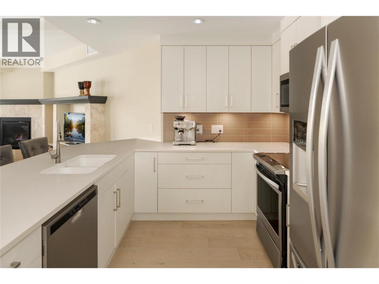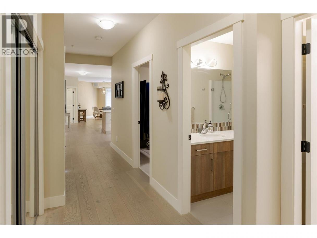 Welcome to a rare offering in one of the Lower Mission’s most coveted waterfront communities. This bright, spacious 2 bedroom + den residence offers over 1,600 sq.ft. of refined single-level living, paired with resort-style amenities and an unmatched location just steps to the lake, beaches, parks & the Greenway. The moment you enter, the home feels calm, inviting, and exceptionally well cared for—an ideal fit for a downsizer, professional couple, or anyone seeking effortless living in a quiet, well-managed building. The thoughtfully designed floor plan offers excellent separation between the bedrooms while embracing expansive open-concept living. Wide-plank vinyl flooring carries through the main living areas, where oversized windows fill the space with natural light. A gas fireplace adds warmth and character, while the covered deck extends the living space outdoors for morning coffee or relaxed evenings. The king-sized primary bedroom is a true retreat with beautiful natural light, generous space for additional furnishings, a walk-in closet, and a well-appointed ensuite. The second bedroom is spacious and bright, while the versatile den is ideal as a home office, reading lounge, hobby room, or flexible bonus space. Residents enjoy an outdoor pool, hot tub, putting green, fitness centre, community room, library, gathering spaces, and beautifully maintained grounds. Just minutes from schools, shops, wineries, and the lake—this home offers a rare balance of elevated living and daily convenience in one of Kelowna’s most desirable settings. (id:6769)