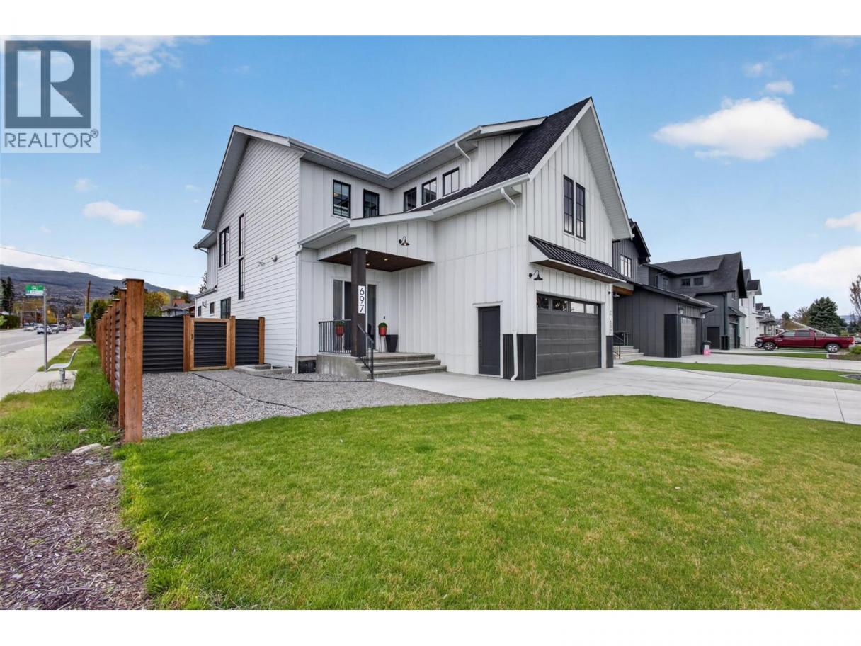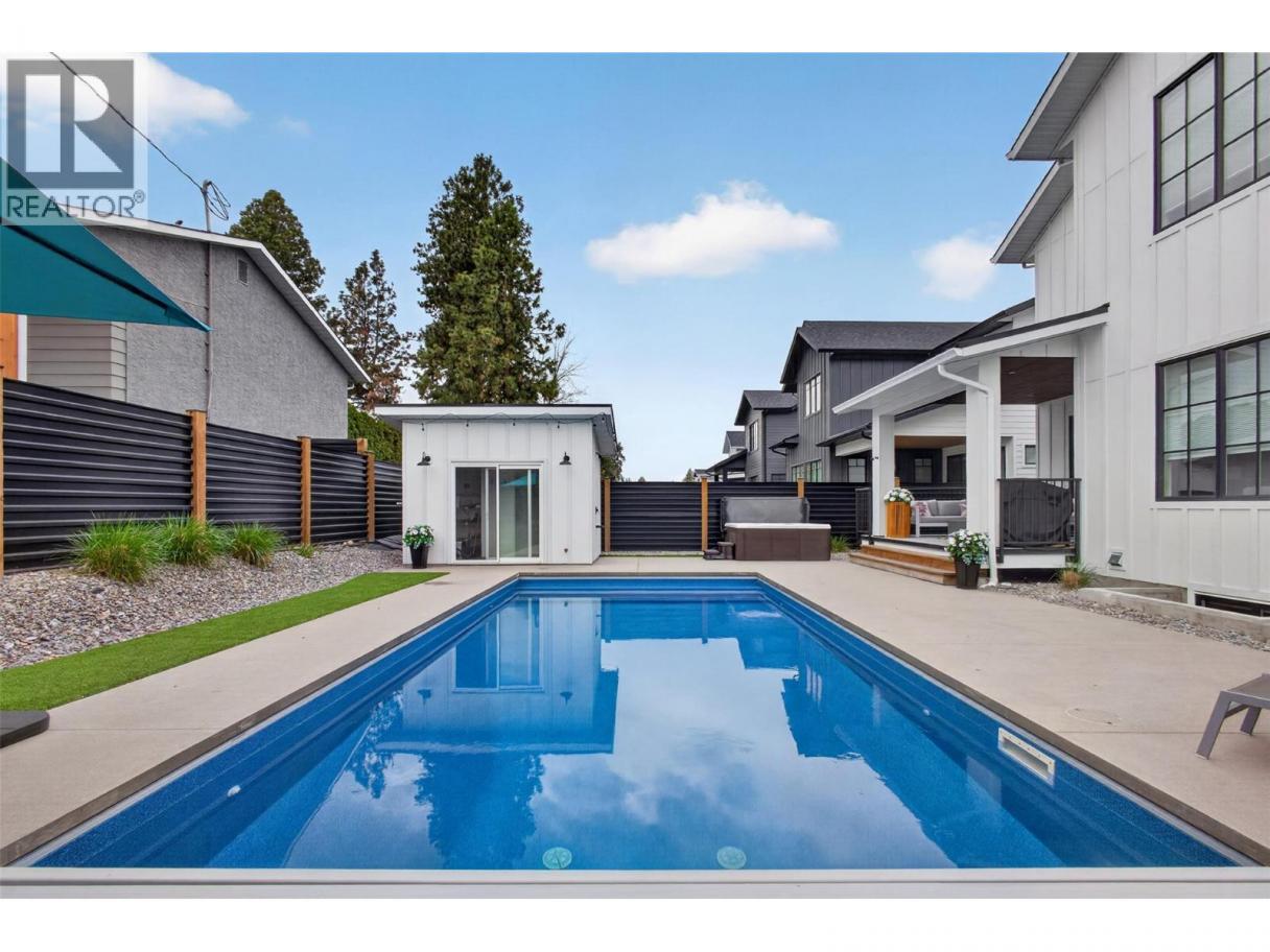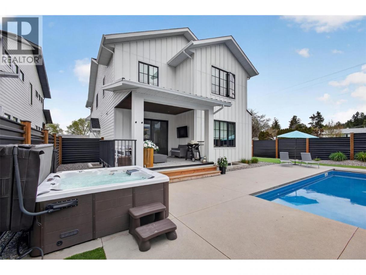 Welcome to 697 Balsam, an exceptional family home in the heart of Lower Mission, next to Dorothea Walker Elementary and minutes to the lake, beaches, amenities, and scenic trails. Built in 2023, this 4,320 sq.ft. residence offers 6 bedrooms, 5 bathrooms, including a legal 1-bedroom suite. Designed with luxury and functionality in mind, the bright open-concept main living space is flooded with natural light and anchored by a stunning gas fireplace. The chef-inspired kitchen features a massive island, quartz countertops, premium appliances including a 6-burner range, a coffee bar, and walk-in pantry. Seamless indoor-outdoor living leads to a covered patio with natural gas for the bbq overlooking a private backyard oasis complete with a pool with automated cover, hot tub, outdoor shower, and pool house with change room and bathroom. Synlawn landscaping and black metal fencing provide a low-maintenance, private setting. Upstairs offers an ideal family layout with 4 bedrooms, including a luxurious primary retreat with walk-in closet and spa-like 5-piece ensuite featuring a soaker tub, oversized shower, and double vanity. A sunken bonus room with wet bar creates the perfect space for relaxing or entertaining. The lower level includes an additional bedroom with ensuite and access to the legal suite, ideal for rental income or extended family. With ample parking and a prime location, this home offers the perfect blend of lifestyle, income potential, and modern comfort! (id:6769)