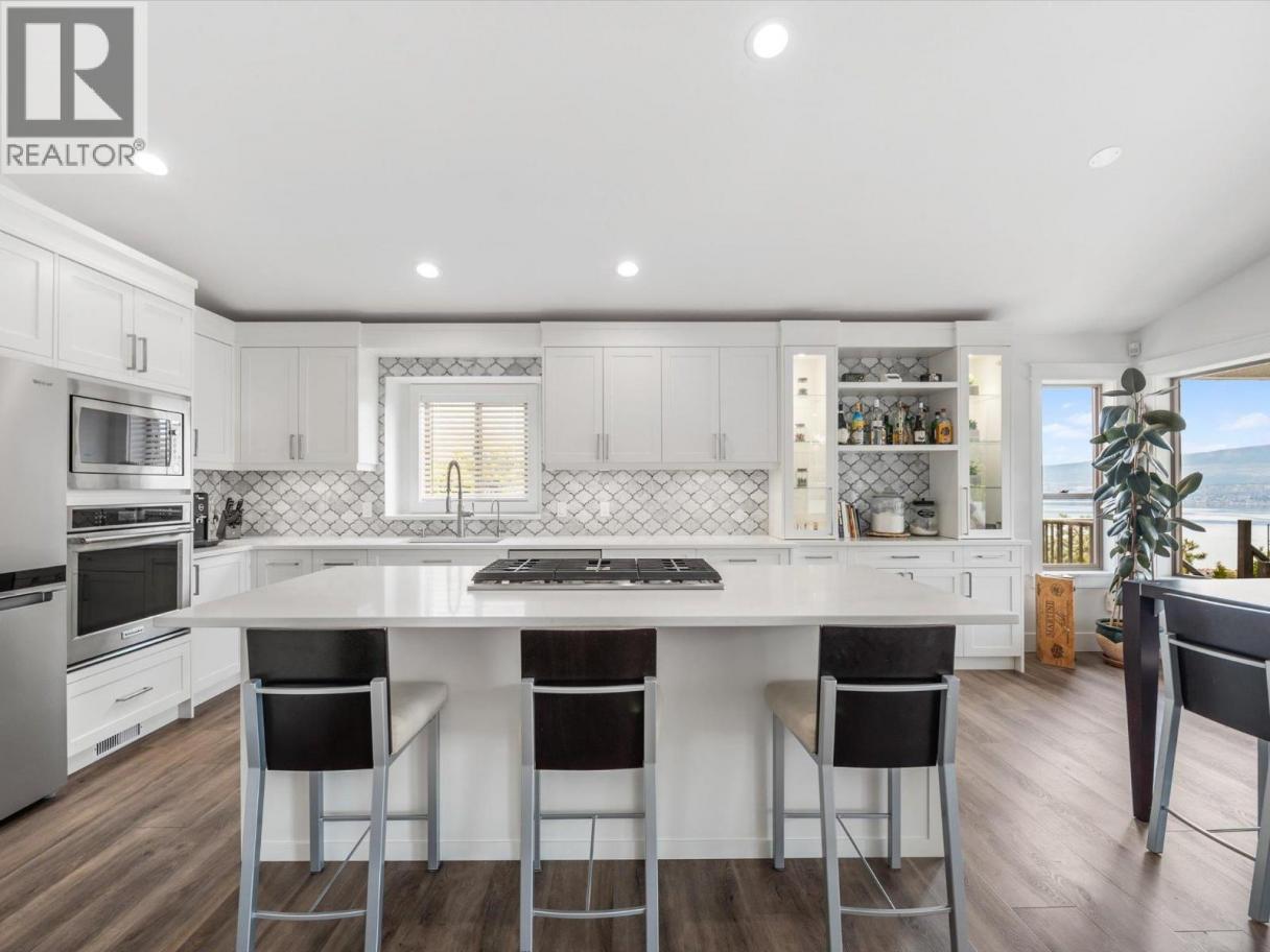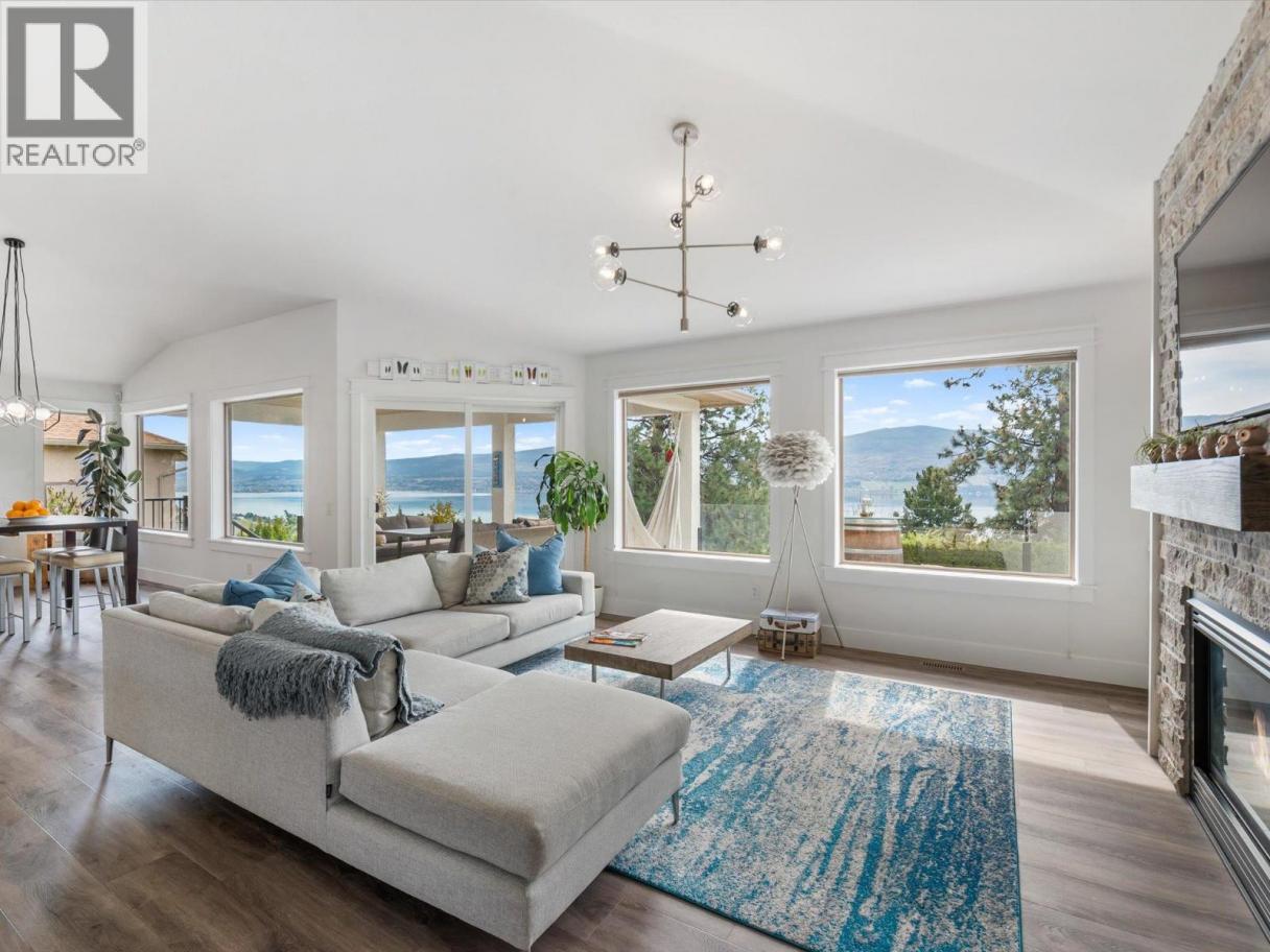 Set on a quiet cul-de-sac in sought after Lakeview Heights, this beautifully updated home captures sweeping lake and mountain views and puts you just a short walk to Mission Hill Winery. With the Westside Wine Trail close at hand, this is a location that truly lets you enjoy the Okanagan lifestyle. Inside, the home feels bright, open, and thoughtfully renovated, with vaulted ceilings, expansive windows, wide plank flooring, and a stunning kitchen designed for both daily life and entertaining. The main living area opens to a covered deck where the views take center stage, creating an easy indoor/outdoor connection. The spacious primary suite is a true retreat, complete with a beautifully finished ensuite. Downstairs, the lower level offers exceptional flexibility with 9-foot ceilings, a large open area, and a summer kitchen that works perfectly for guests, extended family, or entertaining. Outside, the private yard offers room to relax, play, and enjoy the setting, with pool potential for those looking to take it even further. A flat driveway, double garage, and extra parking complete this move in ready home in one of the area’s most desirable wine country locations. (id:6769)