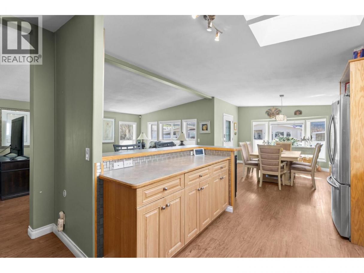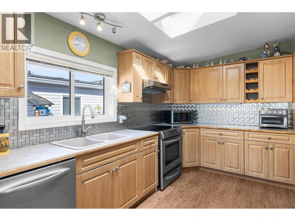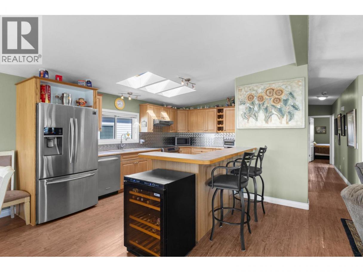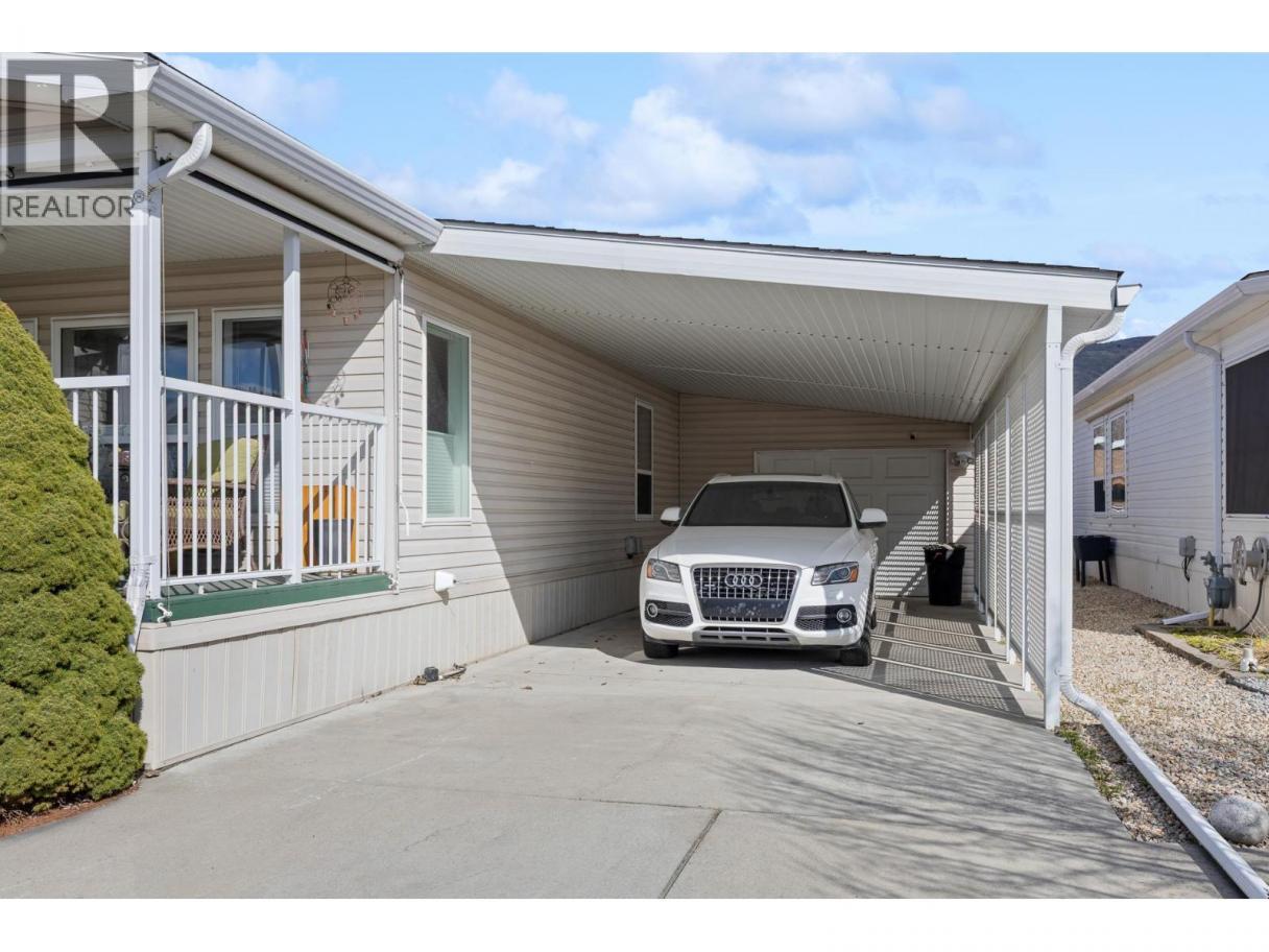 Beautiful, bright 2 bedroom plus den, 2 full bathroom home located in the highly sought after 55+ Lakepointe community. This well maintained home offers an inviting and spacious open concept layout with vaulted ceilings and multiple skylights, filling the home with natural light. The large kitchen features an island with eating bar and flows seamlessly into the dining area with a charming bay window. The spacious primary bedroom includes a full ensuite, while the den provides the perfect space for a home office, hobby room, or guest area. Step outside to enjoy a private, covered and enclosed front deck, ideal for relaxing year round. The fully fenced and landscaped backyard is perfect for gardening enthusiasts, complete with raised garden beds and a storage shed. There is ample parking with a garage, carport, and additional driveway space, including room for your recreational toys. Electrical inspection completed for peace of mind. This well established and beautifully maintained community offers a quiet, clean environment with pride of ownership throughout. Small pets are welcome with park approval. Enjoy a fantastic location just a short walk to Okanagan Lake and Kin Beach, with easy access to Marshall Fields, walking trails, dog park, and pickleball courts. Close to Landing Shopping Centre, downtown, and public transit. Low maintenance living in a friendly, vibrant community. Don’t miss your opportunity to call Lakepointe home. Schedule your private showing today. (id:6769)
