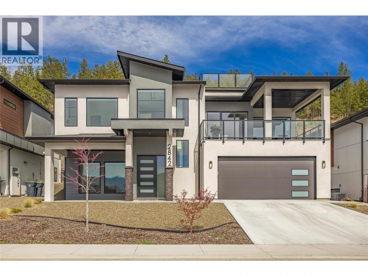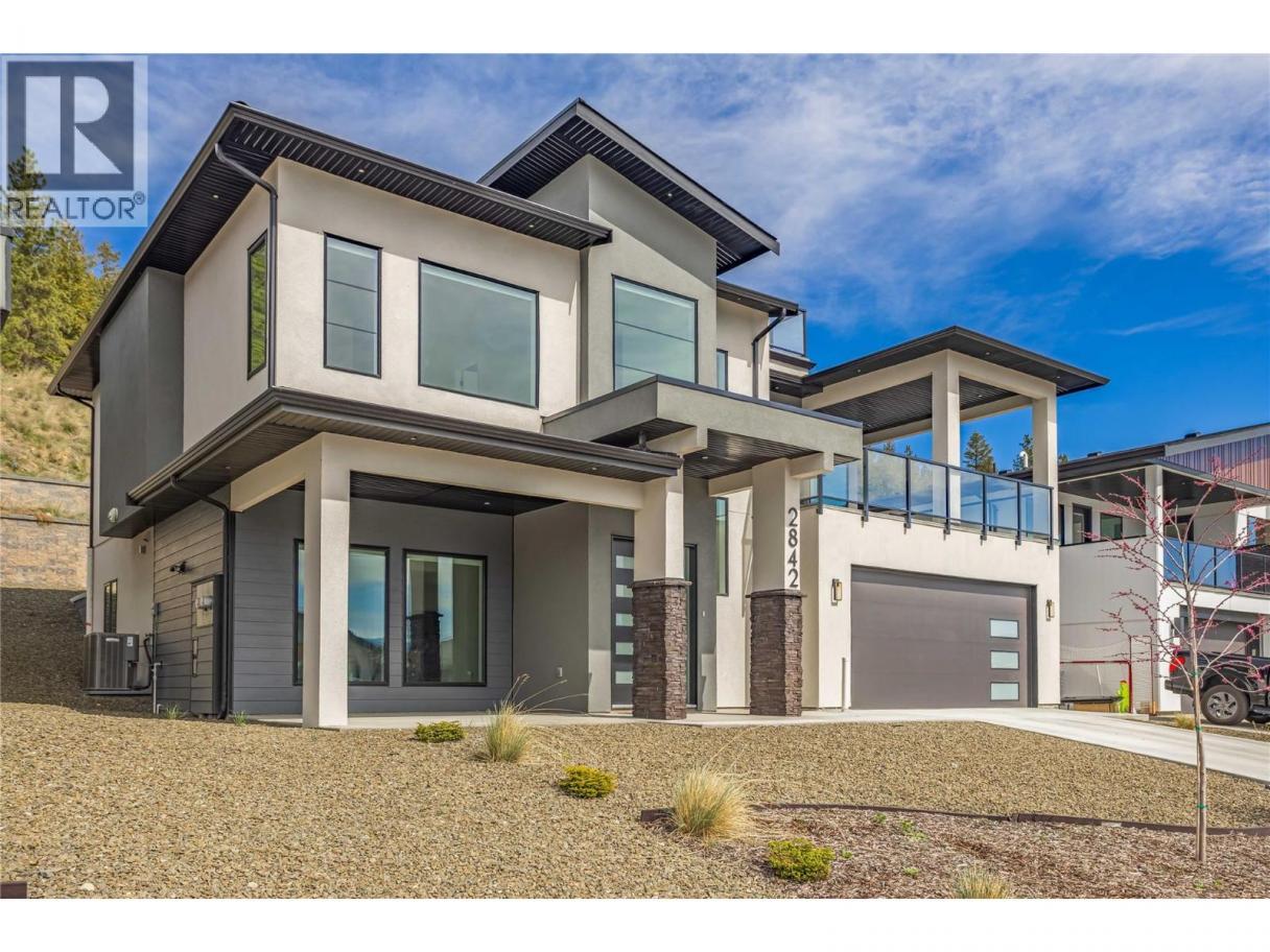 Welcome to 2842 Copper Ridge Drive! A stunning, nearly new modern home in the highly sought-after Smith Creek community of West Kelowna, offering breathtaking panoramic views of the lake, valley, and surrounding mountains. Situated on a quiet street, this architecturally designed home features a rare rooftop deck—one of the only ones in the neighbourhood—with completely unobstructed views. This 5-bedroom, 4-bathroom home includes a fully self-contained 1-bedroom legal suite, approved for Airbnb—ideal for added income or extended family. The bright, open-concept main living area is designed to capture the views, with expansive windows, designer finishes, and access to a large, partially covered deck. The chef-inspired kitchen features quartz countertops, beautiful cabinetry, a gas range, wall oven, and premium appliances, flowing into a spacious living room with electric fireplace and a dining area with feature wall. The primary suite offers stunning views and a spa-like ensuite with double vanity, freestanding tub, and jetted walk-in shower. Downstairs includes a family room with wet bar, plus an additional bedroom and bathroom. Additional highlights include a private walkout backyard, double garage with EV charger, hot water on demand, and a CRV system. The legal suite offers its own entrance, full kitchen, and laundry for excellent rental flexibility. A perfect blend of luxury, lifestyle, and income potential in one of West Kelowna’s most desirable neighbourhoods. (id:6769)