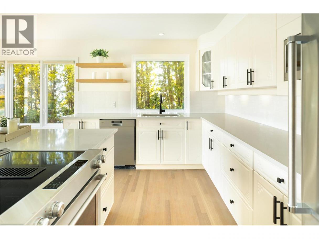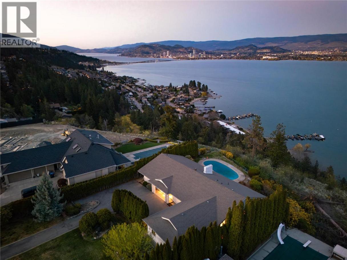 A rare offering where privacy, scale, and panoramic lake views converge—this fully reimagined residence defines elevated Okanagan living. Set on a beautifully positioned .46-acre parcel in one of West Kelowna’s most coveted enclaves, the property captures sweeping views over Okanagan Lake, downtown Kelowna, and surrounding mountains from sunrise to evening lights. Completely transformed, the home has been renovated to an exceptional standard with timeless design and modern functionality. Spanning nearly 5,000 sq.ft., the layout offers five bedrooms, three bathrooms, and expansive living spaces designed for connection, comfort, and entertaining. The main level is filled with natural light, where oversized windows frame the ever-changing view and wide-plank flooring adds warmth throughout. The kitchen is the heart of the home—anchored by a large island, quality appliances, and generous storage—flowing effortlessly to the dining and family areas. A separate living room invites quieter moments and relaxed evenings. The primary suite is a private retreat where mornings begin with the view and evenings end in calm. Direct outdoor access creates a seamless connection to the setting, while the spa-inspired ensuite offers dual vanities, a freestanding tub, and glass shower. Additional bedrooms are thoughtfully separated, while the main floor den is ideal as an office or guest space. The lower level expands the lifestyle with a large recreation room, summer kitchen, additional bedrooms, full bathroom, and extensive storage, including unfinished space ready for a gym, theatre, workshop, or future vision. Outdoors, the lakeview pool area feels like your own private resort—surrounded by mature landscaping, privacy, and space to relax or gather. Generous parking, a double garage, and an executive location complete the package. Just minutes to wineries, golf, schools, shopping, and less than 10 mins to downtown Kelowna. (id:6769)