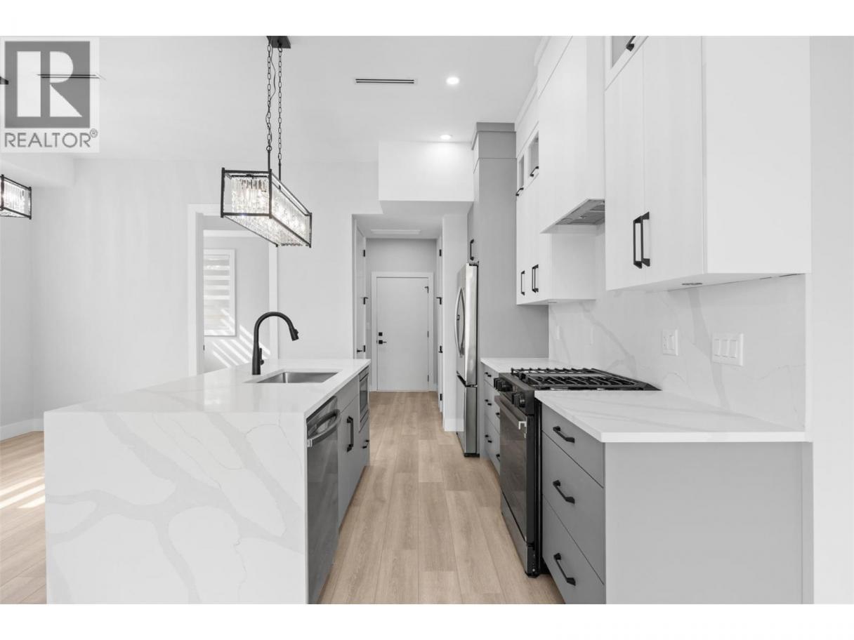 An entertainer's dream; this detached townhome (no shared walls) features something most townhomes don't have; an added a 350 sq ft third floor (with wet bar) that opens to an expansive patio. What you do with this space is your empty canvas to explore. From a games room, to a toy room for the kiddos, or a big screen with projector (a golf sim maybe), a super chic dining area; a gym or yoga studio…you’ve got options that other infill units don’t have. The main floor enters into a great room with an electric fireplace and feature wall, a dining area and kitchen with waterfall edge quartz countertops; a wireless fridge with screen, and a gas stove. The builder also saw some extra space and decided to add a full bathroom to the main, which fits perfect with the bedroom for guests or extended family. A private and fenced back yard patio completes this easy living main level. The stair case up features built in lighting leading you to 3 more bedrooms up, including the primary with his and hers walk in closets and a well-appointed ensuite. On this level you will also find your laundry area and another full bath. On the third level you will find the aforementioned bonus space, where you can sip your favourite beverage, stare out at the adjacent park area and green space, and contemplate which downtown restaurant or beach you will hit up as the sunsets. This townhome is well thought out, well appointed, well built, and waiting for you to come and have a look. (id:6769)