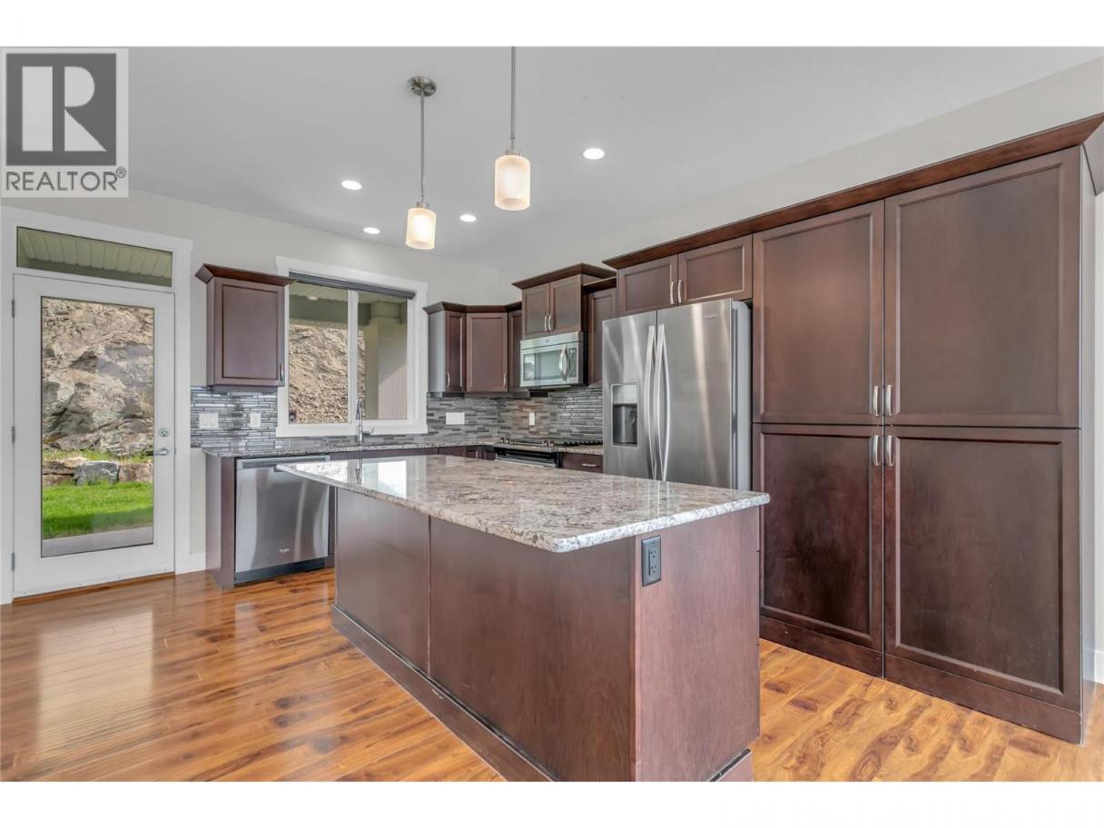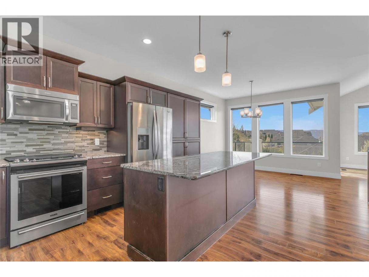 A perfect mix of serene nature and convenient proximity is found in this lovely Rykon-built home in the peaceful, family-centric community of Wilden. Highlighted by an abundance of scenic hiking trails and protected wetlands, Wilden is one of Kelowna's favourite neighbourhoods, offering quick access to schools, amenities, and Downtown Kelowna. This is a rare opportunity to secure a premium single-family lifestyle at an accessible price point. At the centre of this home is a spacious gourmet kitchen with oversized granite island and gas range; this flows seamlessly into a versatile open main living space with high vaulted ceilings and a spectacular southern exposure. The large front windows and front deck maximize the great views and abundant sunlight. The main level also features 3 bedrooms, including a luxurious primary suite. The lower level is designed for growth, with large recreation room, a fourth bedroom, and a den/office off the front entrance. The layout of the lower level is ideal for a future self-contained suite, with a separate entrance, good natural light, and a natural future kitchen area. The back yard is fenced, usable and very private. Across the street you will find a lovely neighbourhood park. The owner has paid out the previously leased geothermal heating and cooling system, adding a huge asset for new owners long into the future. Additionally, a Tesla car charger has been installed in the double garage. Arrange a viewing today! (id:6769)