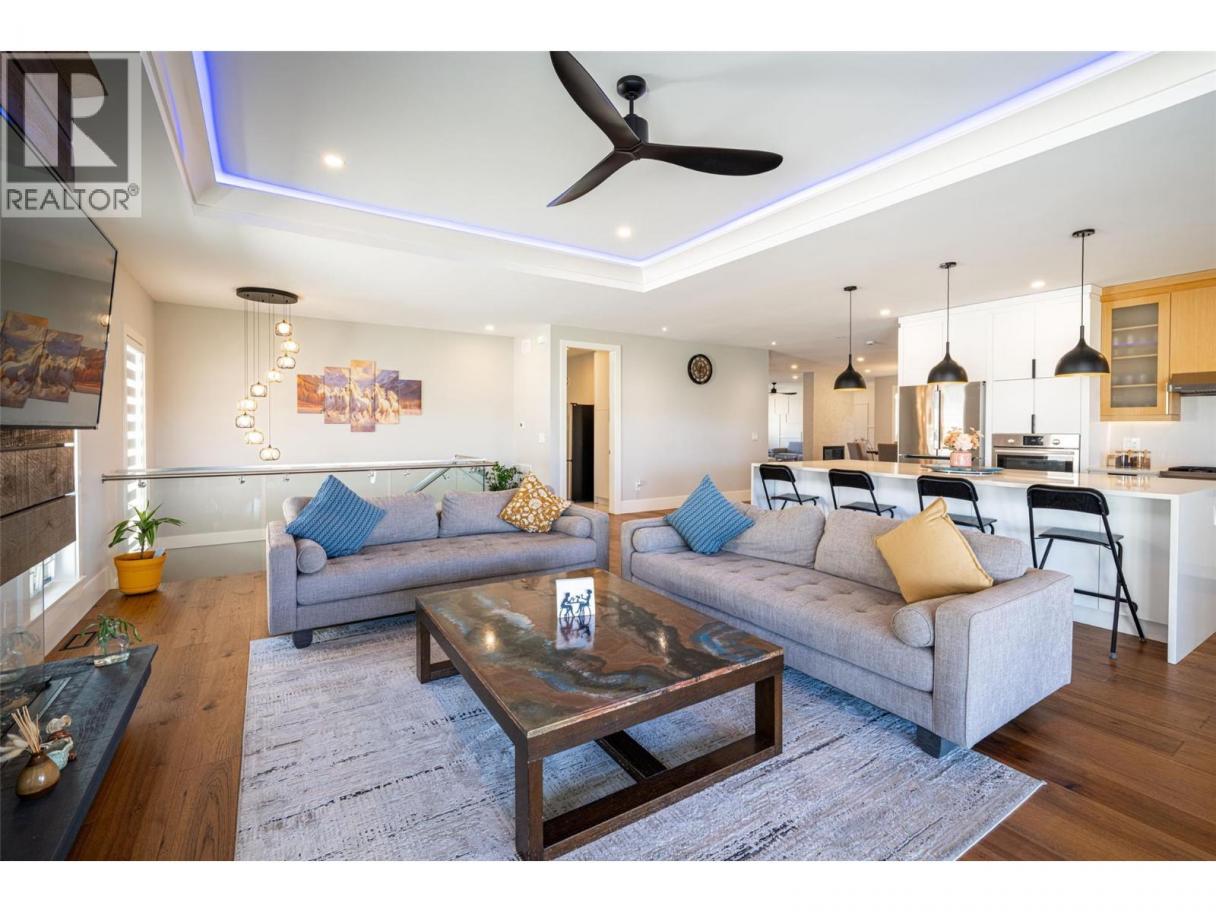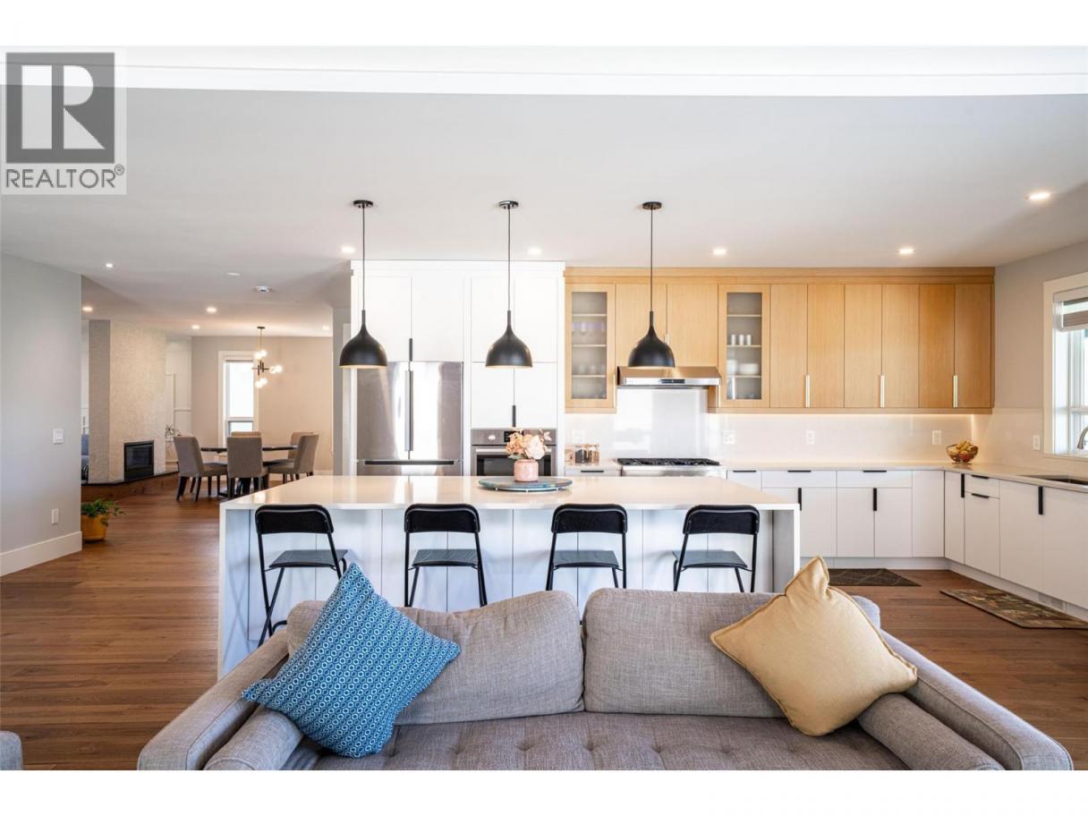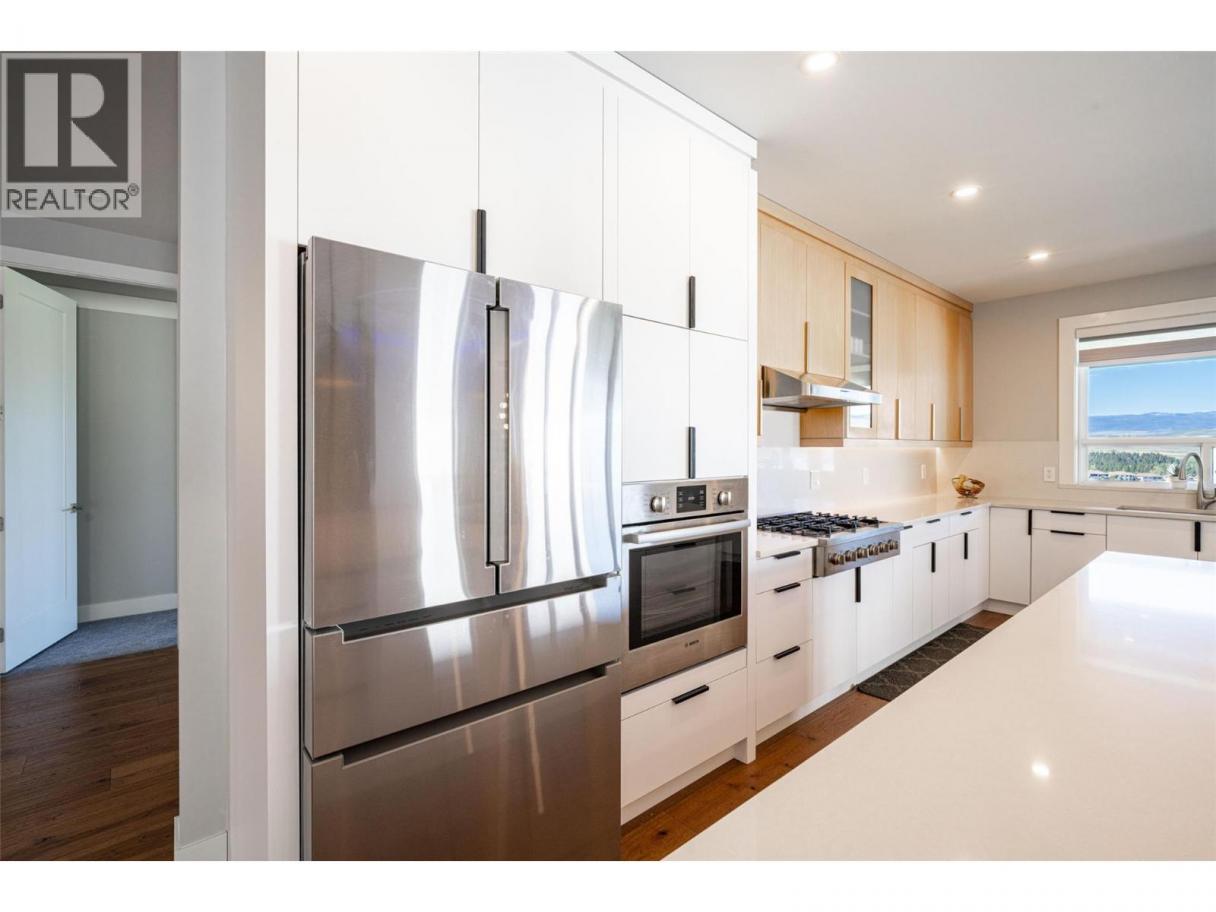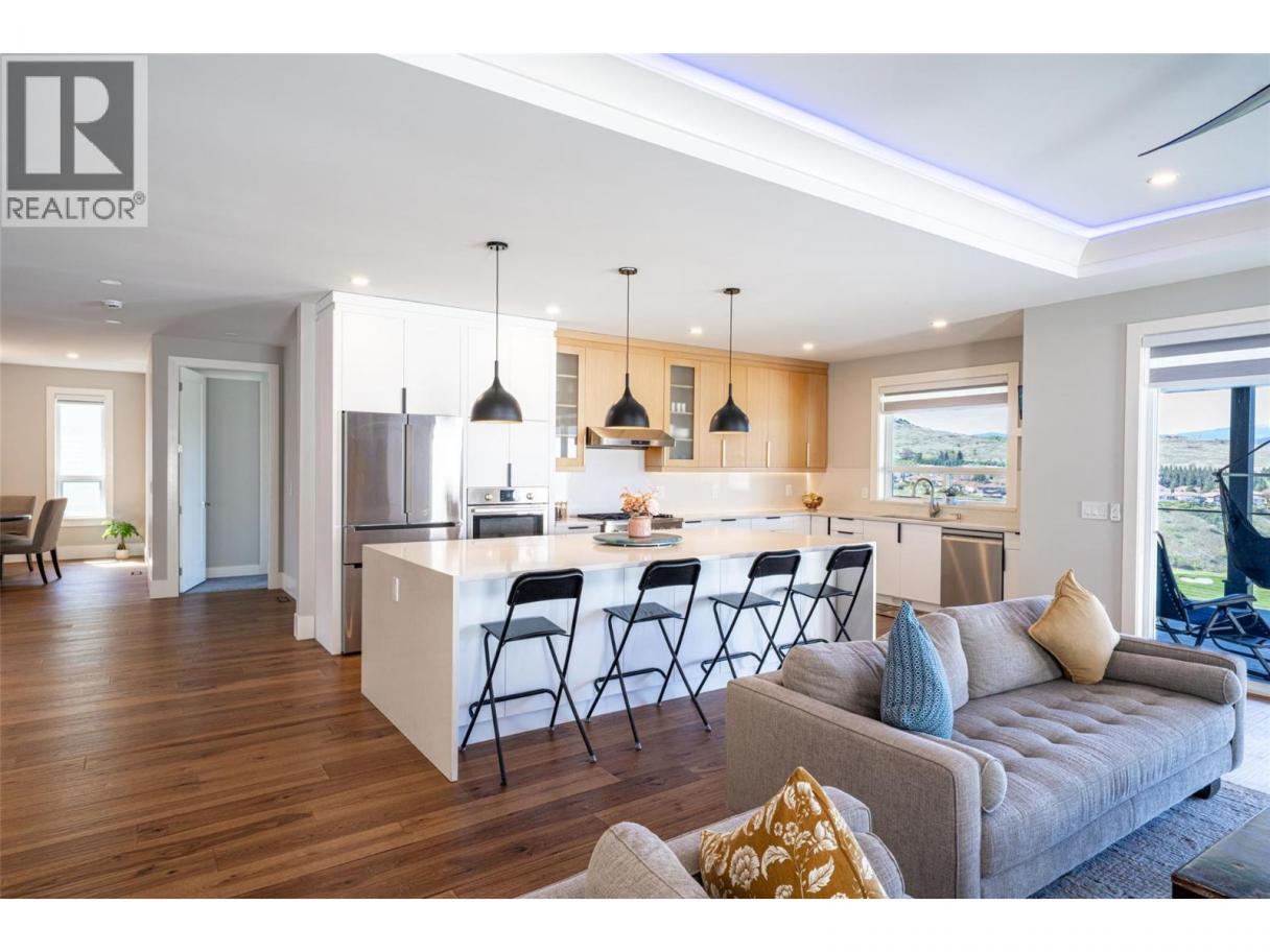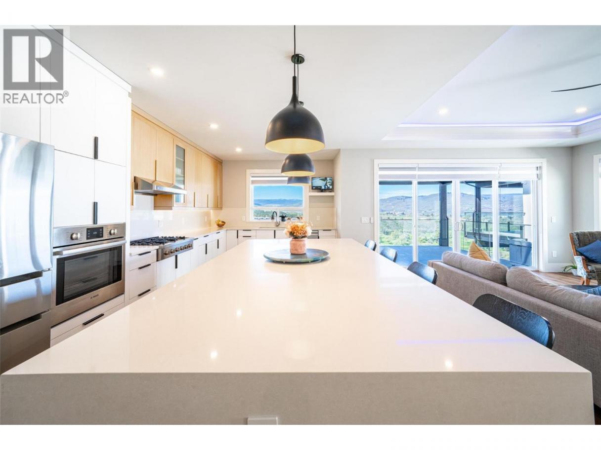 Welcome to this stunning newly built rancher with walk-out basement in sought-after Middleton Mountain on prestigious Mt. Griffin Road. Offering 4,223 sq.ft. of beautifully finished living space, this home showcases exceptional craftsmanship and breathtaking panoramic views of the lake, valley, city, and golf course. The main level features soaring ceilings and a bright open-concept layout with a chef-inspired kitchen, oversized island, quartz countertops, two-tone cabinetry, and premium Bosch appliances including a 6-burner gas cooktop. The living area opens to a 12x50 covered deck with gas hookups—perfect for entertaining. A versatile front room offers ideal space for a home office or easily defined additional area. The primary suite features a spa-like ensuite with soaker tub, glass shower, and walk-in closet, plus a second bedroom and full bath on the main. The walk-out lower level boasts 10ft ceilings, a large rec space, separate entrance, and plumbing in place for a future wet bar. A 1-bedroom legal suite offers income potential. Close to Kalamalka Lake, golf, parks, trails, shops, and restaurants. Contact the Salt Fowler team to arrange your private viewing. (id:6769)