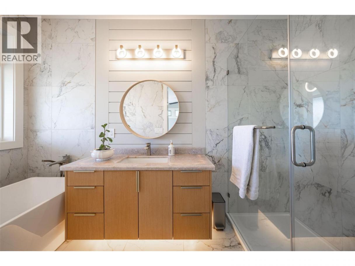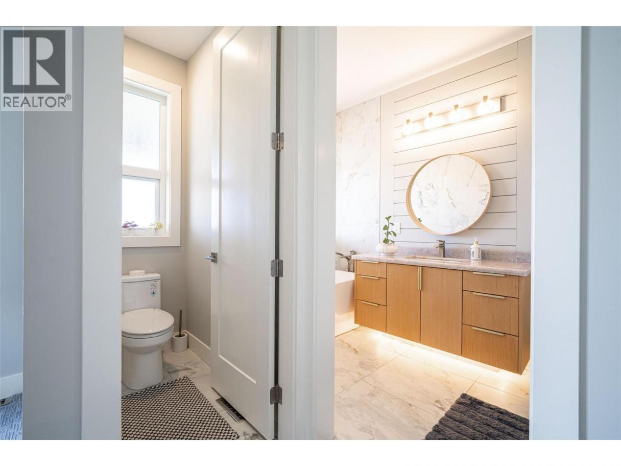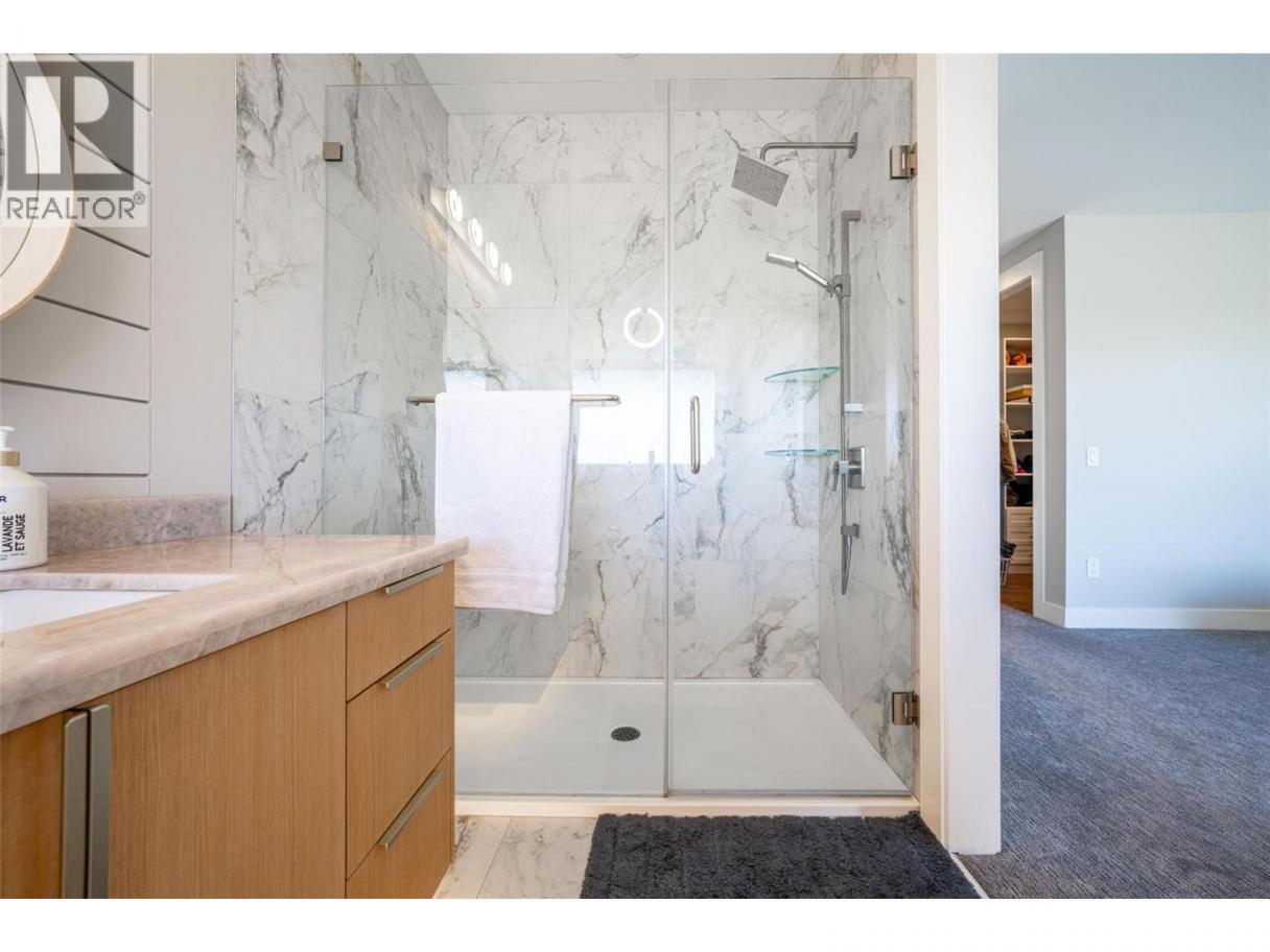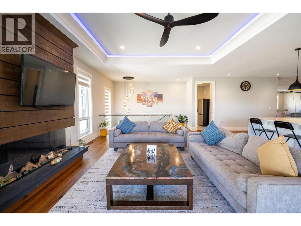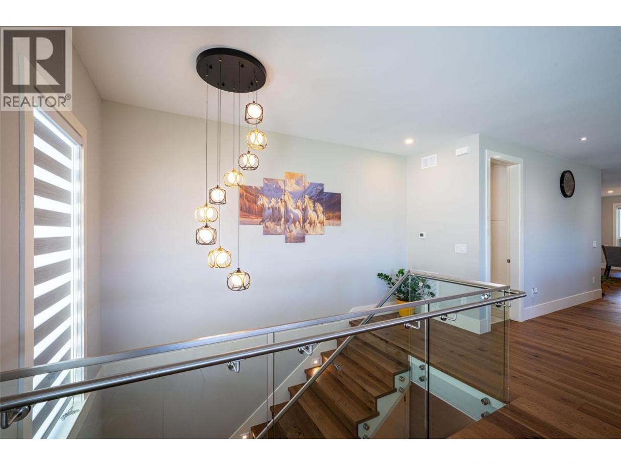 Welcome to this stunning newly built rancher with walk-out basement in sought-after Middleton Mountain on prestigious Mt. Griffin Road. Offering 4,223 sq.ft. of beautifully finished living space, this home showcases exceptional craftsmanship and breathtaking panoramic views of the lake, valley, city, and golf course. The main level features soaring ceilings and a bright open-concept layout with a chef-inspired kitchen, oversized island, quartz countertops, two-tone cabinetry, and premium Bosch appliances including a 6-burner gas cooktop. The living area opens to a 12x50 covered deck with gas hookups—perfect for entertaining. A versatile front room offers ideal space for a home office or easily defined additional area. The primary suite features a spa-like ensuite with soaker tub, glass shower, and walk-in closet, plus a second bedroom and full bath on the main. The walk-out lower level boasts 10ft ceilings, a large rec space, separate entrance, and plumbing in place for a future wet bar. A 1-bedroom legal suite offers income potential. Close to Kalamalka Lake, golf, parks, trails, shops, and restaurants. Contact the Salt Fowler team to arrange your private viewing. (id:6769)