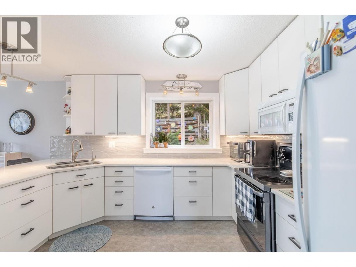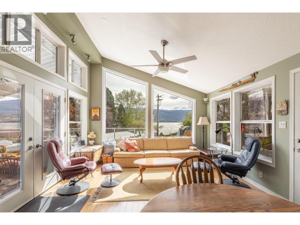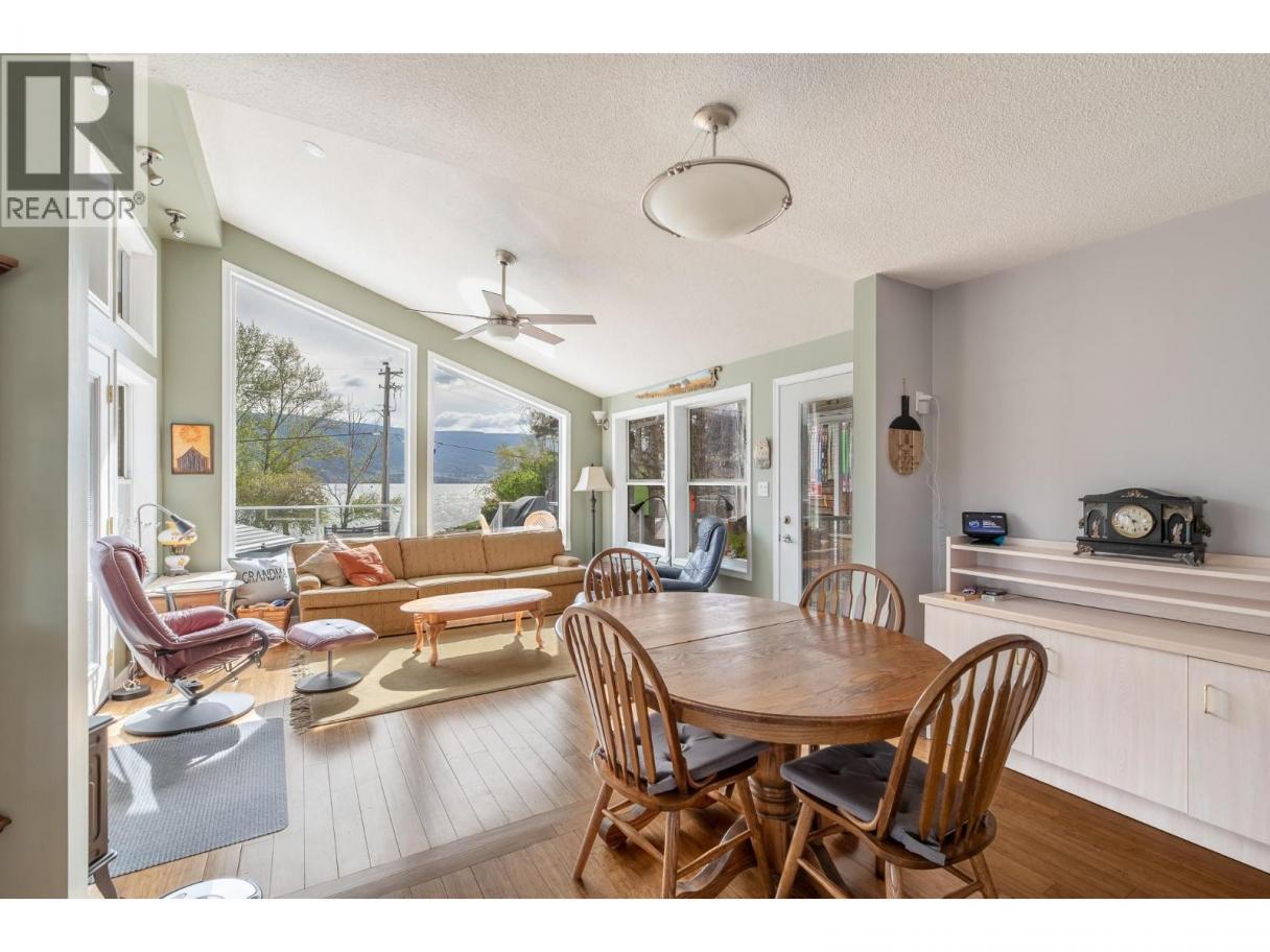 Located in the desirable Crescent Beach community, this expanded 4 bedroom, 2 bathroom home offers lake views of Okanagan Lake and convenient beach access directly across the road. The home features a spacious and functional floor plan with multiple indoor and outdoor living areas. Expansive windows provide abundant natural light and the vaulted family room adds to the open feel of the main living space. Additional features include a second kitchen, wood insert fireplace, attached single garage, and workshop area. The private, irrigated yard sits on a 0.29-acre lot, offering ample space for gardening, parking, and outdoor use. Zoning permits the development of a detached carriage house and/or secondary suite, providing added flexibility and future potential. Situated in Summerland along Okanagan Lake, Crescent Beach is a well-established neighbourhood known for its lakeside setting and convenient access to water activities. Opportunities like this, combining location, lifestyle, and flexibility, are truly hard to find. (id:6769)