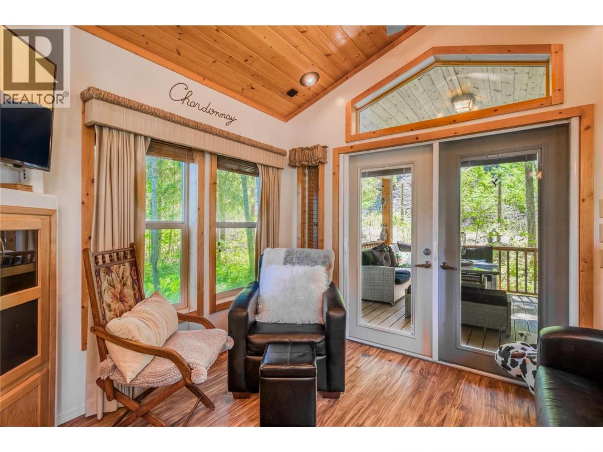 Welcome to #39 4835 Paradise Valley Drive, a fully furnished 2bed, 1bath cottage nestled in the peaceful, forested community of Paradise Valley in Peachland, part of Camp Okanagan “A Fresh Air Forest Resort.” This beautifully maintained retreat is perfect as a weekend escape or summer getaway, and also presents excellent rental income potential with both short- and long-term rentals permitted. Located just 10 minutes from Peachland and West Kelowna, you’ll enjoy the perfect balance of seclusion and convenience. Inside, the open-concept layout feels warm and inviting, featuring high-quality finishes throughout, including upgraded countertops, a gas stove, gas furnace, central air conditioning, and the added convenience of in-suite laundry. Step outside to experience seamless indoor-outdoor living on the spacious deck and covered balcony, ideal for morning coffee, evening BBQs, or simply relaxing to the sounds of nature. Surrounded by trees and scenic trails, this quiet, pet-friendly community offers endless opportunities to unwind, explore, and reconnect. With plans for a beautiful new community pool scheduled for completion by summer 2026, this hidden gem continues to grow in value and appeal. Whether you're looking to invest, relax, or escape, this charming cottage offers exceptional value in one of the Okanagan’s most scenic and underrated locations. (id:6769)