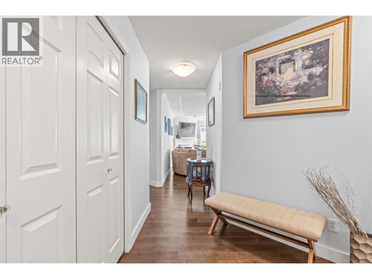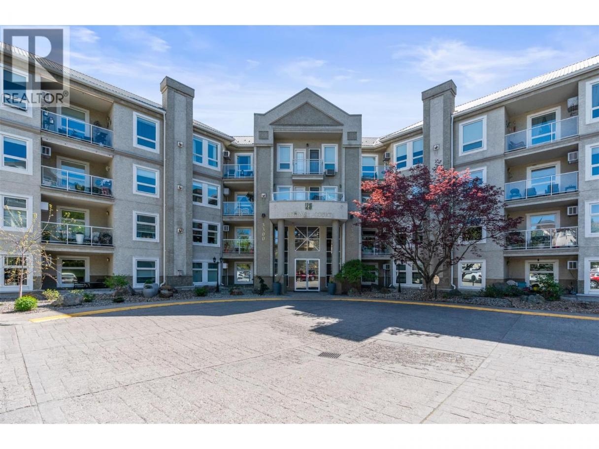 Welcome to this beautifully appointed 1,300+ sq. ft. 2-bedroom, 2-bathroom home in the highly sought-after Regency Court complex—an absolute must-see! Perfectly positioned on the view side, this private end/corner unit offers a quiet setting with lake and valley views, natural light and an inviting atmosphere throughout. The spacious layout is designed for comfortable living and effortless entertaining. Enjoy the convenience of being just a short walk to downtown amenities, shopping, dining, and nearby recreation options. Within the building, residents have access to fantastic features including a community library on the second floor, as well as a fitness centre and social lounge with walk-out patio access. This exceptional home also includes one secure parking stall and a storage locker for added convenience. A rare offering in a prime location—be sure to put this one at the top of your list! (id:6769)